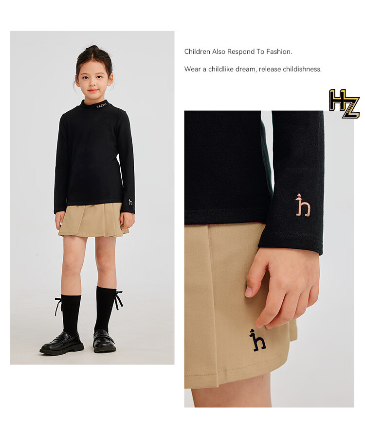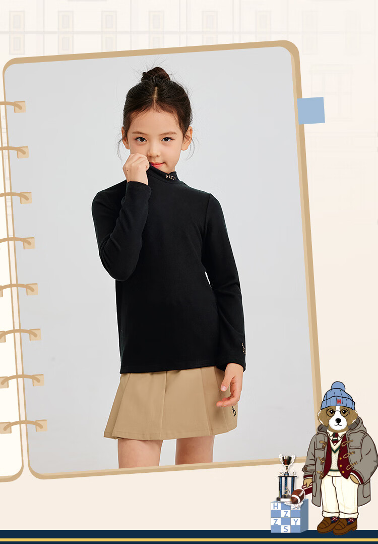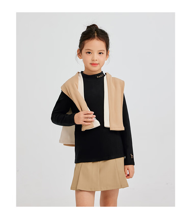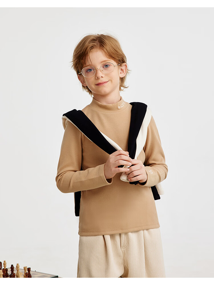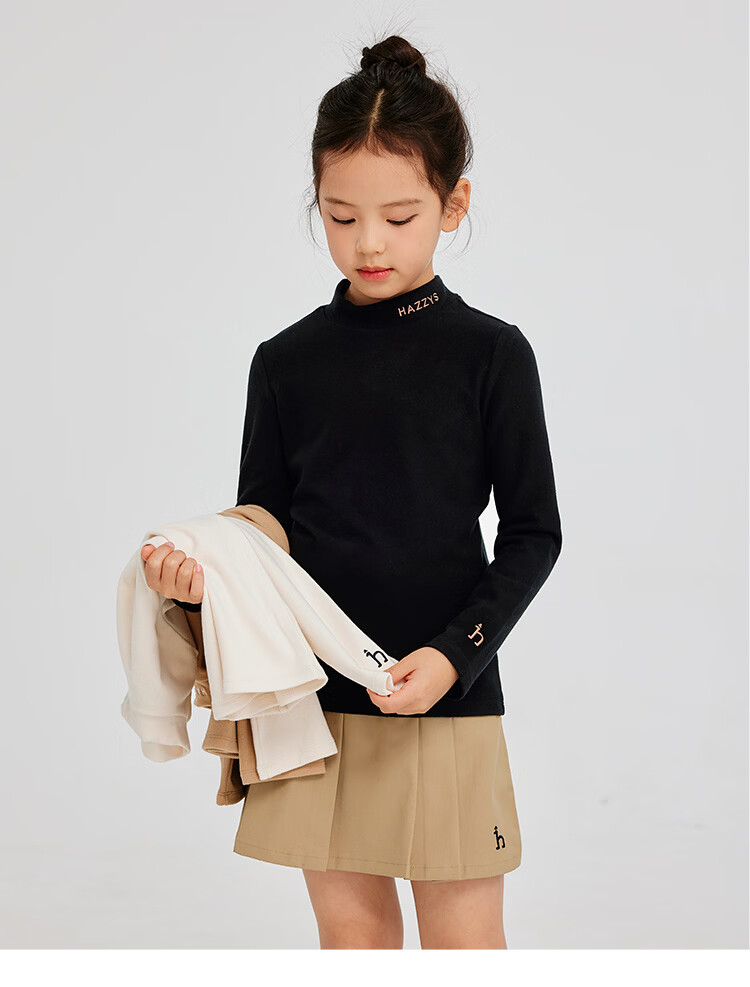 哈吉斯(HAZZYS)童装男女童打底衫2025秋新品针织双面欧绒上衣 钻石黑 130