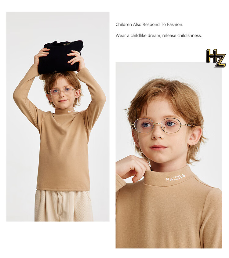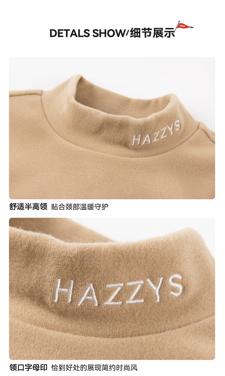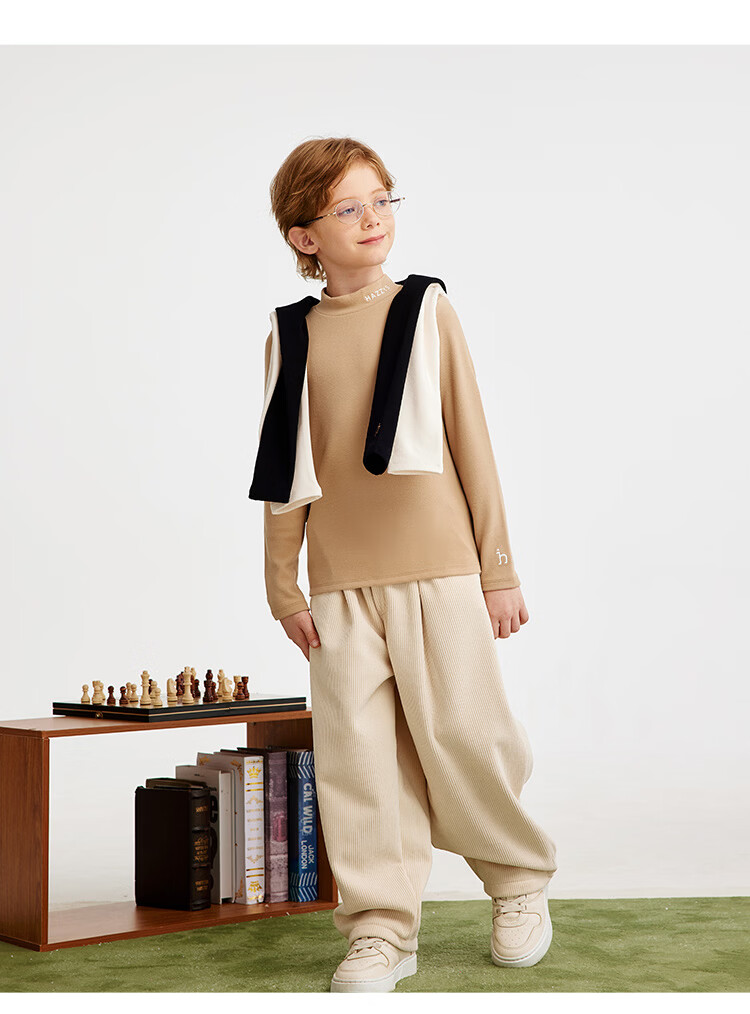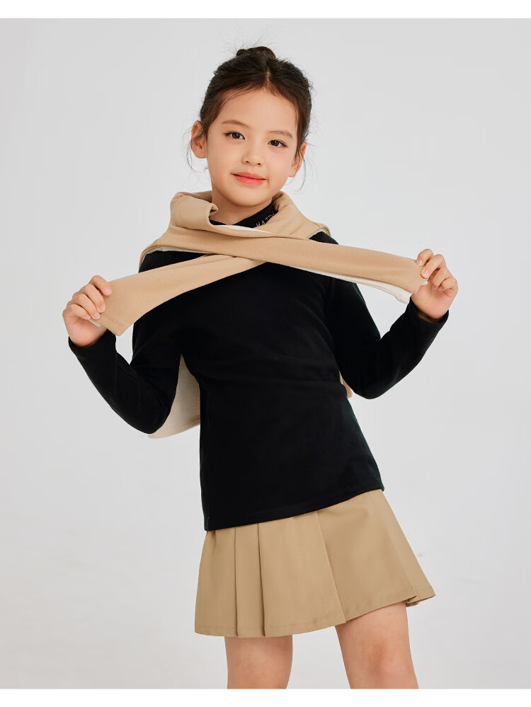 哈吉斯(HAZZYS)童装男女童打底衫2025秋新品针织双面欧绒上衣 钻石黑 130