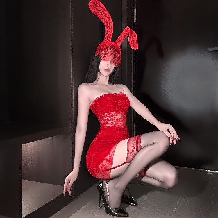 迷丝【镂空包臀裙】情趣内衣夫妻刺激高档制服纯欲镂空蕾丝包臀裙 红色包臀裙+红色面罩+同款丝袜 M【80-120】