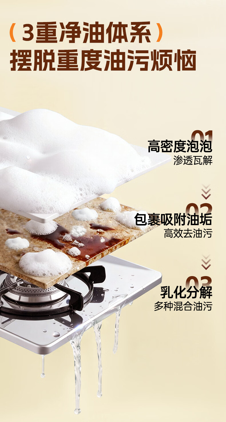 家务KAWOOD重油污泡泡净 去重油厨房油烟机强力去污多功能油污清洁剂500ml 重油污泡泡净500ml*2瓶+1泵头