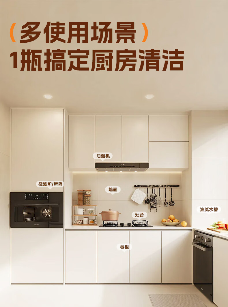 净浮生500ml油污净强力去油污清洗剂清洁剂油烟机锅底净重油污灶台神器 5瓶2喷头