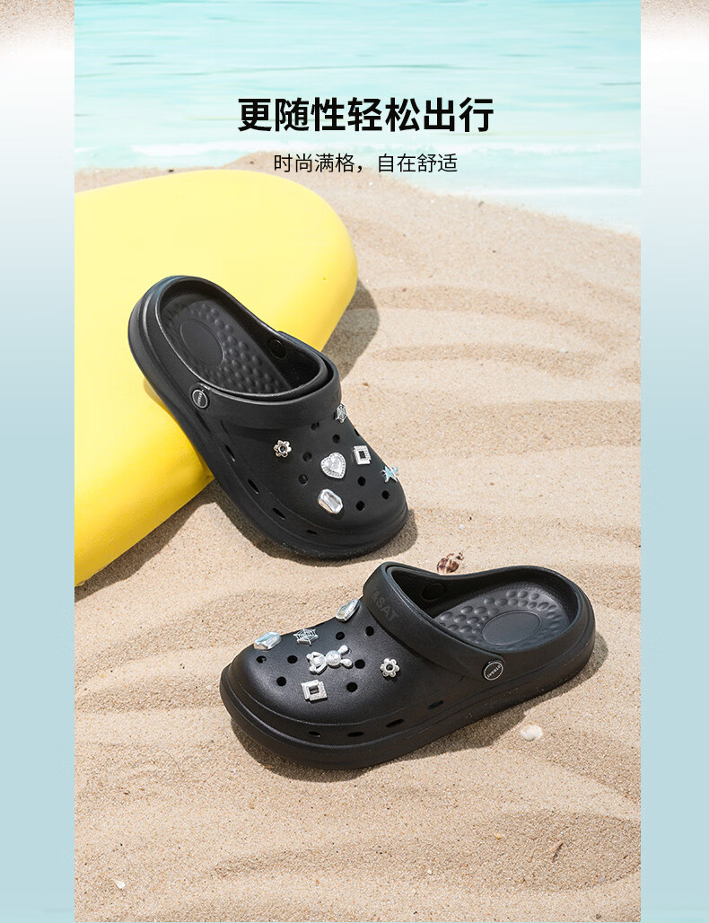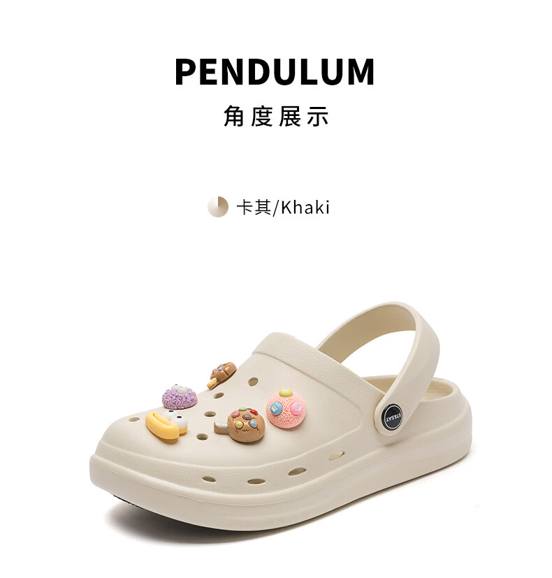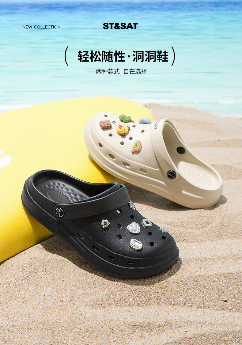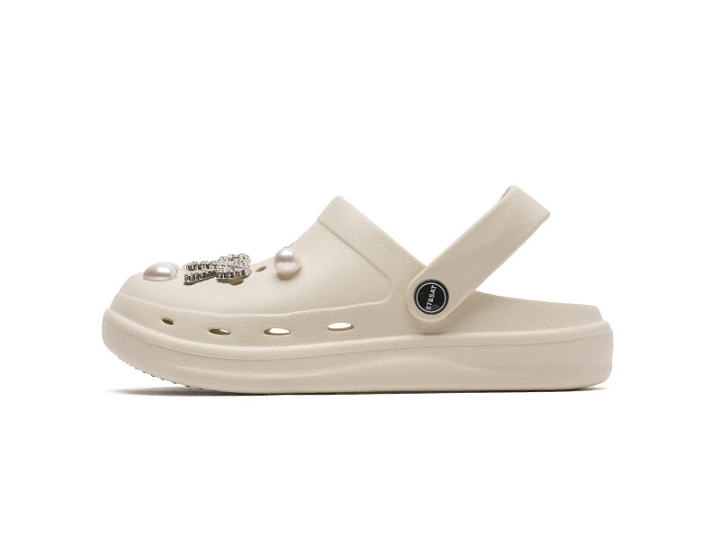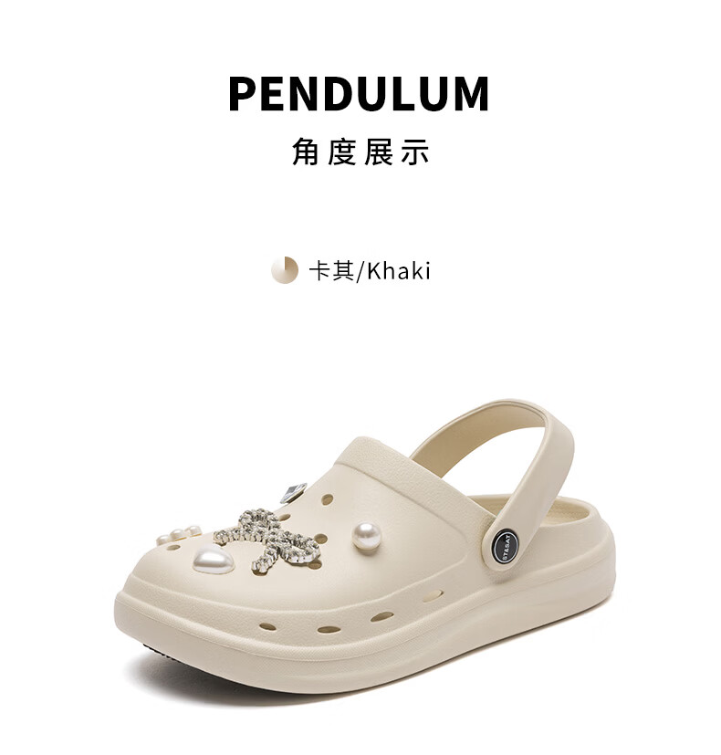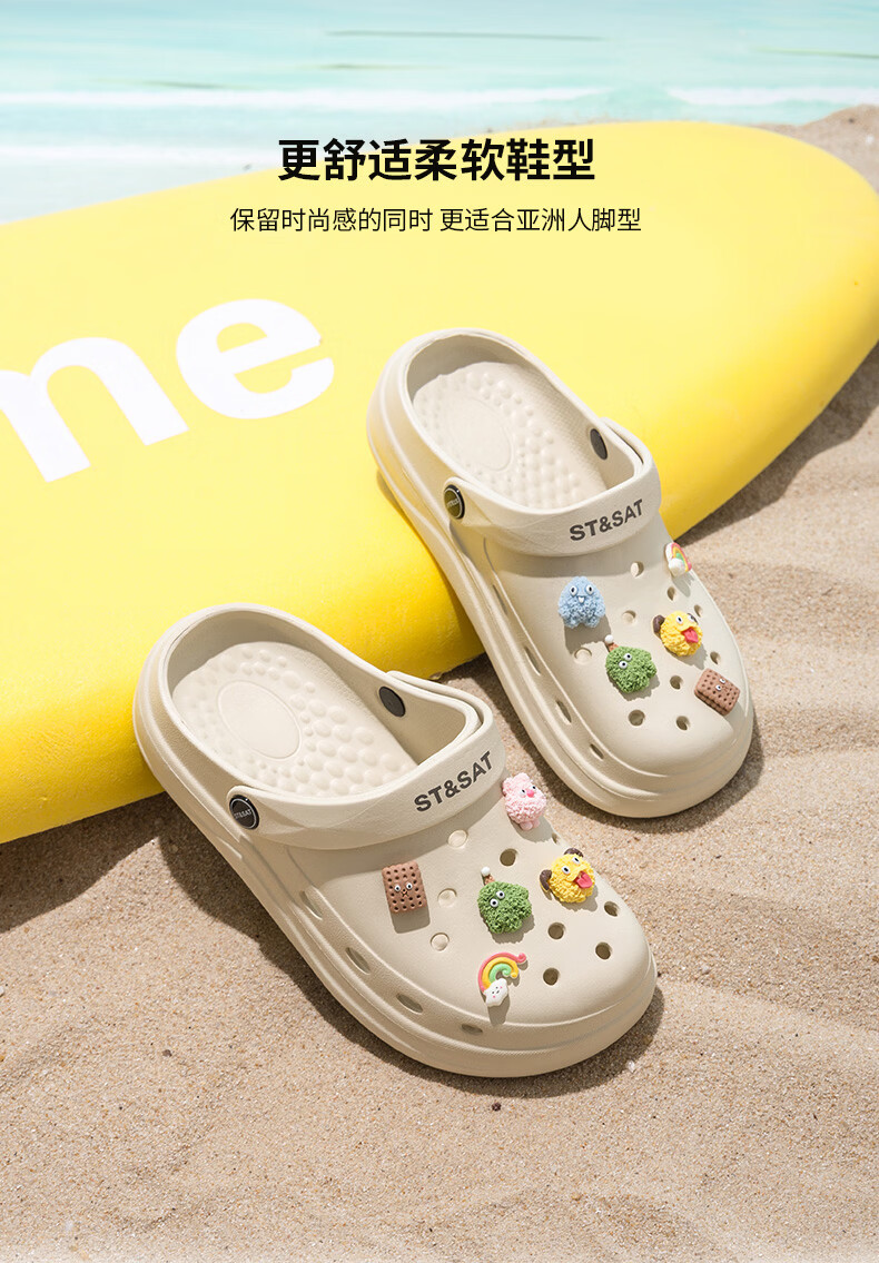 星期六(St&Sat)时尚百搭凉鞋夏季外穿套脚洞洞鞋防水一脚蹬沙滩鞋休闲拖鞋女鞋 卡其色 【珍珠爱心】 38