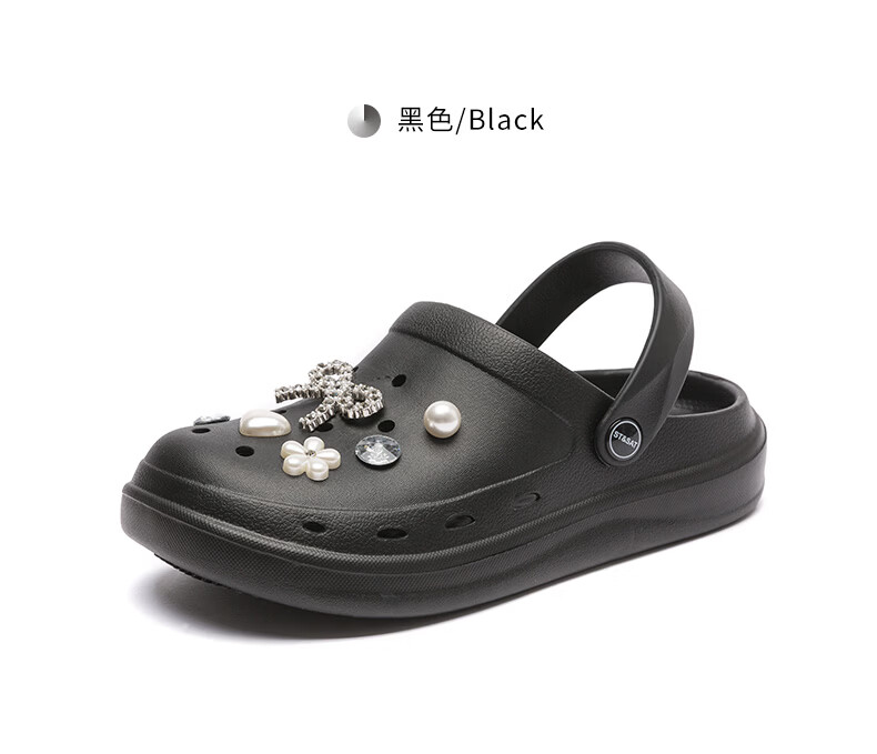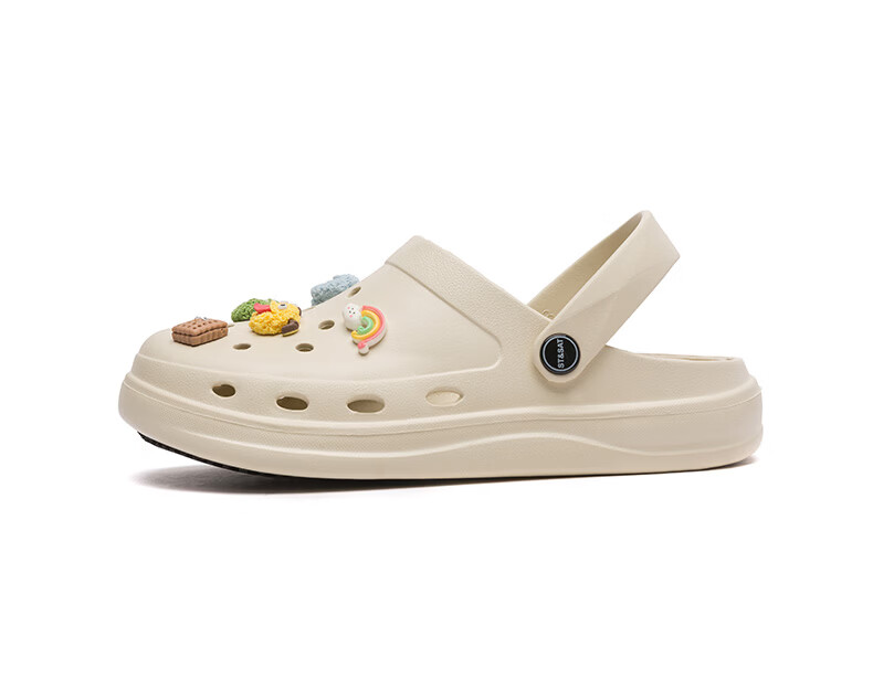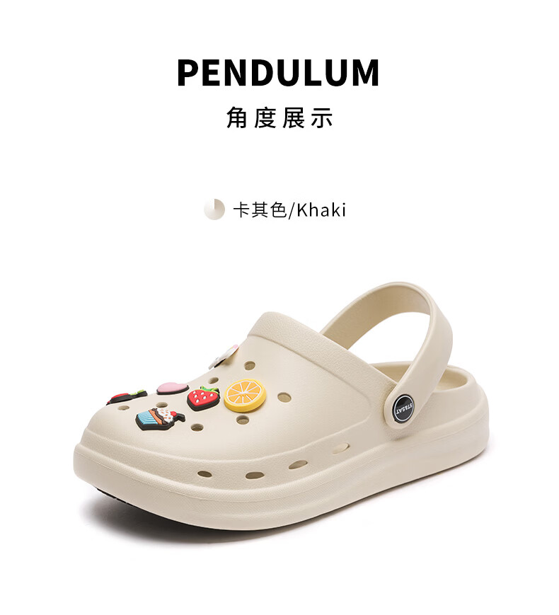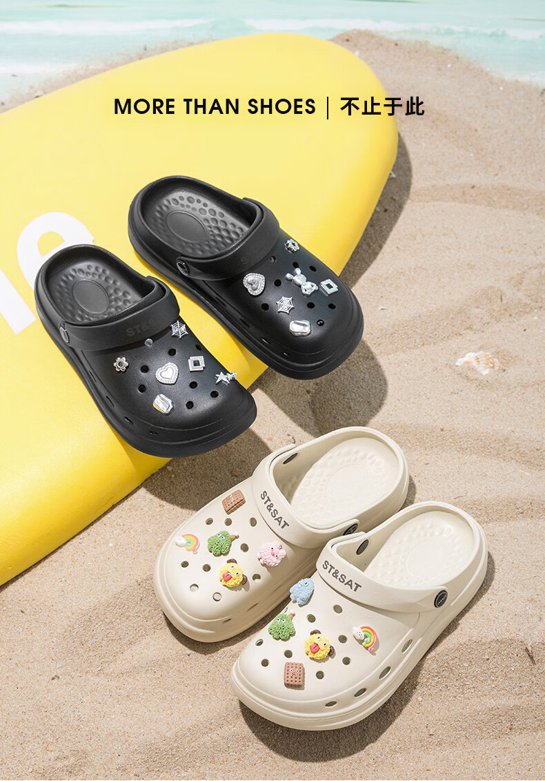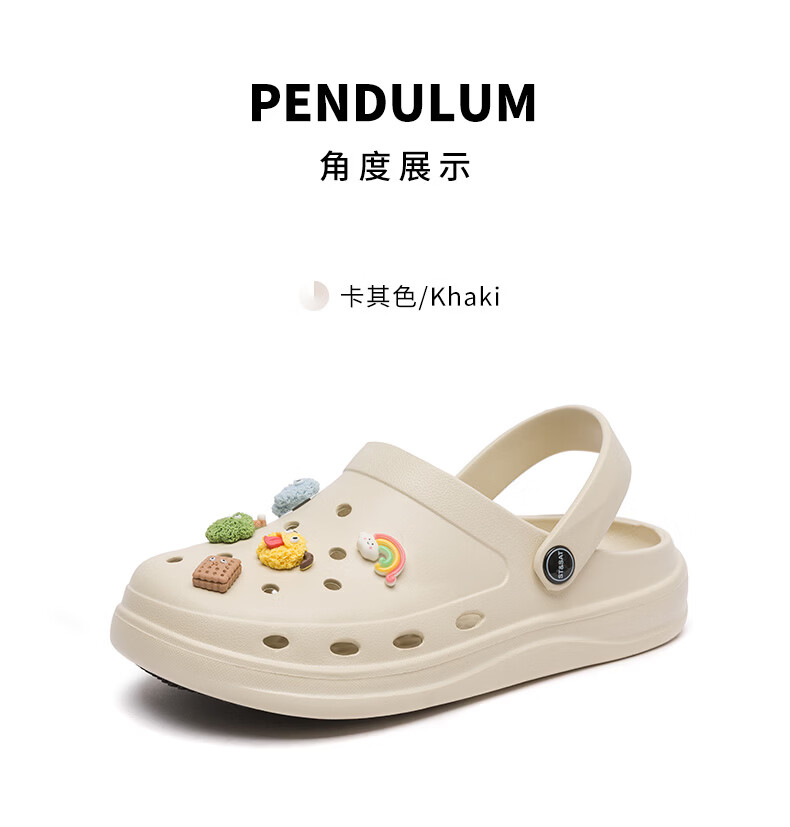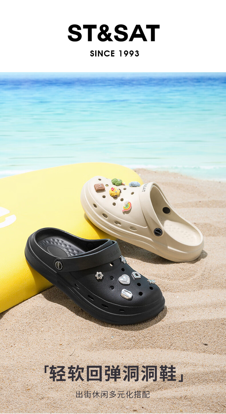 星期六(St&Sat)时尚百搭凉鞋夏季外穿套脚洞洞鞋防水一脚蹬沙滩鞋休闲拖鞋女鞋 卡其色 【珍珠爱心】 38