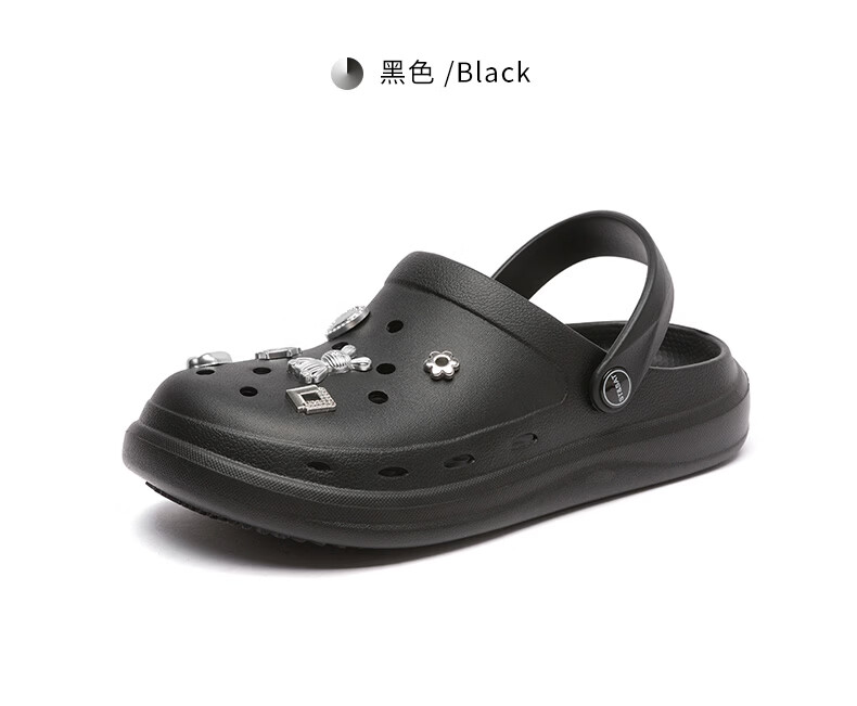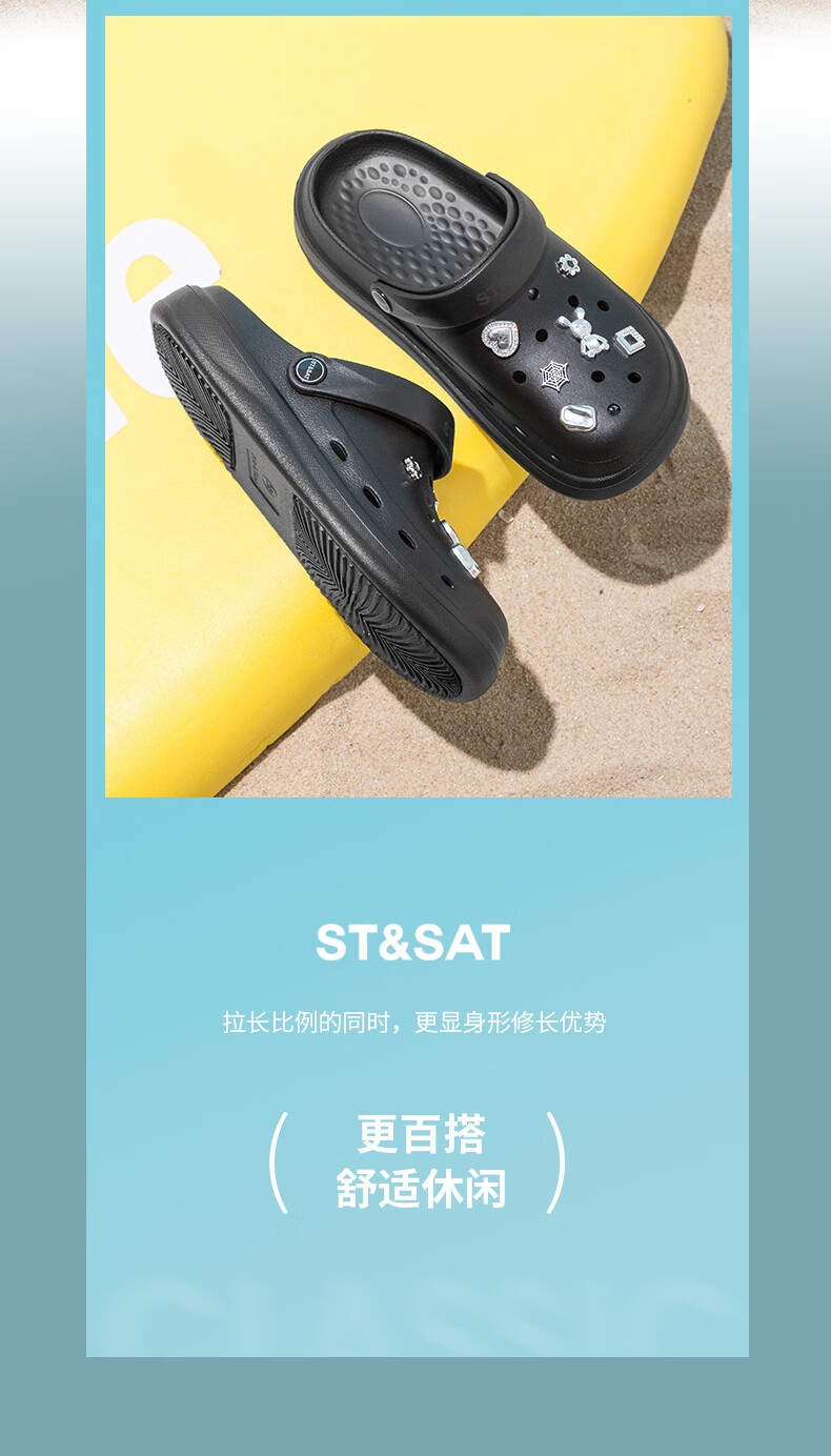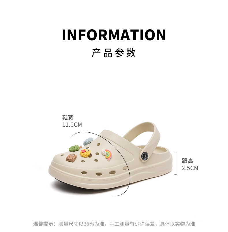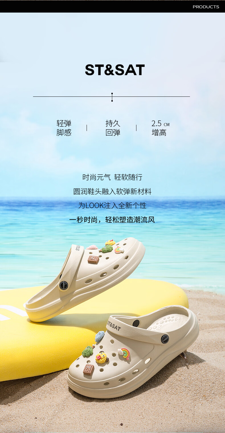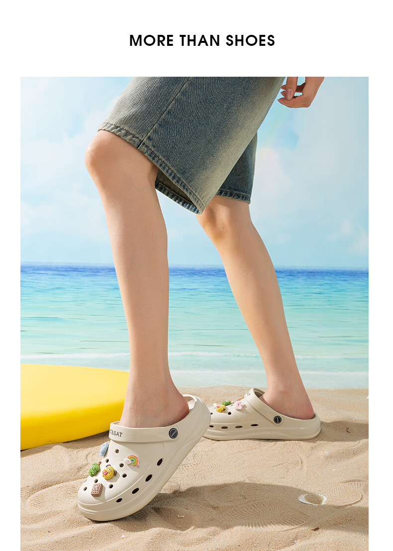 星期六(St&Sat)时尚百搭凉鞋夏季外穿套脚洞洞鞋防水一脚蹬沙滩鞋休闲拖鞋女鞋 卡其色 【珍珠爱心】 38