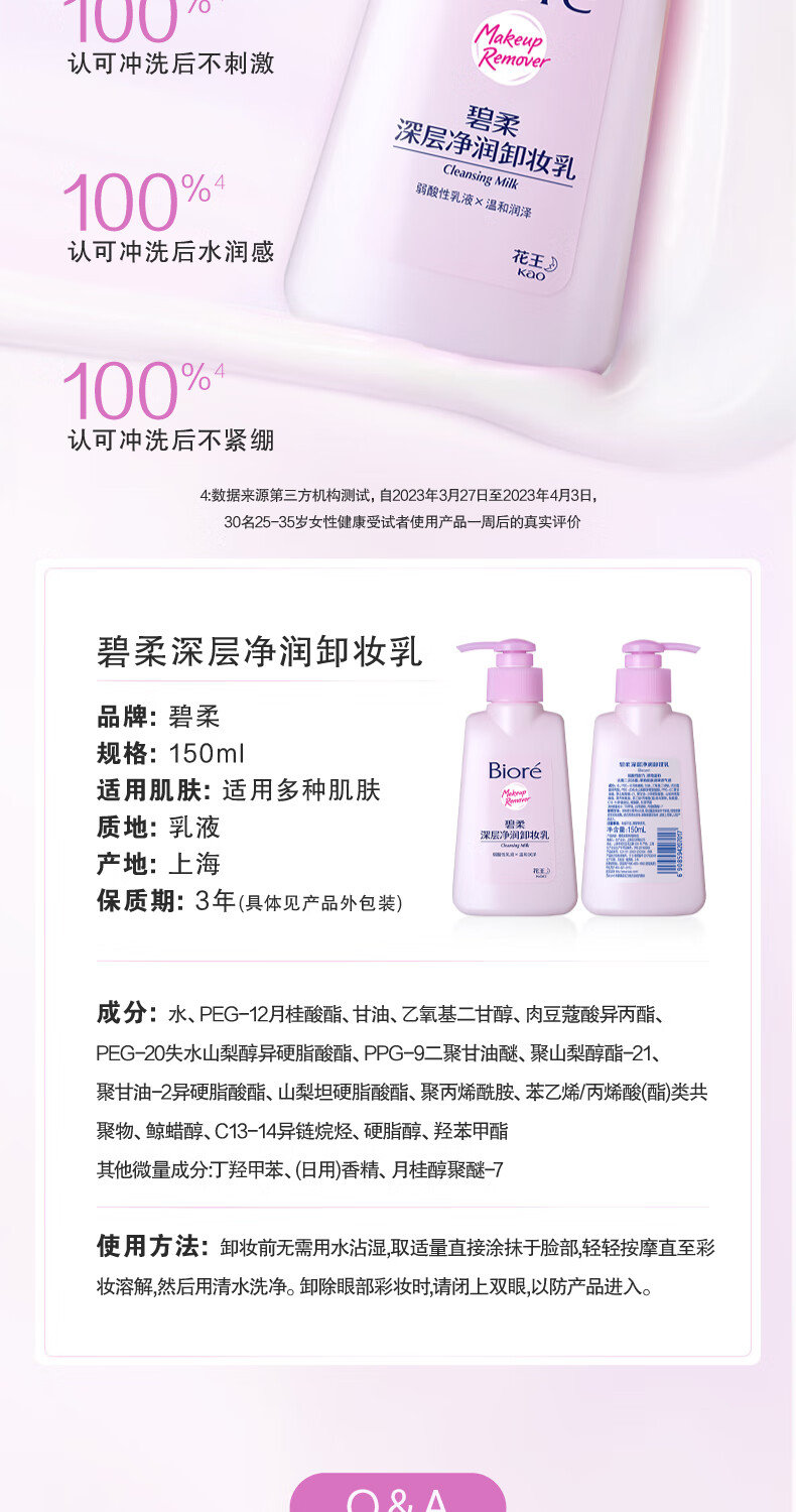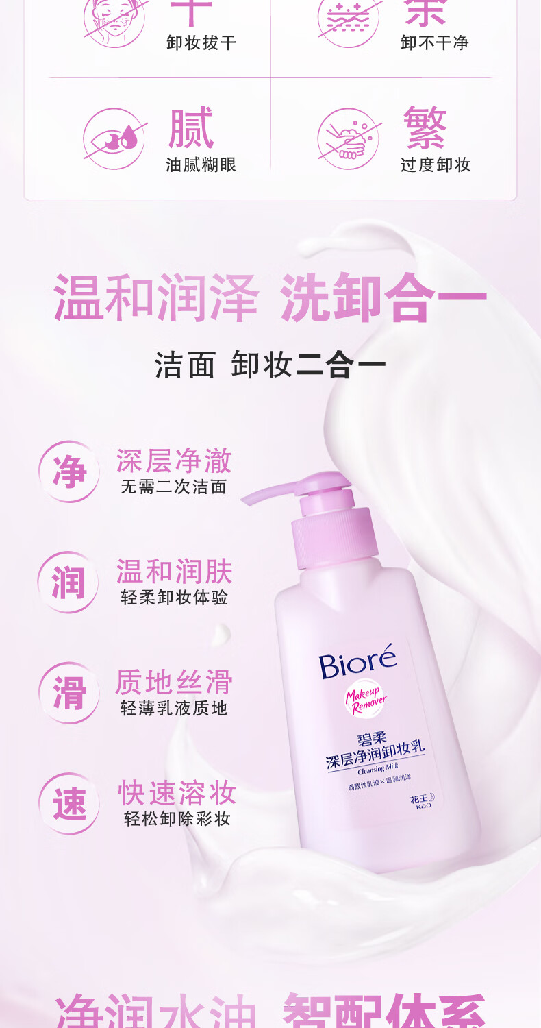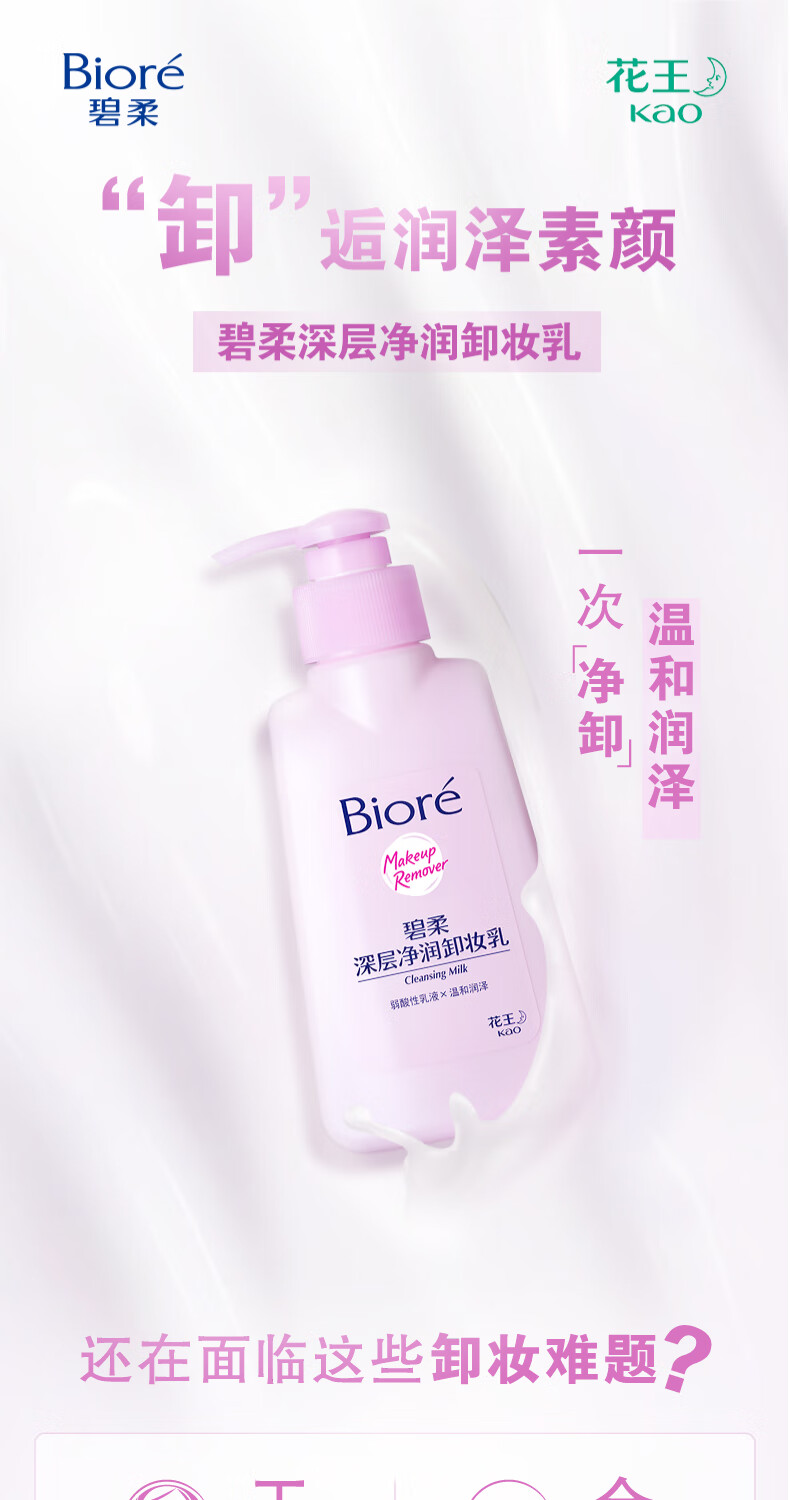 碧柔(Biore)花王深层净透卸妆150ml清洁温和不刺激防水彩妆眼唇脸部可用学生 【清爽型】深层净透卸妆油150ml