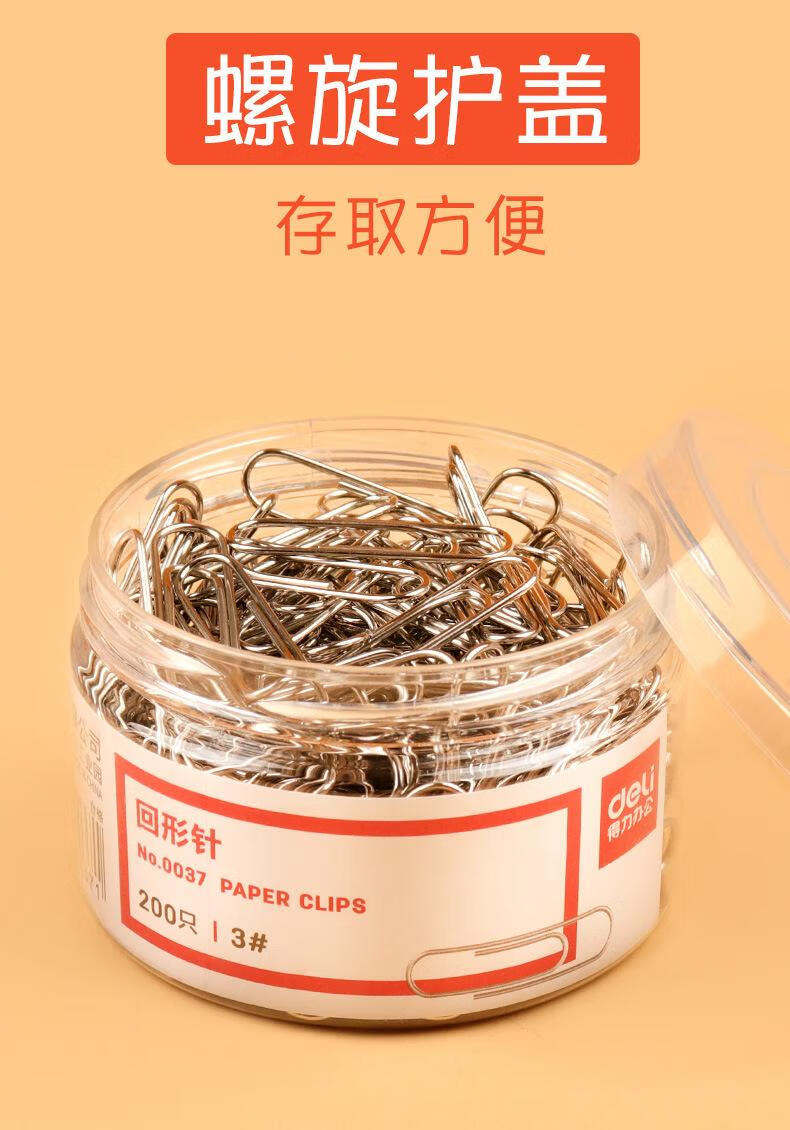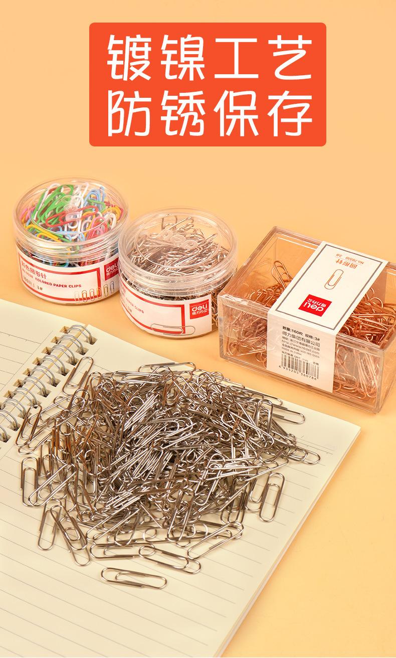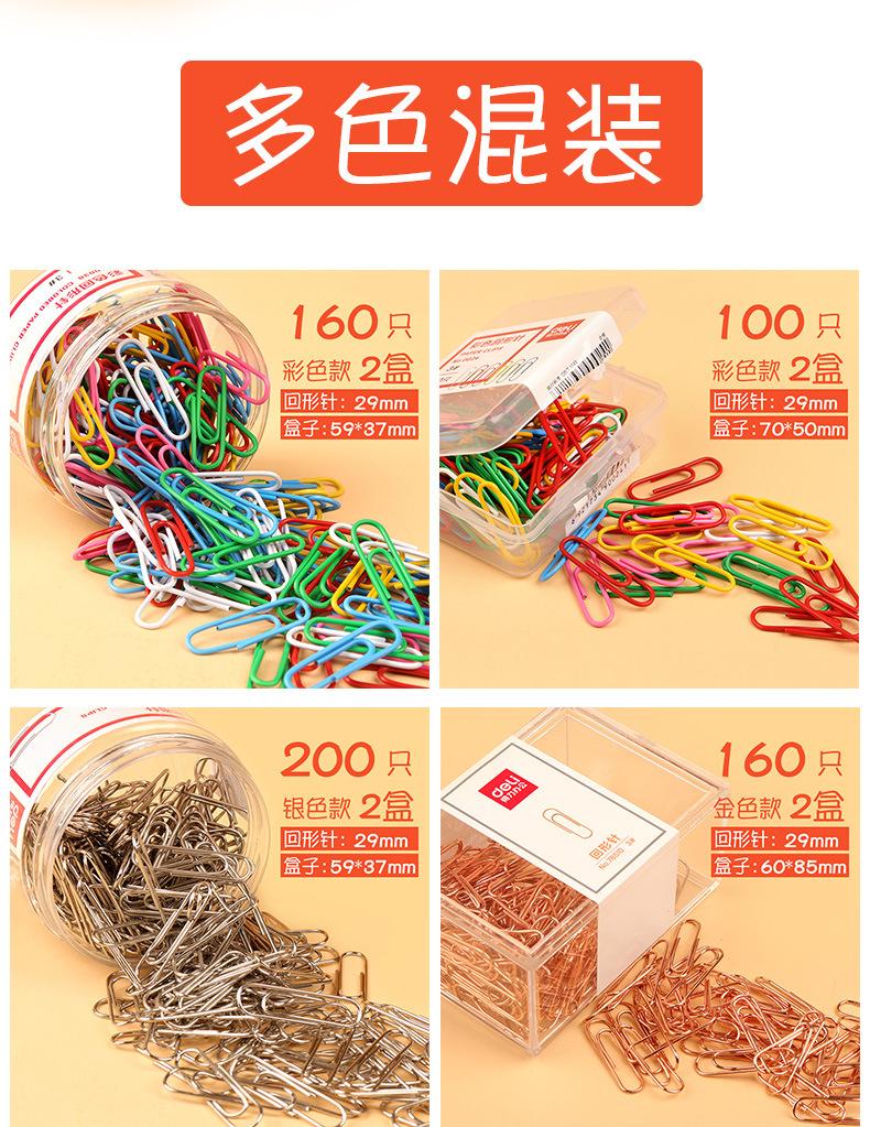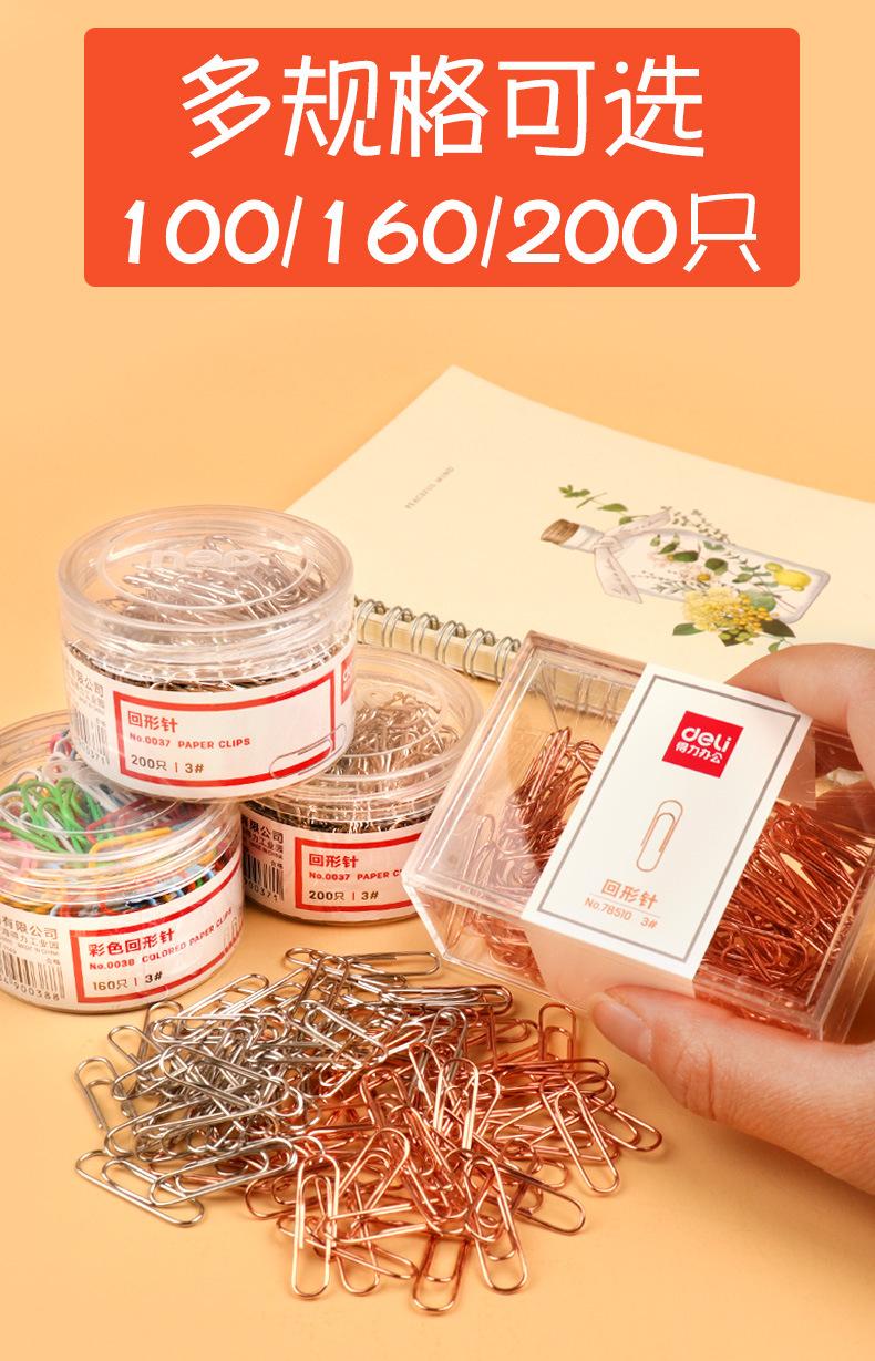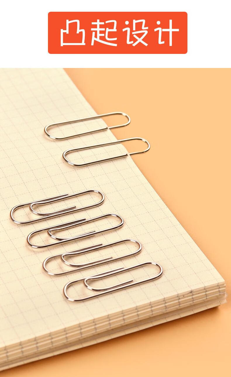 得问回形针办公用品固定衣服彩色书签创意可爱文具大号曲别针 银色纸盒装100
