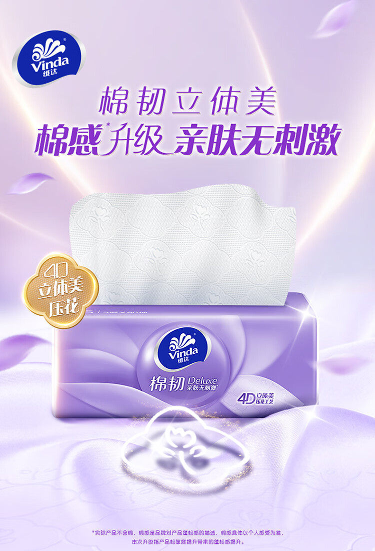 维达【厂家现发】抽纸棉韧立体美抽纸 3层 100抽*5包 3层*100抽*5包