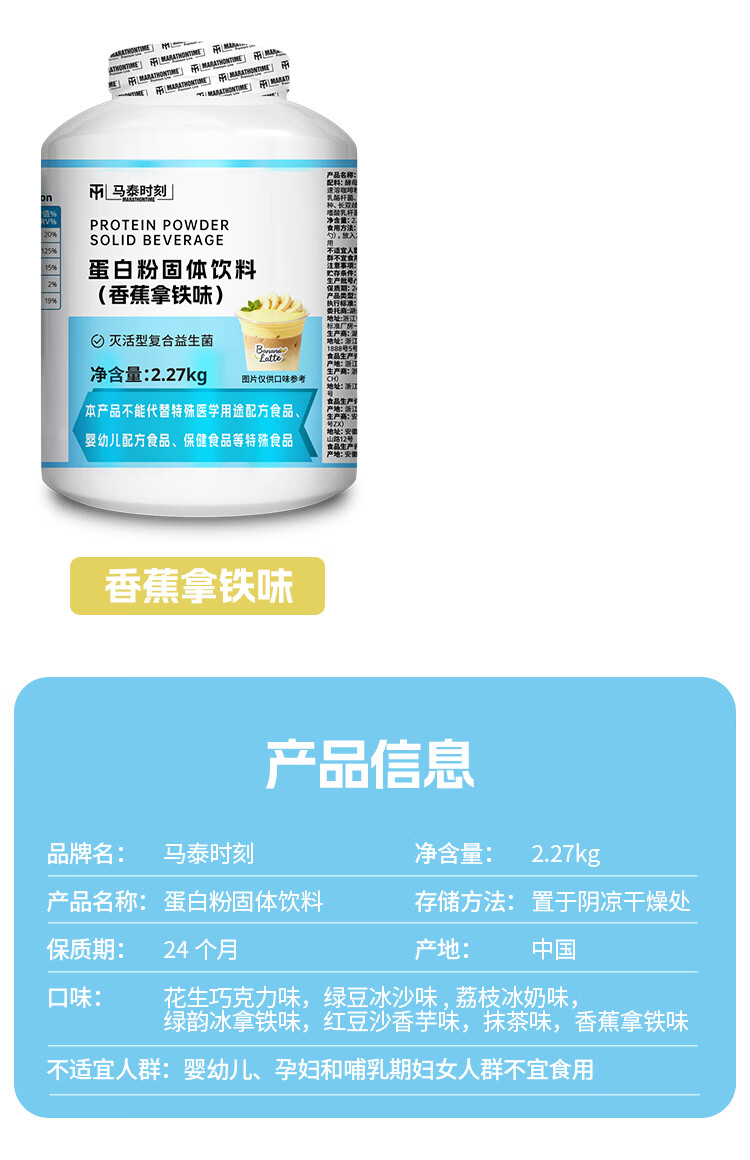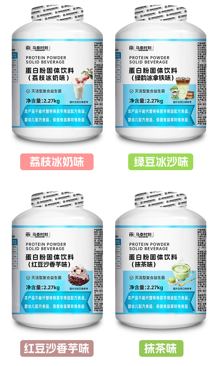 马泰时刻乳清蛋白粉5磅 添加益生菌 高蛋白健身增肌减脂运动补剂正品whey 茉莉绿茶 5磅*1桶