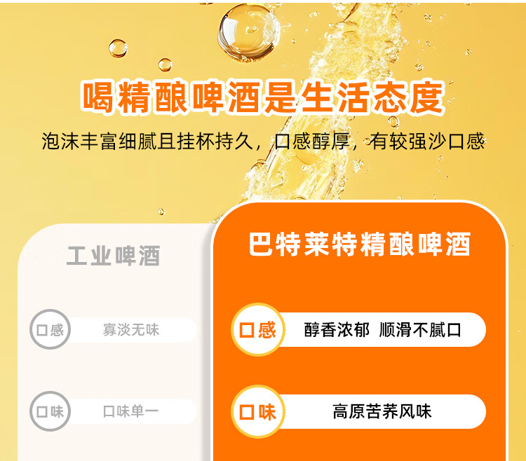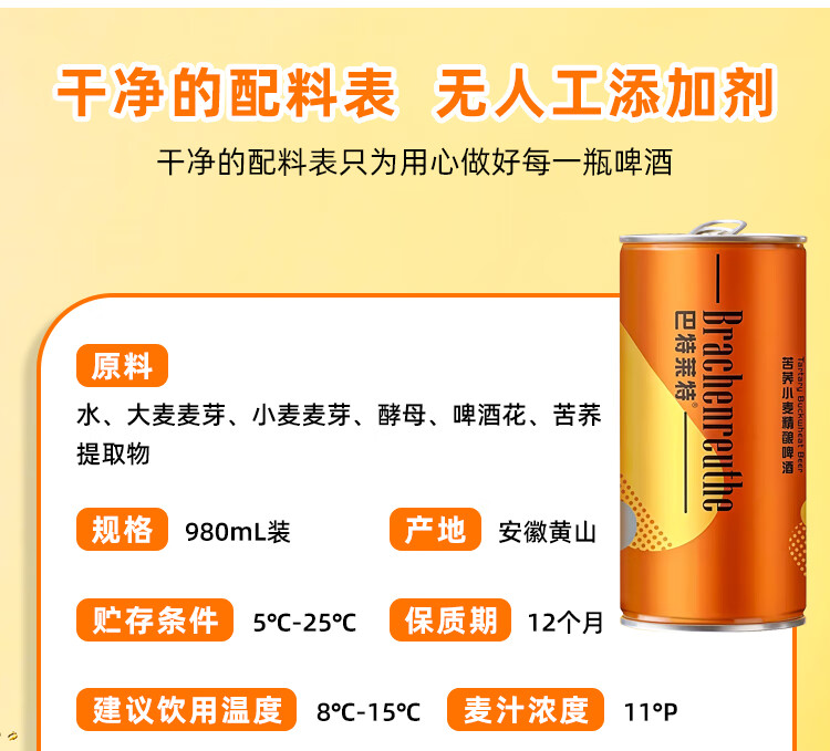 巴特莱特苦荞小麦精酿原浆啤酒11°P精酿啤酒980mL*2,980mL*6整箱包邮 品牌正品假一赔十 980mL 6罐