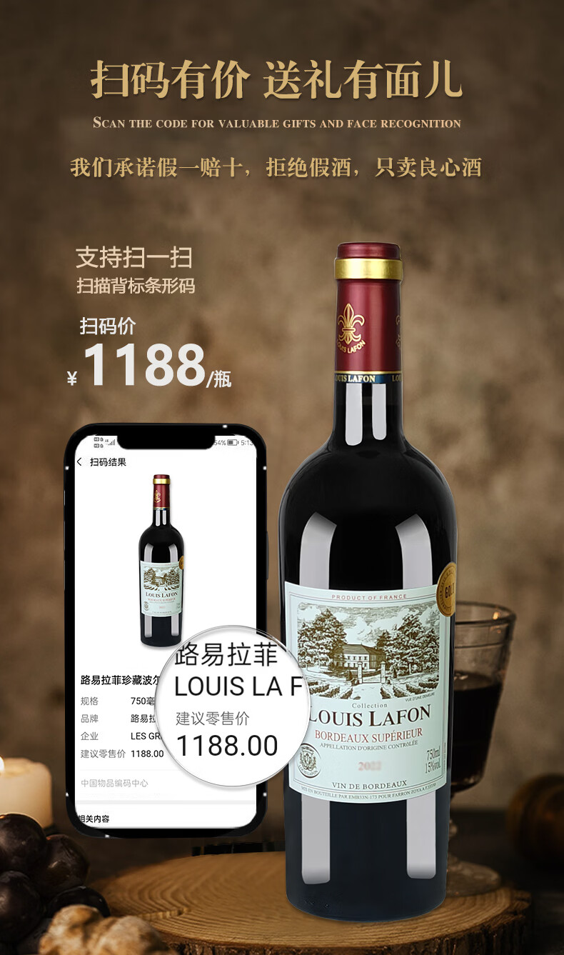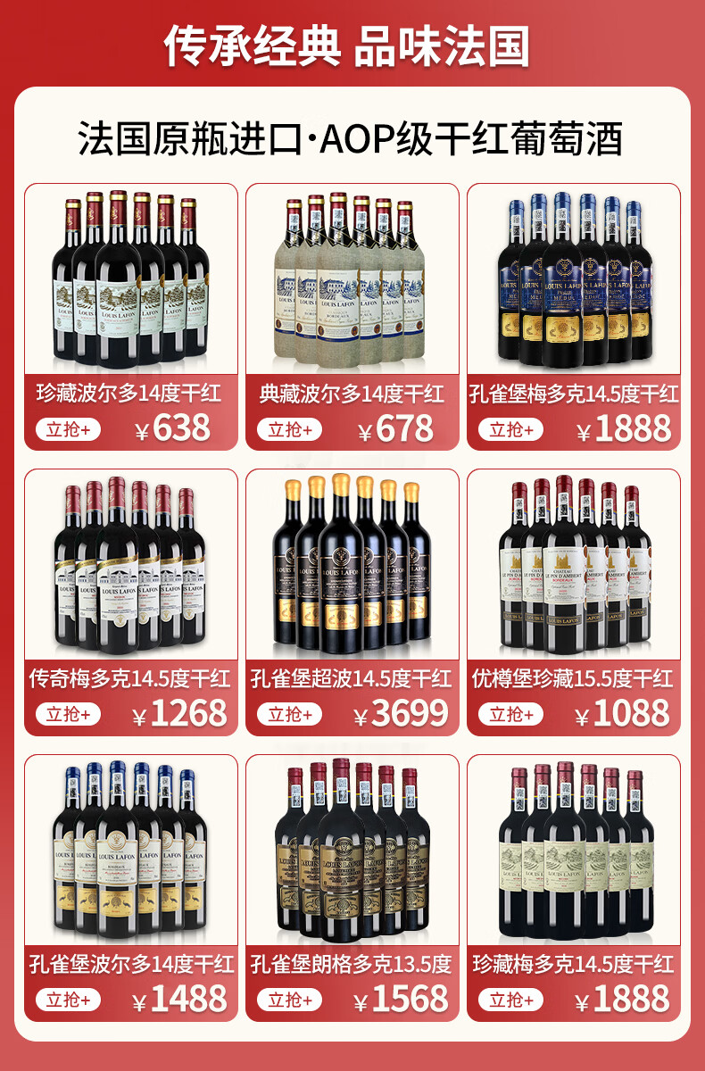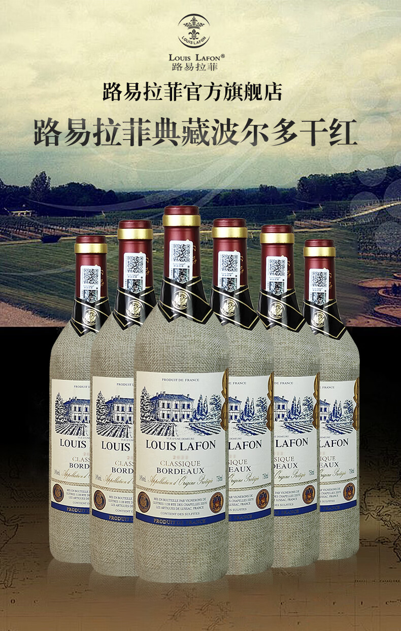 路易拉菲(LOUIS LAFON)法国波尔多AOP级干红葡萄酒原瓶进口红酒整箱6瓶装年货节日好礼盒 【双项大奖】典藏波尔多750ml*6瓶(送开瓶器)