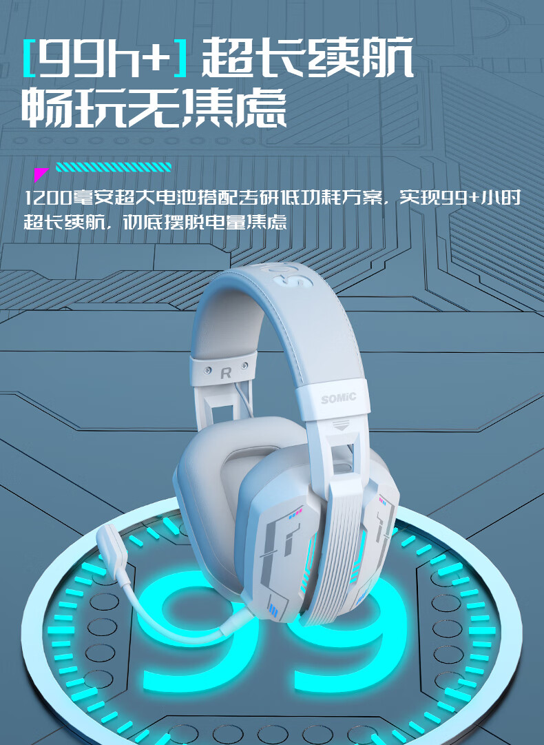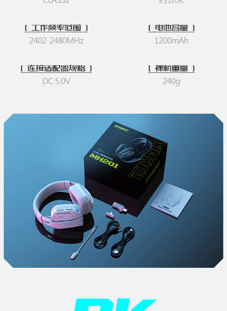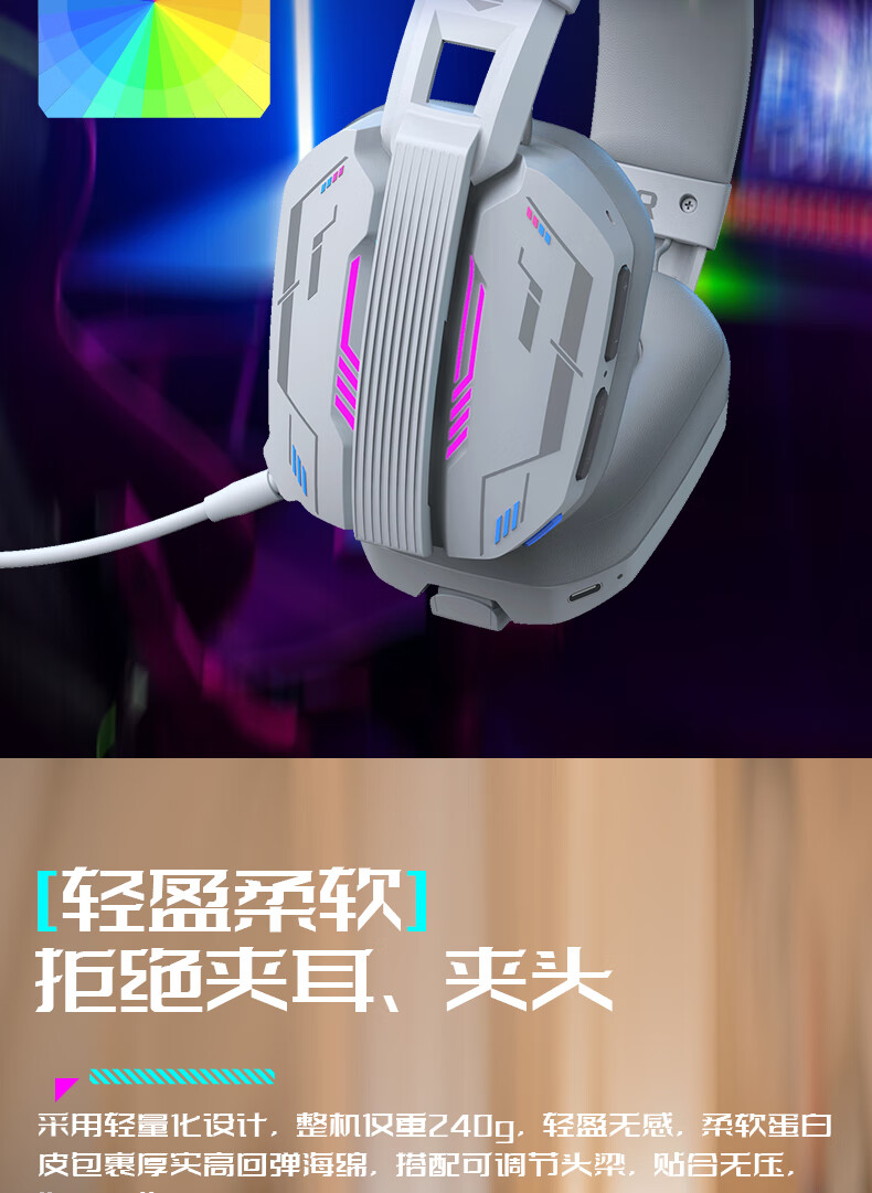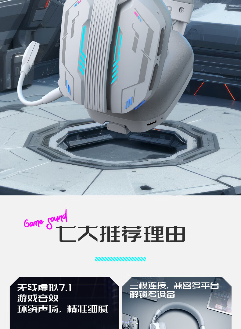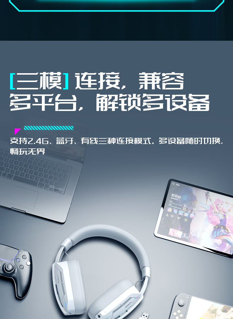 硕美科硕美科MH201头戴式游戏电竞耳机 2.4G蓝牙有线三模无线虚拟7.1 MH201*白色游戏电竞耳机*三模