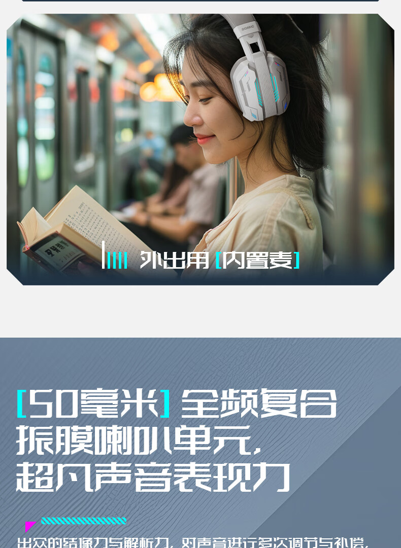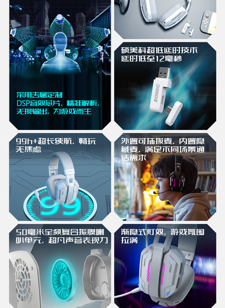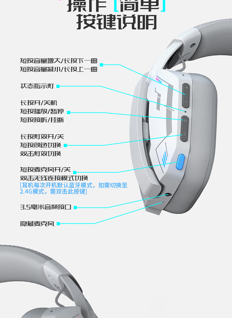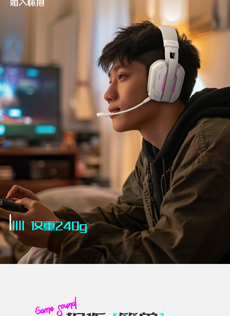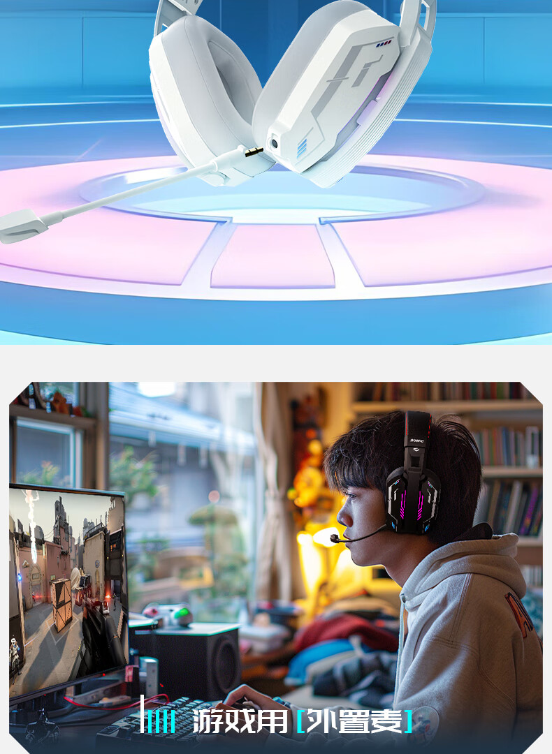 硕美科硕美科MH201头戴式游戏电竞耳机 2.4G蓝牙有线三模无线虚拟7.1 MH201*白色游戏电竞耳机*三模