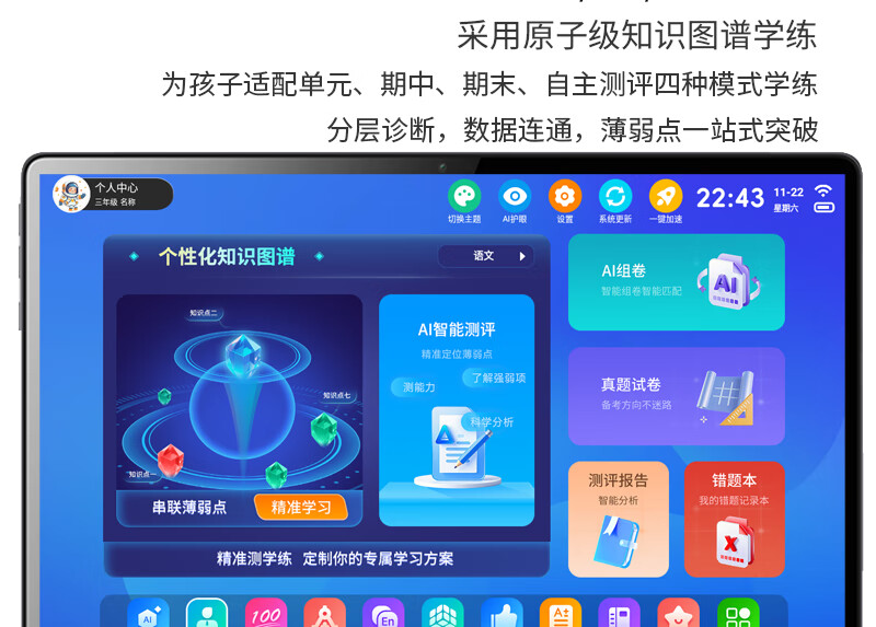 东方状元郎学习机平板AI小学生英语点读机初高中家教机Deepseek上网课本同步2026教材幼儿童早教机伴学练机 状元版16G+512作业批改+AI互动讲题+提分宝 5G极速网【睿智蓝】AR智慧眼+AI护眼+精品课