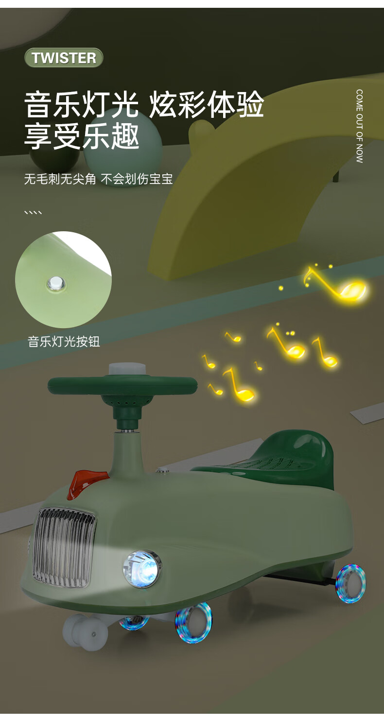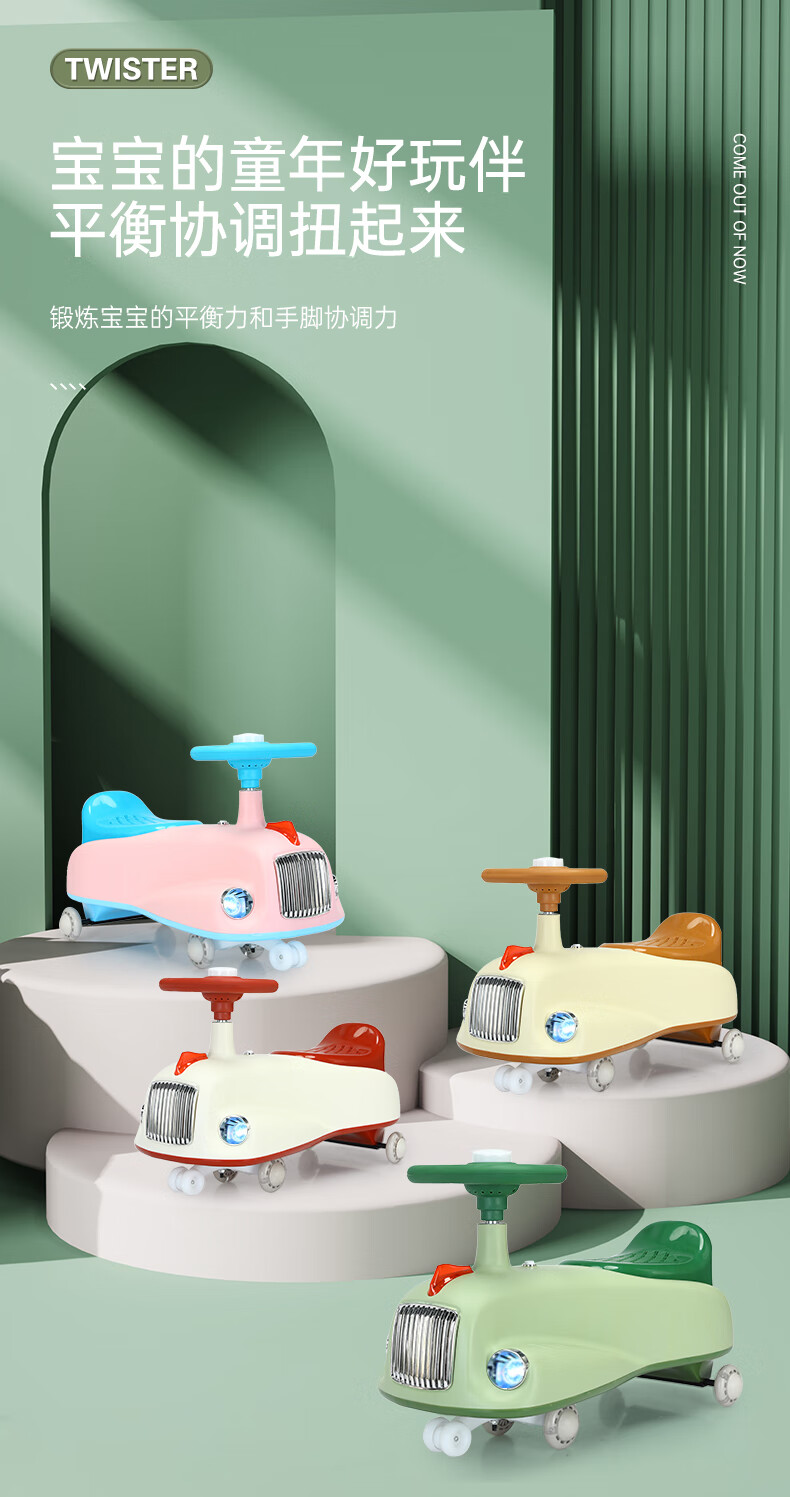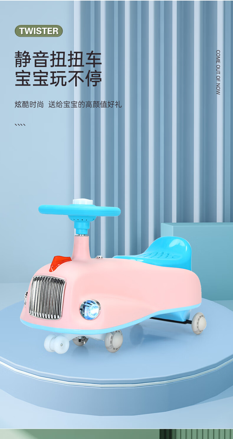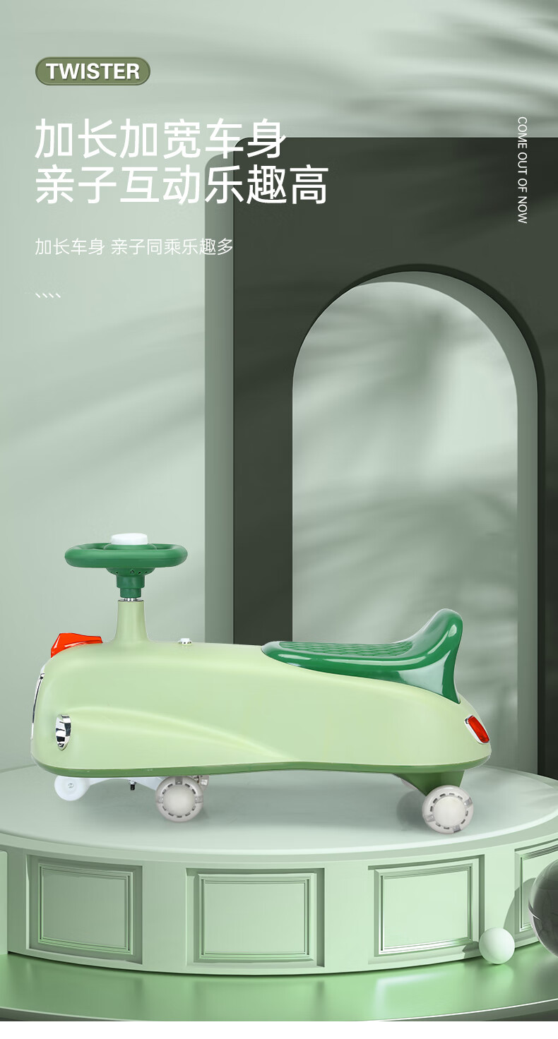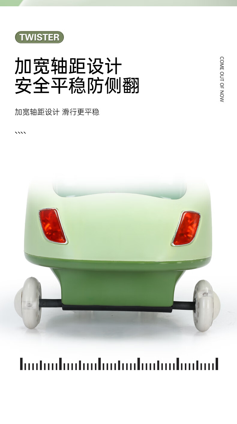 MEACOOL扭扭车儿童溜溜车1-3岁防侧翻男女宝宝加长双人可坐妞妞车溜溜车 白红色【闪光静音轮+加长车身】