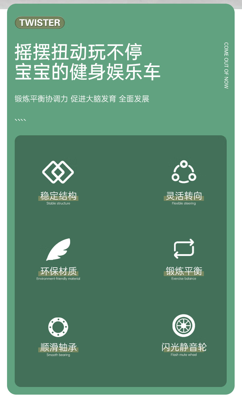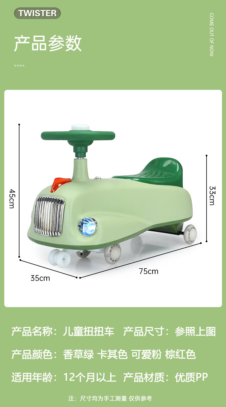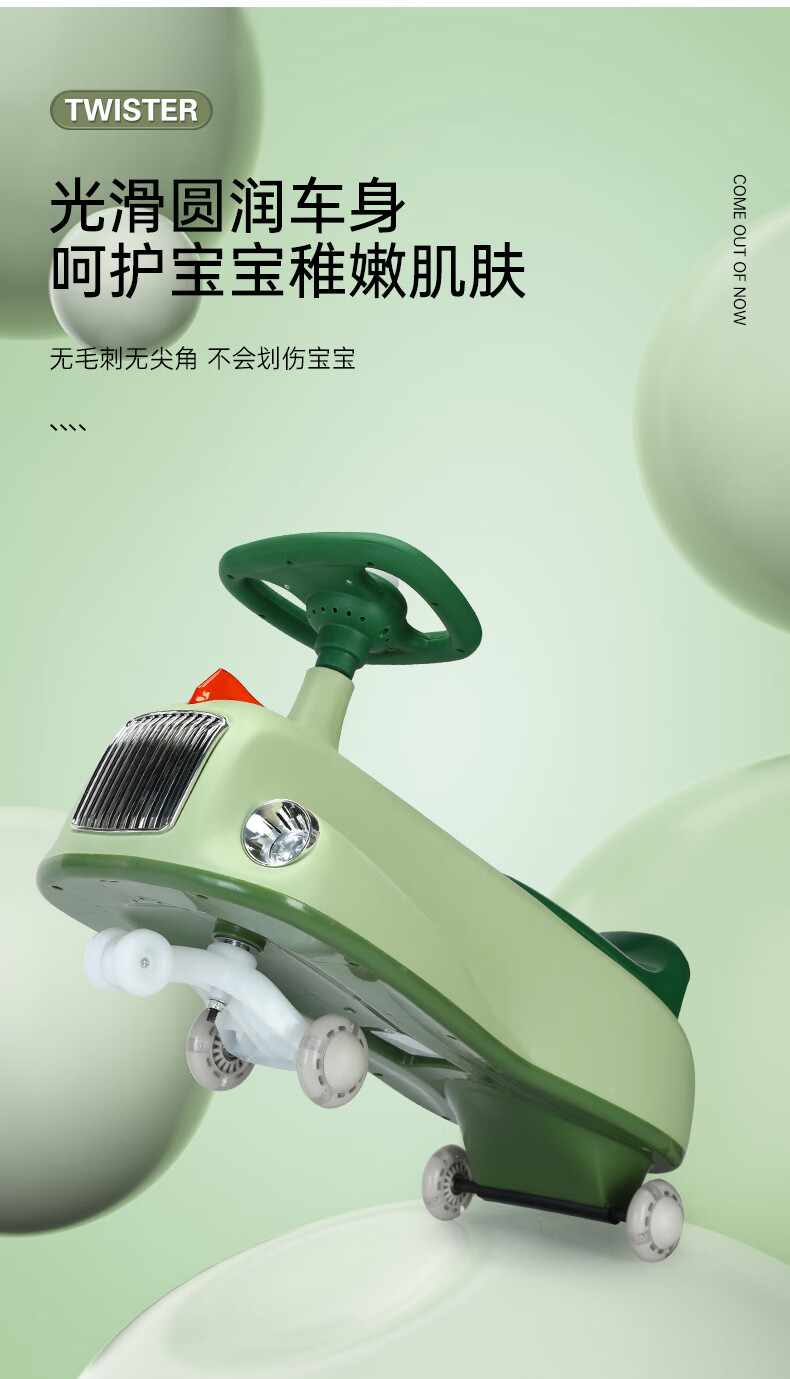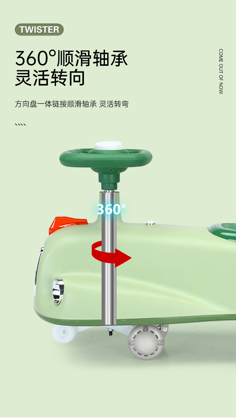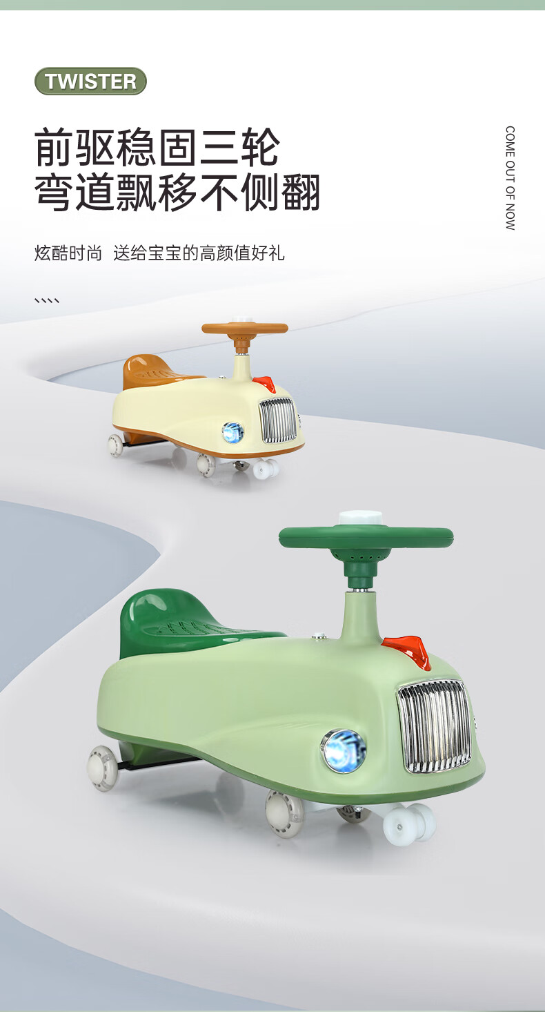 MEACOOL扭扭车儿童溜溜车1-3岁防侧翻男女宝宝加长双人可坐妞妞车溜溜车 白红色【闪光静音轮+加长车身】