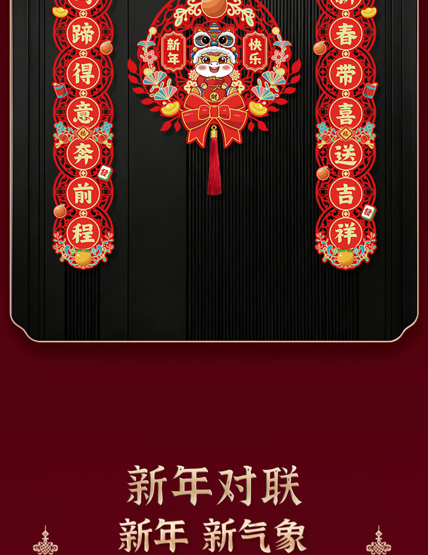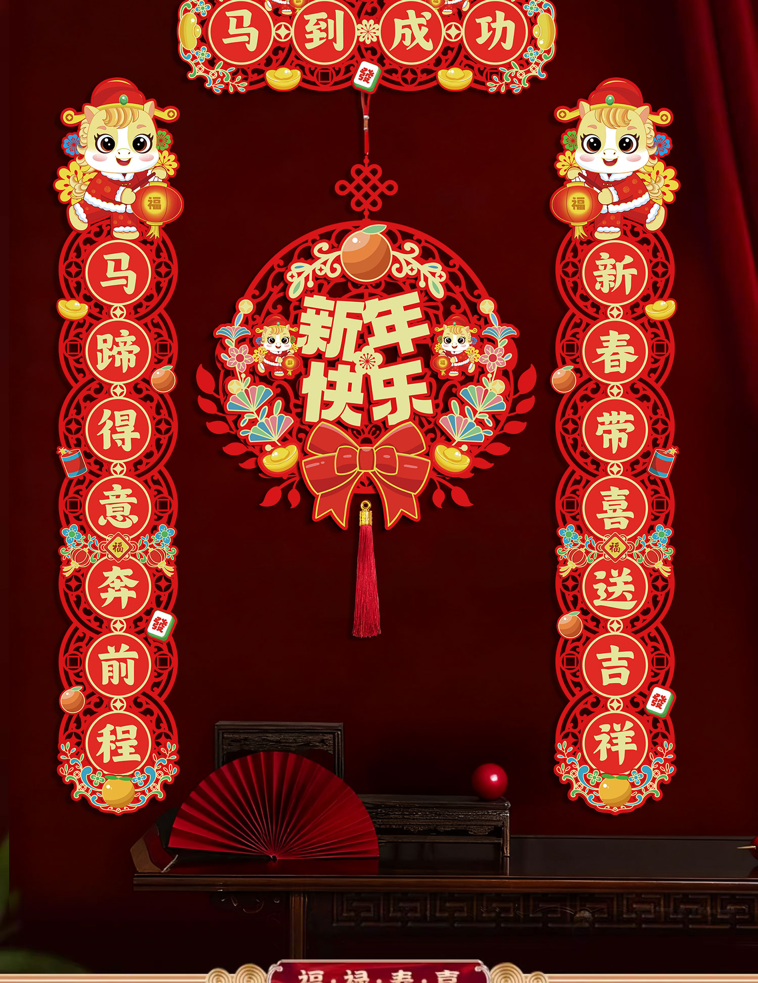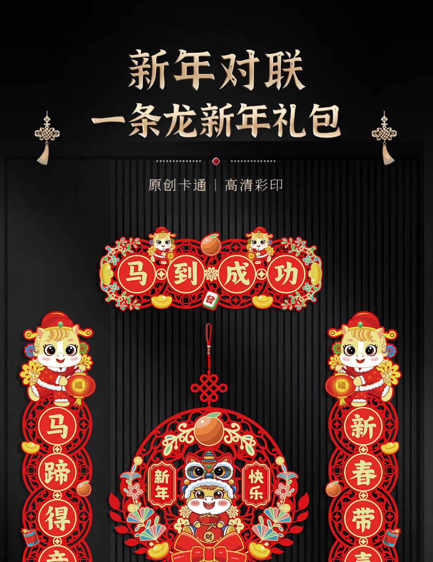 鸿运礼马年新款磁吸对联2026春联对联元旦新年装饰春节过年门贴大门装饰 【马到成功】-新年对联套装+挂件