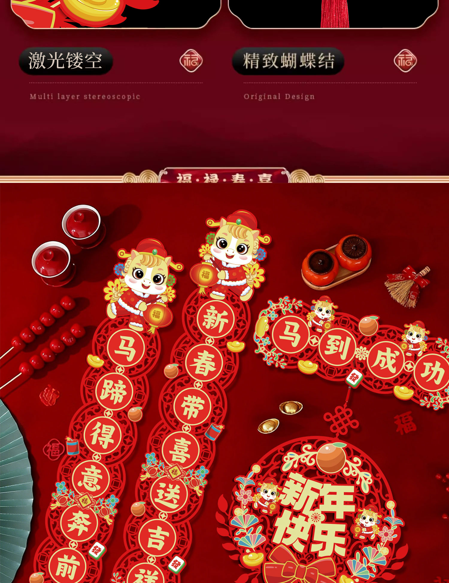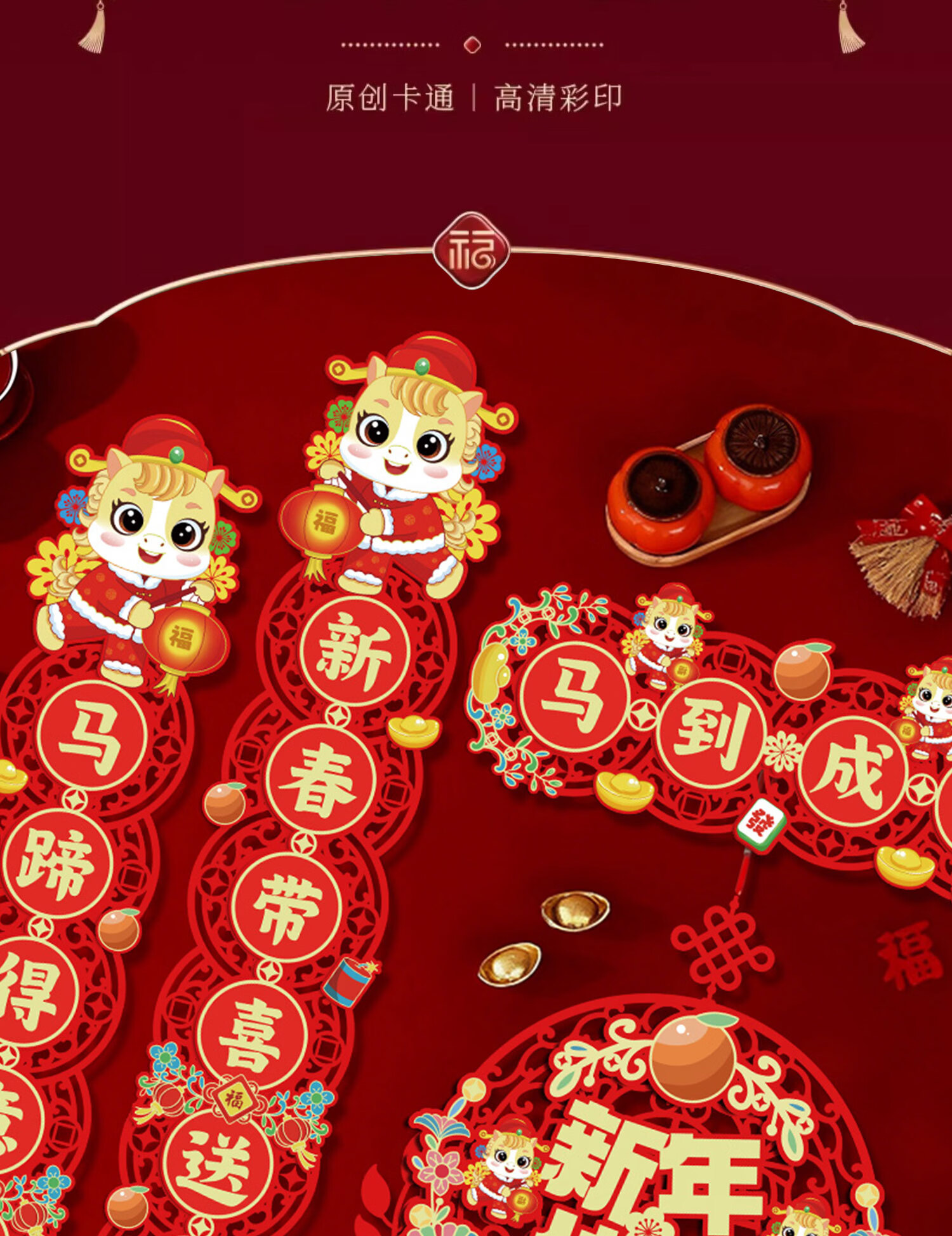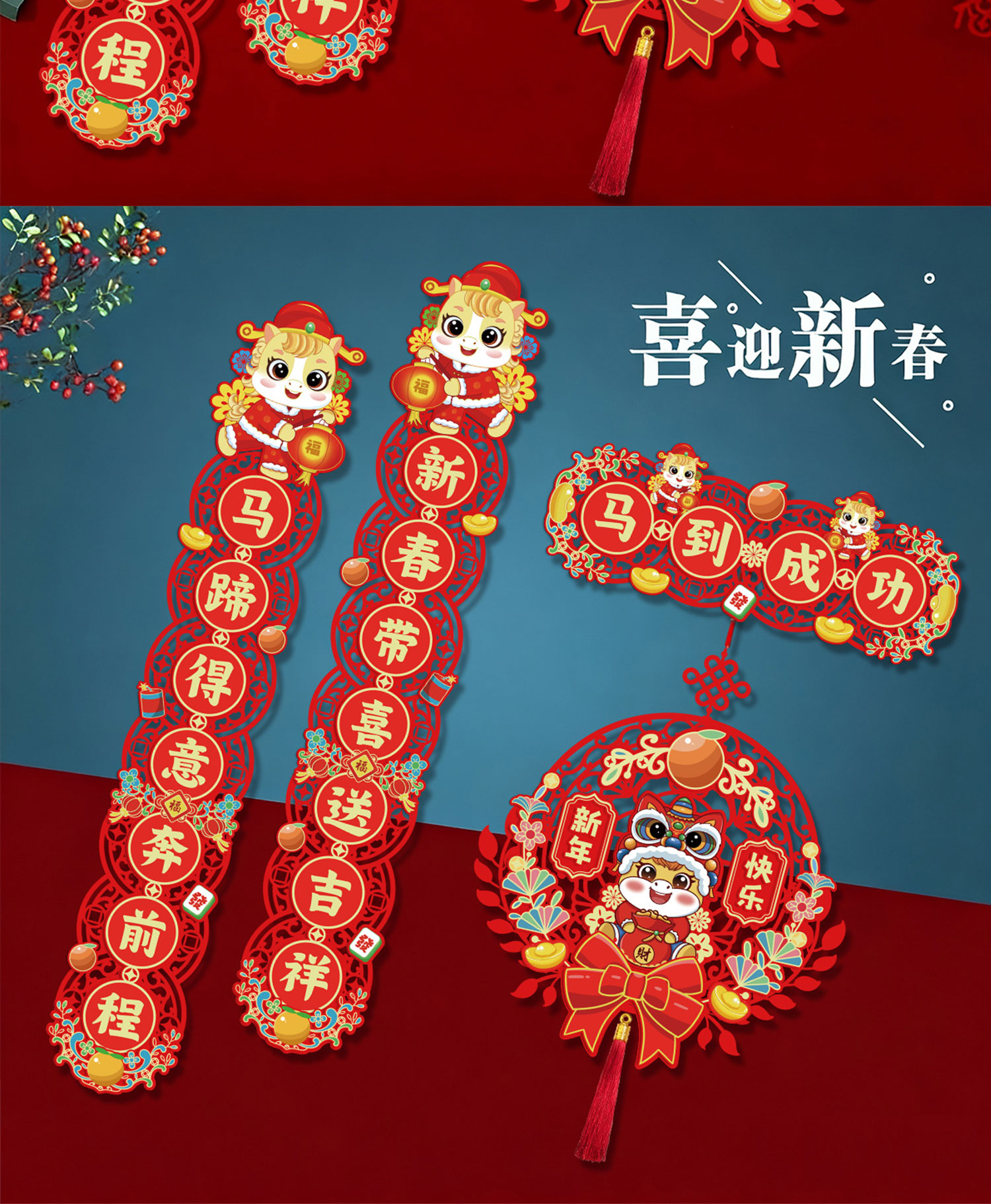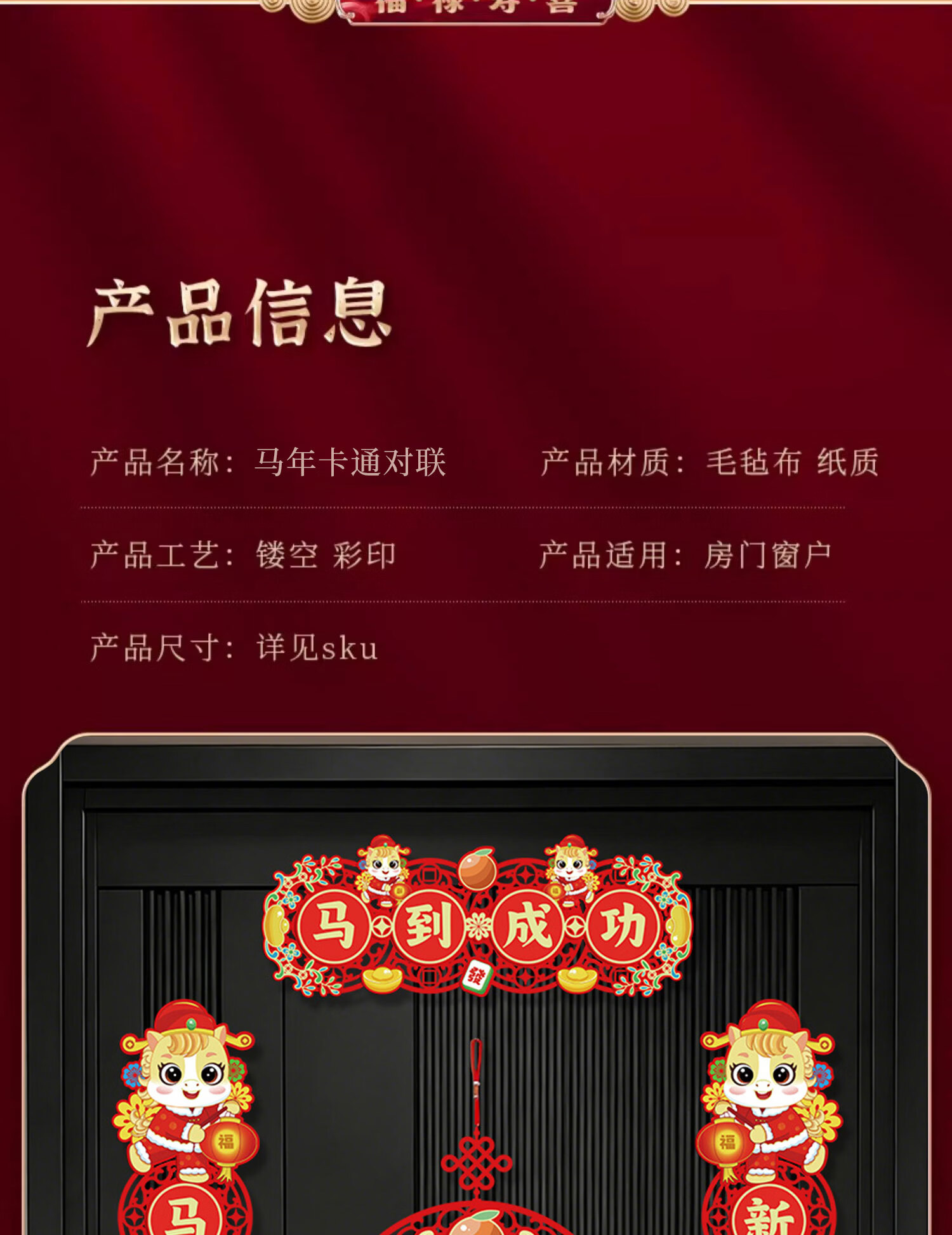 鸿运礼马年新款磁吸对联2026春联对联元旦新年装饰春节过年门贴大门装饰 【马到成功】-新年对联套装+挂件