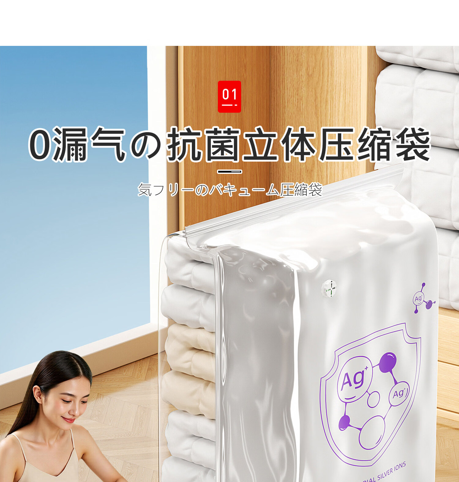 吱凡日本羽绒服专用收纳袋立体真空压缩袋衣服被子抗菌袋棉被加厚 【带泵-9件套】特大立体*2+中立体*【热卖爆款】