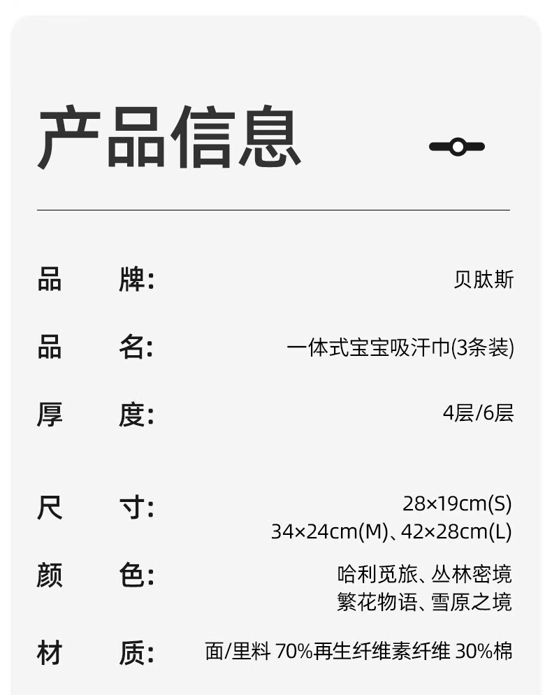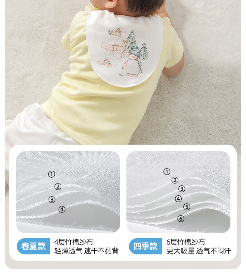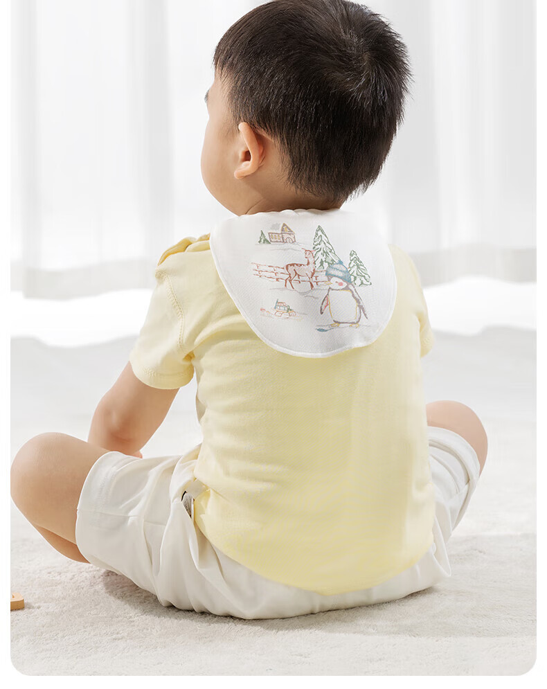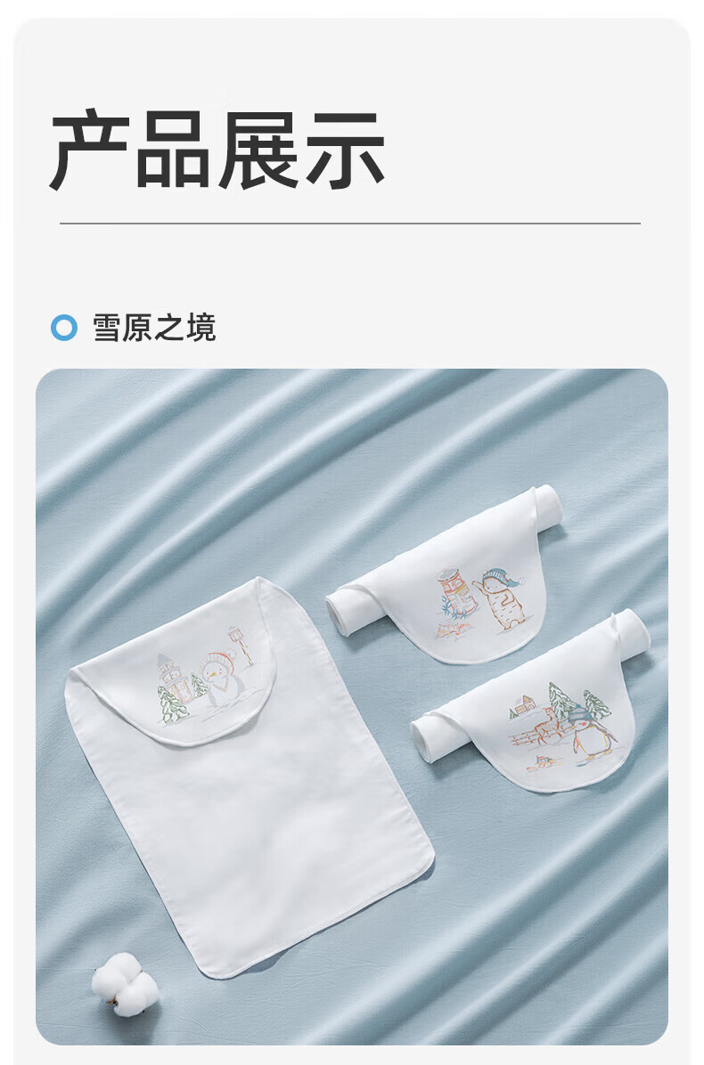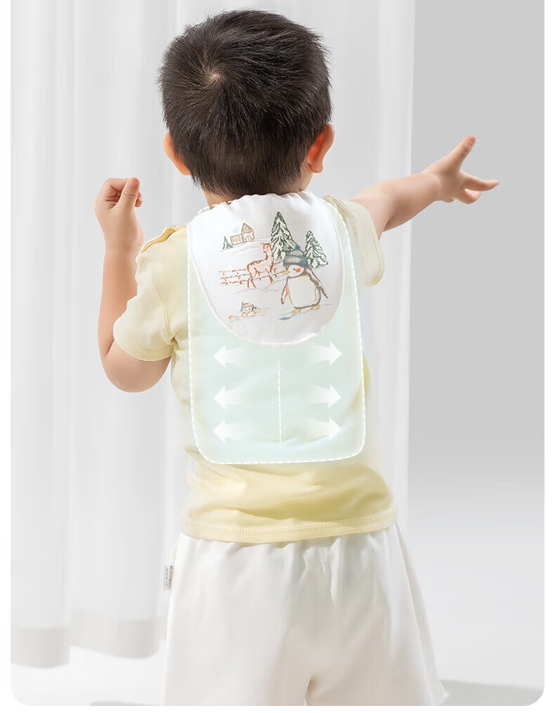 贝肽斯隔汗巾纯棉a类婴幼儿宝宝吸汗巾大号儿童幼儿园专用垫背巾汗巾 雪原之境 3条装 【轻薄4层-导湿排汗】 S码【28*19cm】建议0-1岁