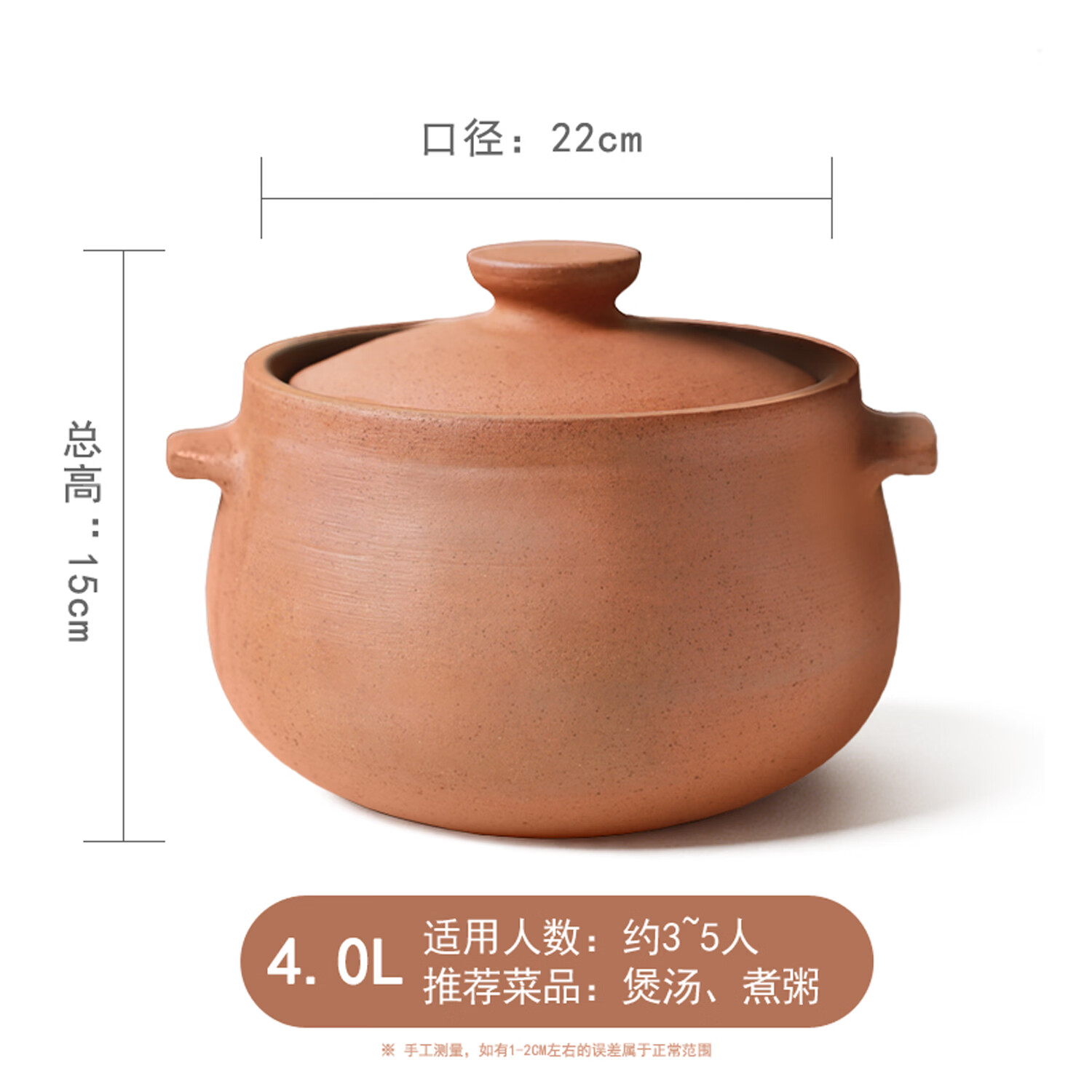 雅城荥窑荥经砂锅煲汤家用炖汤砂锅汤煲燃气灶无炖肉瓦煲汤锅砂锅煲3-5人 无釉健康锅+开锅 6L