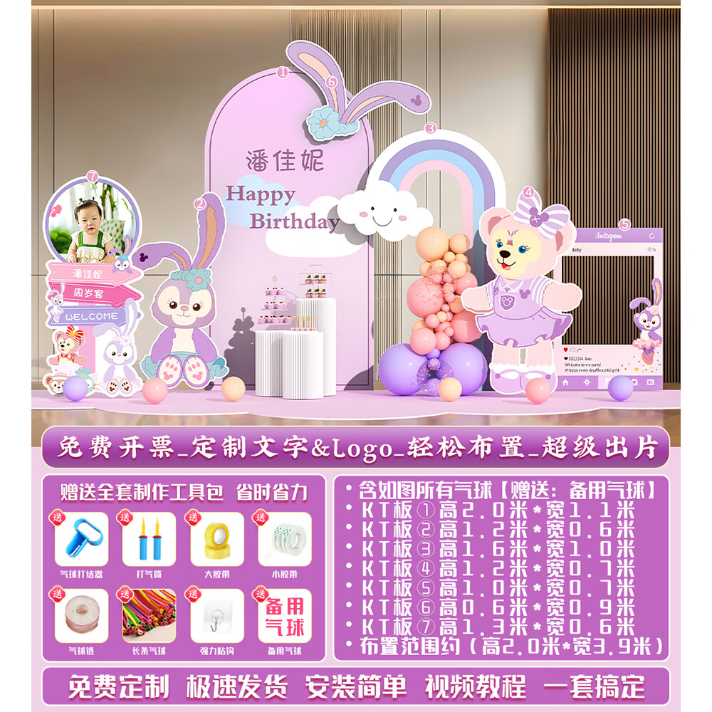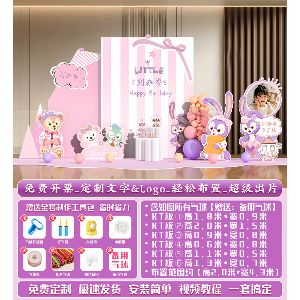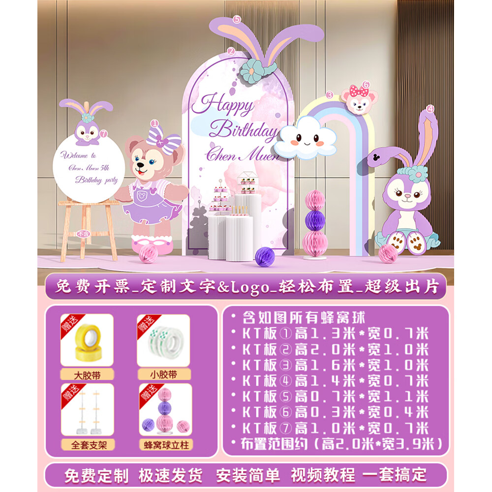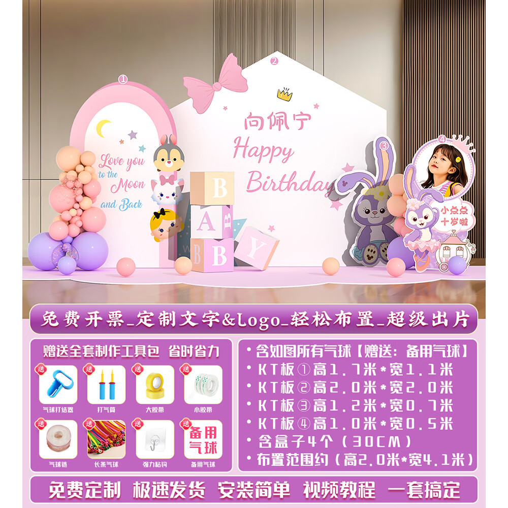 玺飞星黛露玲娜贝儿周岁生日场景布置装饰小公主仪式感女孩背景墙kt板 当日发/01款星黛露背景墙