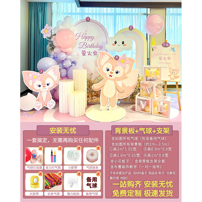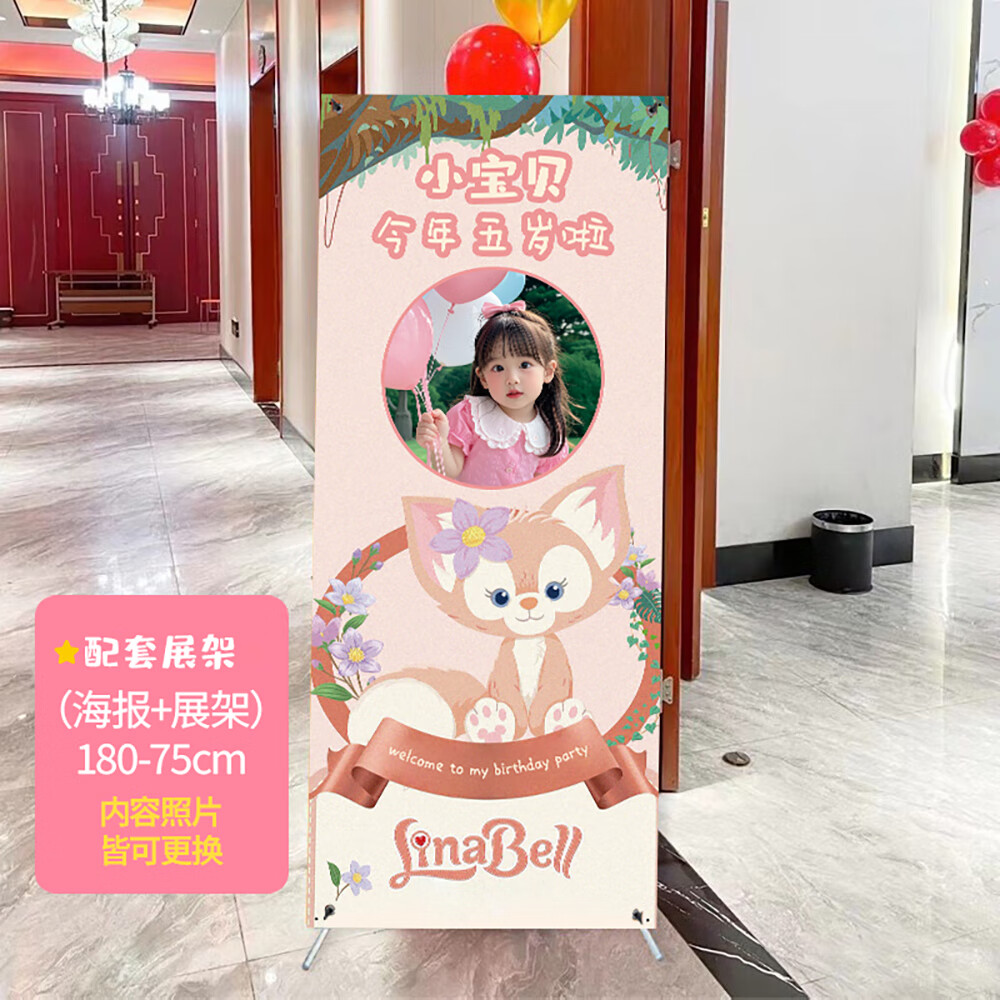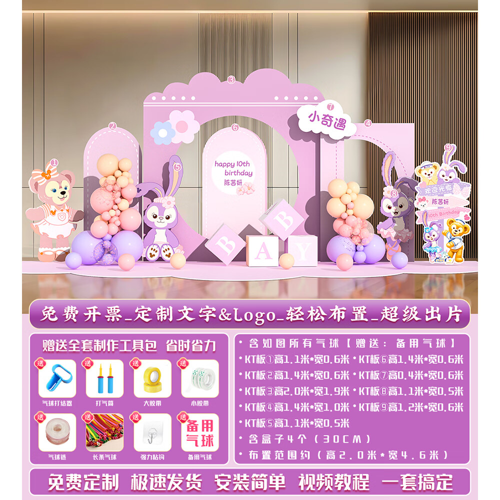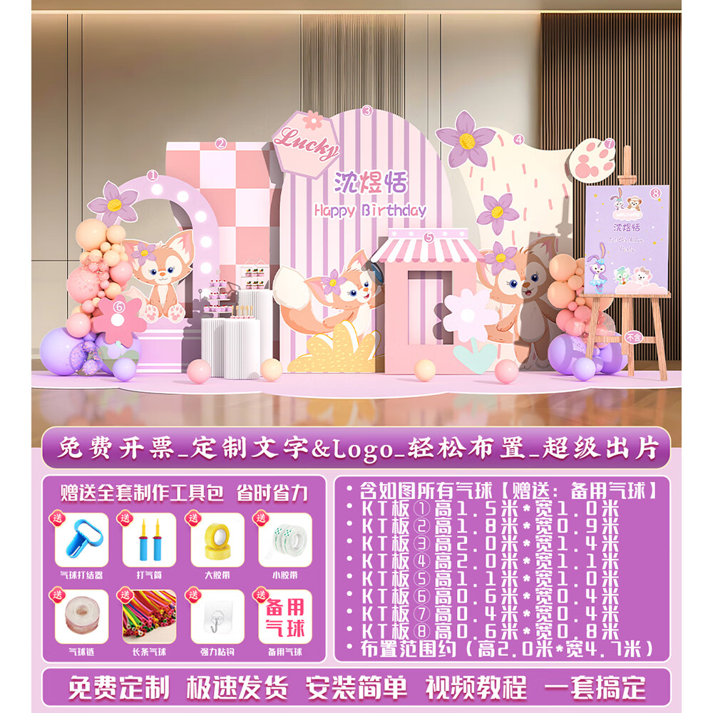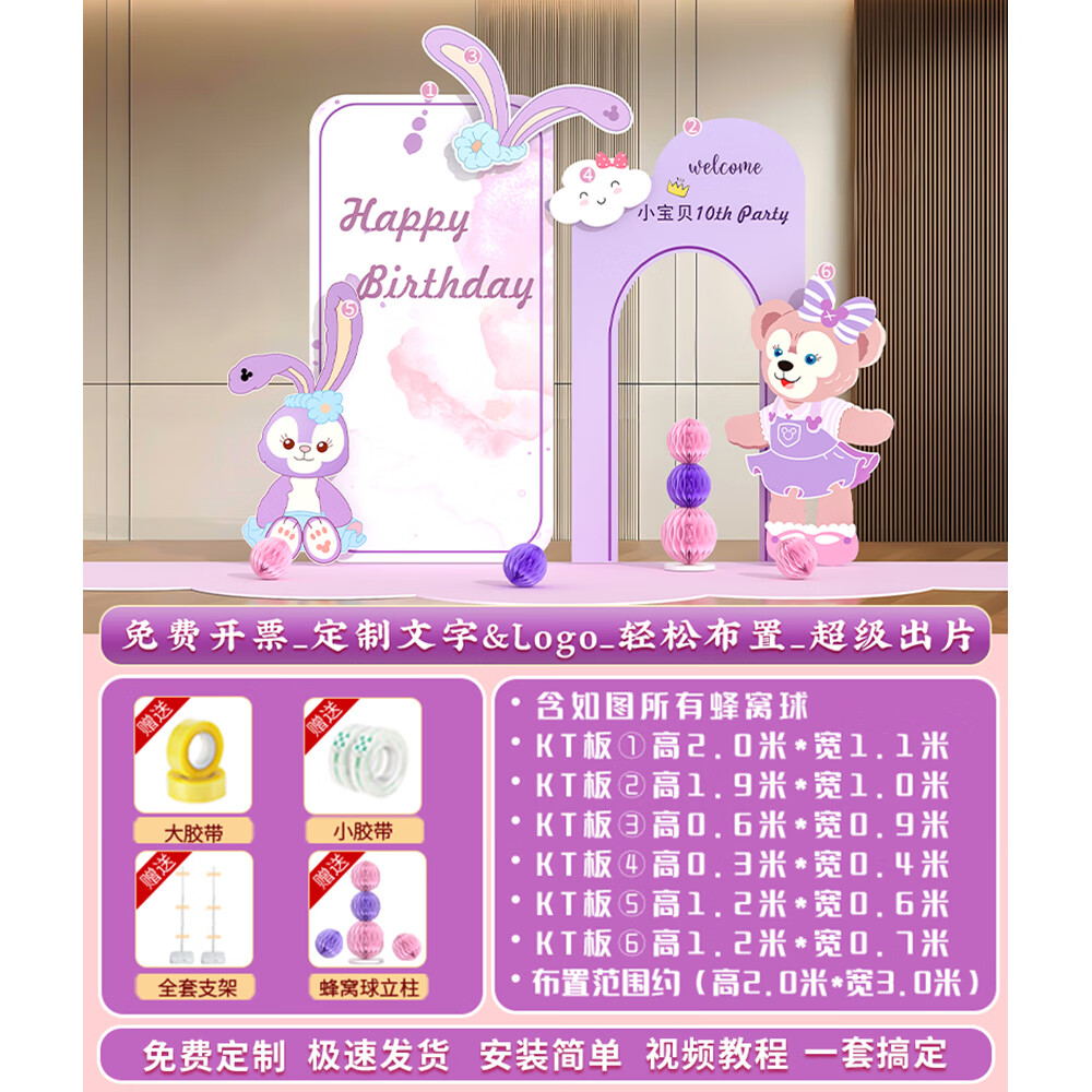 玺飞星黛露玲娜贝儿周岁生日场景布置装饰小公主仪式感女孩背景墙kt板 当日发/01款星黛露背景墙
