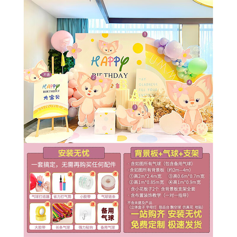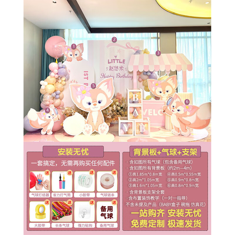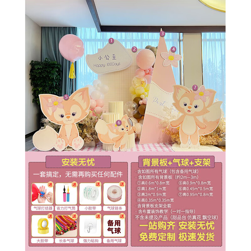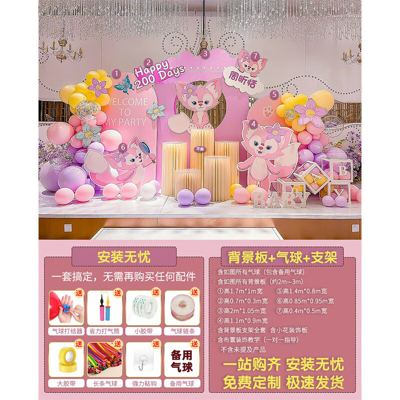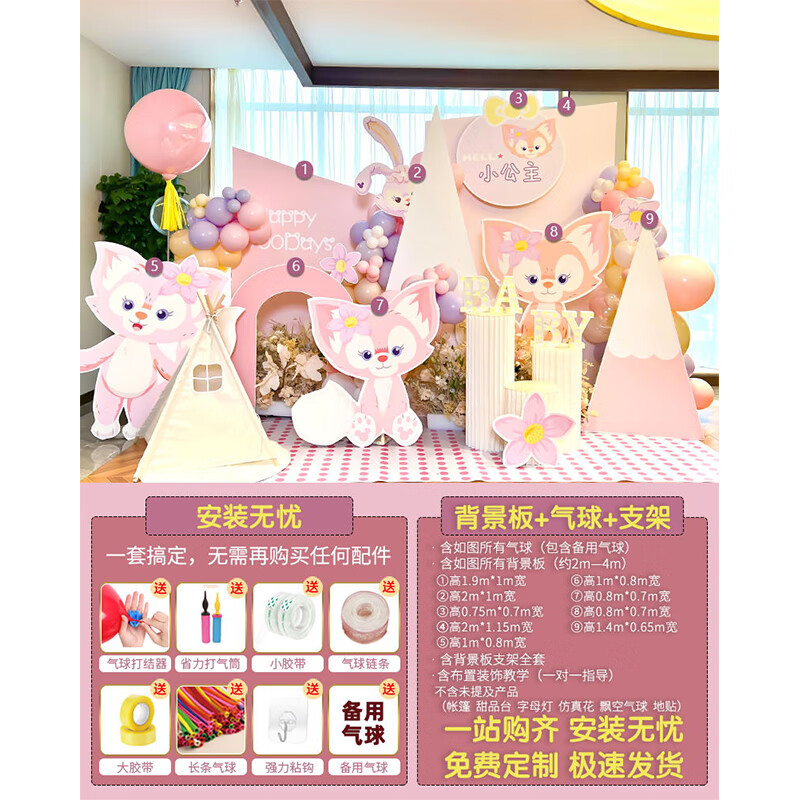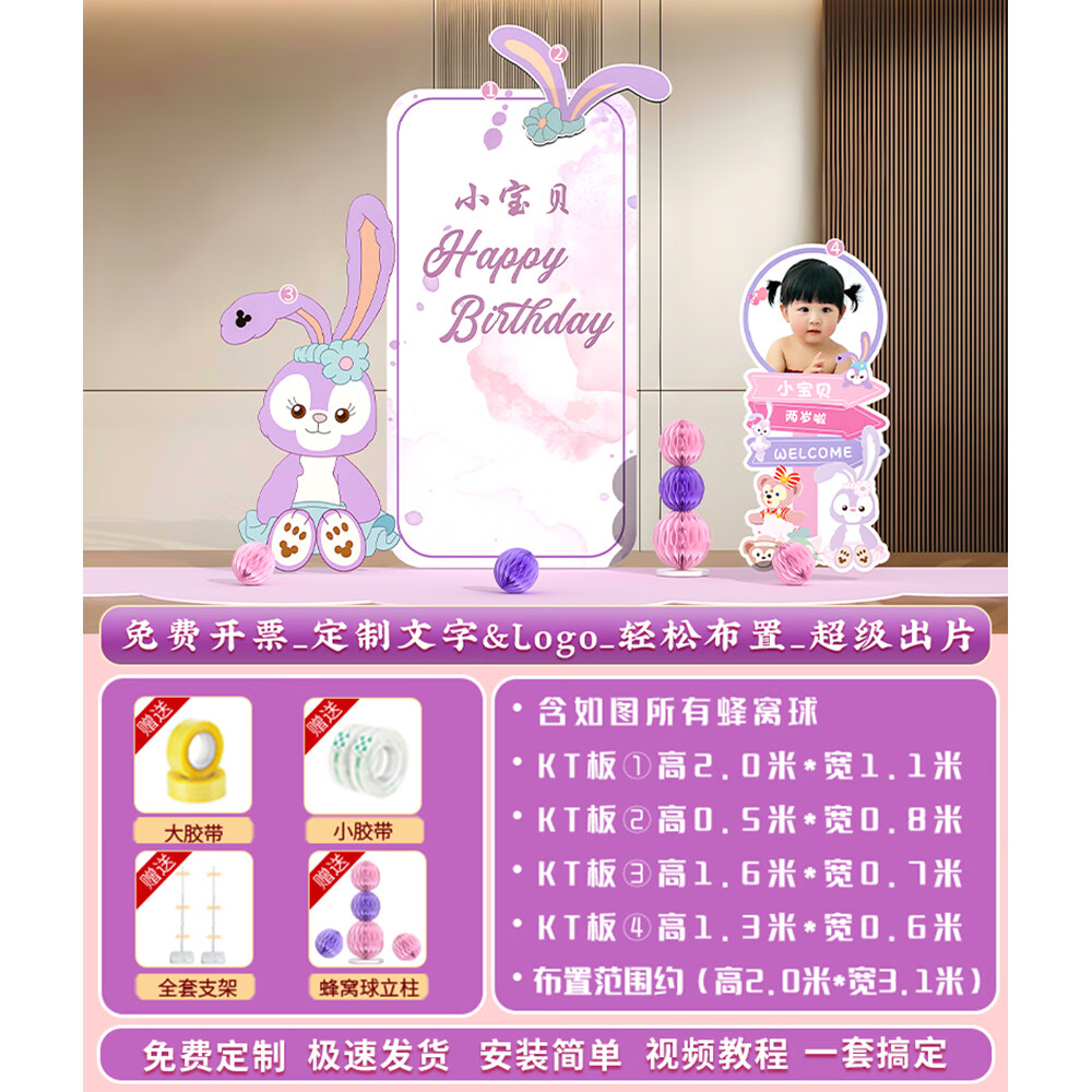 玺飞星黛露玲娜贝儿周岁生日场景布置装饰小公主仪式感女孩背景墙kt板 当日发/01款星黛露背景墙