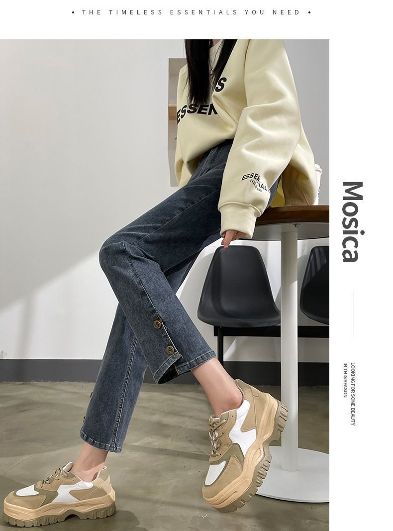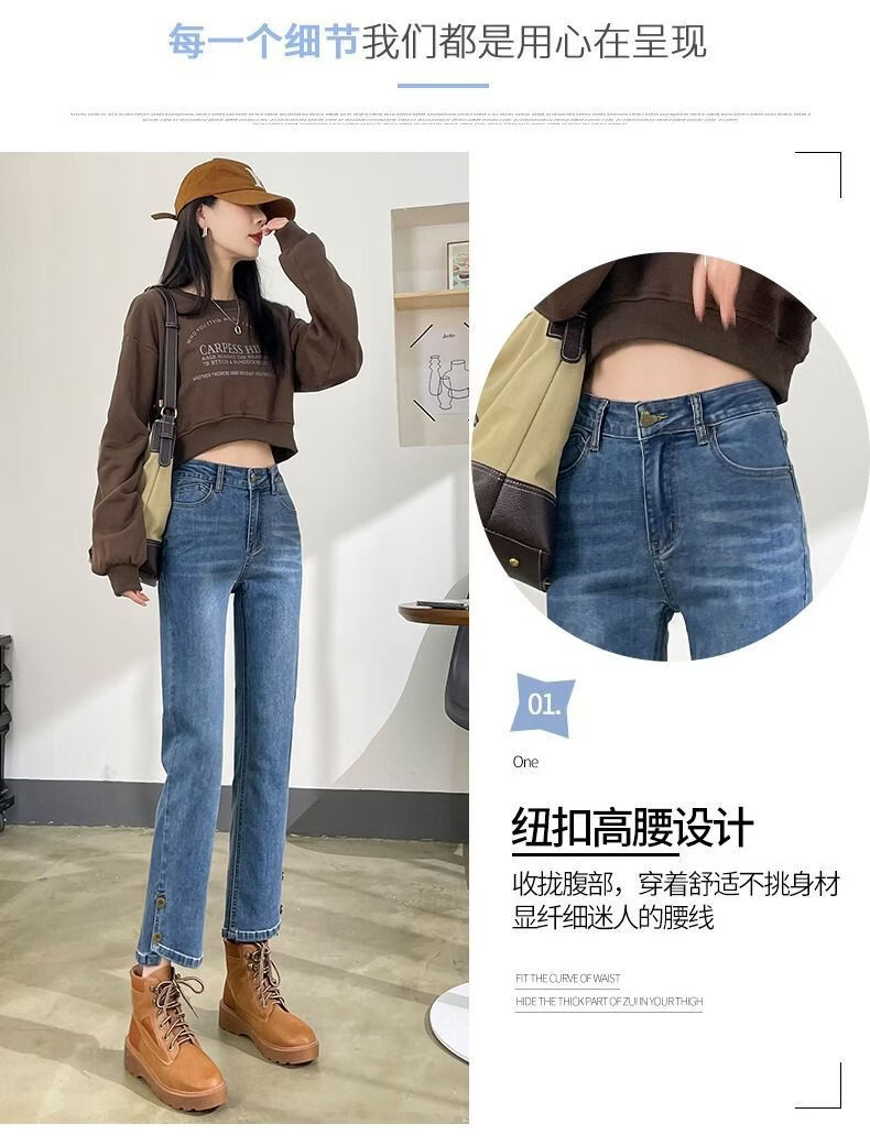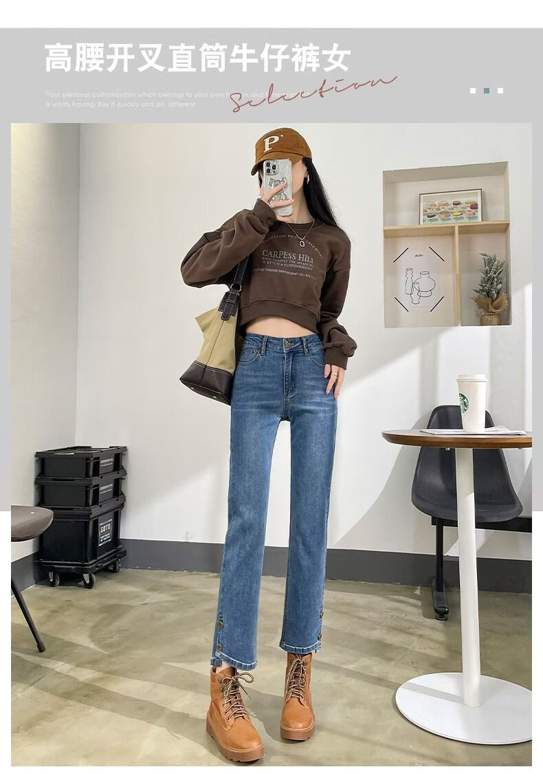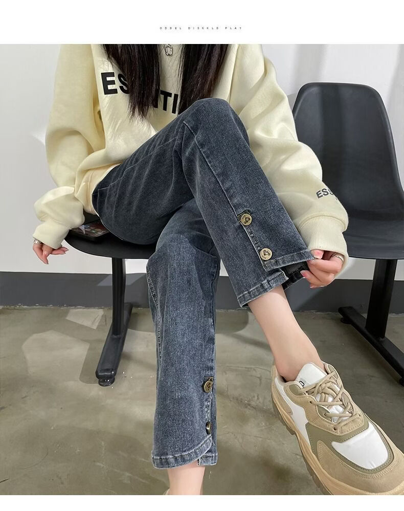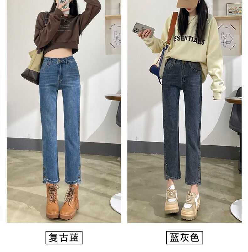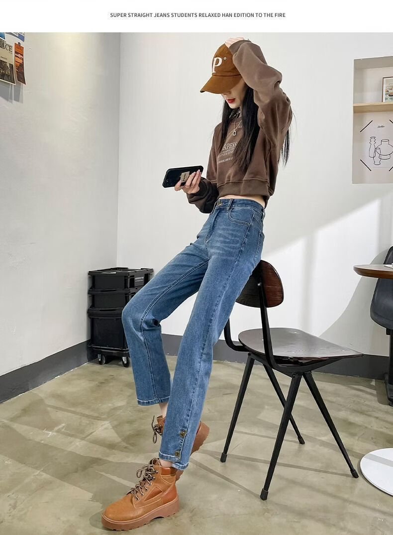 燠阳高腰开叉直筒牛仔裤女夏季薄款2025年新款宽松显瘦小个子烟管裤子 2044复古蓝 M 【93-105斤】