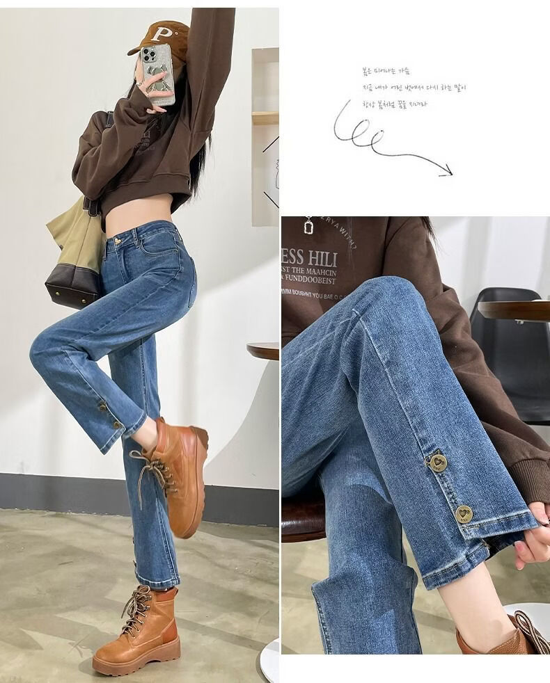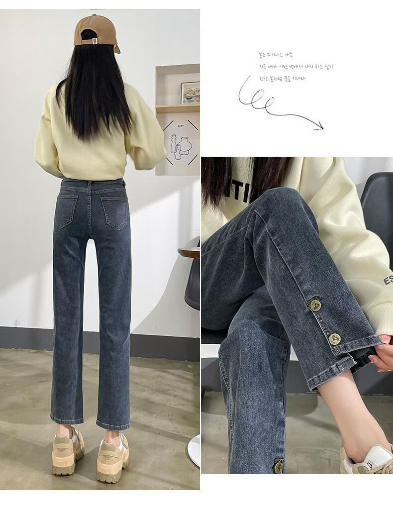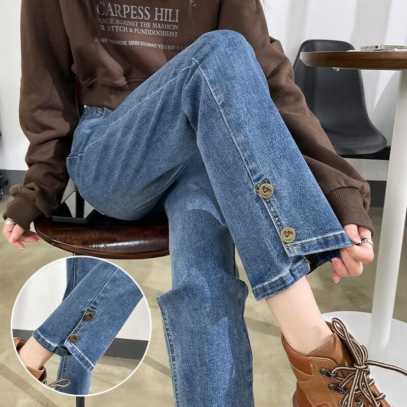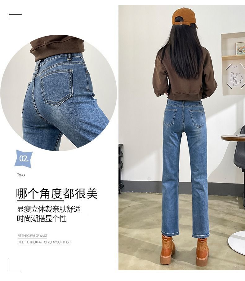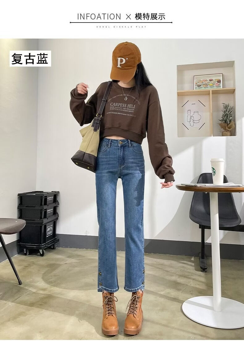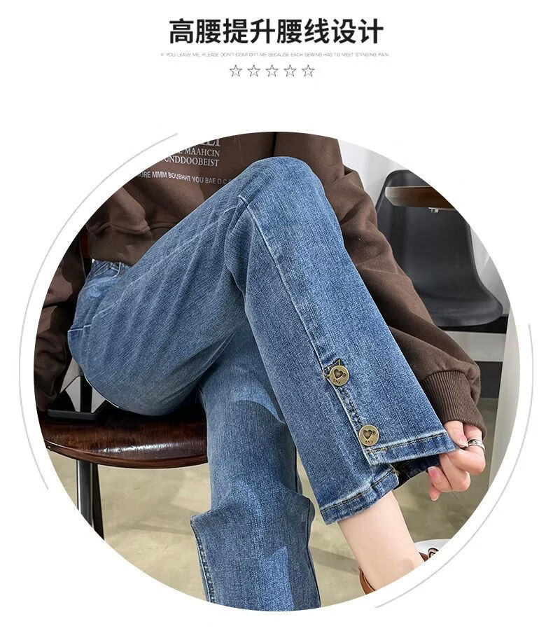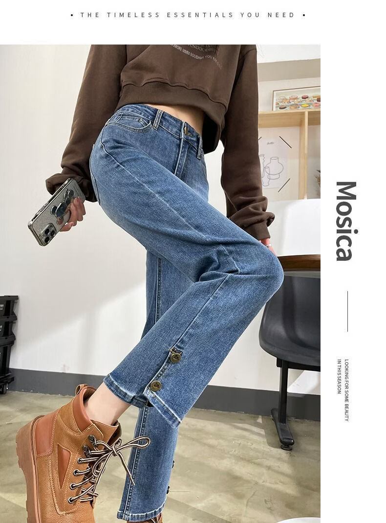燠阳高腰开叉直筒牛仔裤女夏季薄款2025年新款宽松显瘦小个子烟管裤子 2044复古蓝 M 【93-105斤】