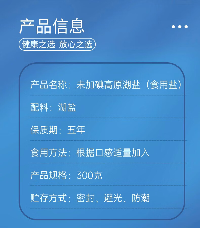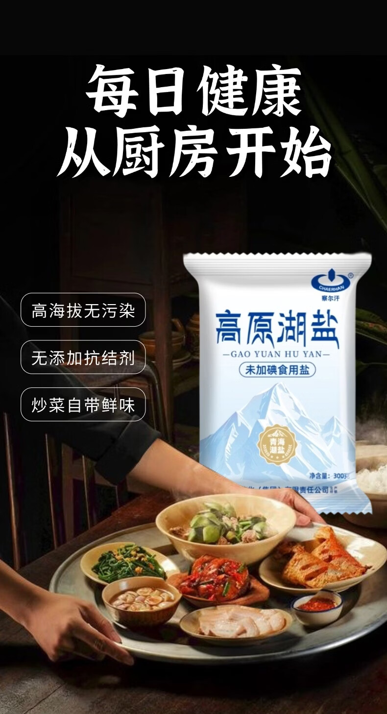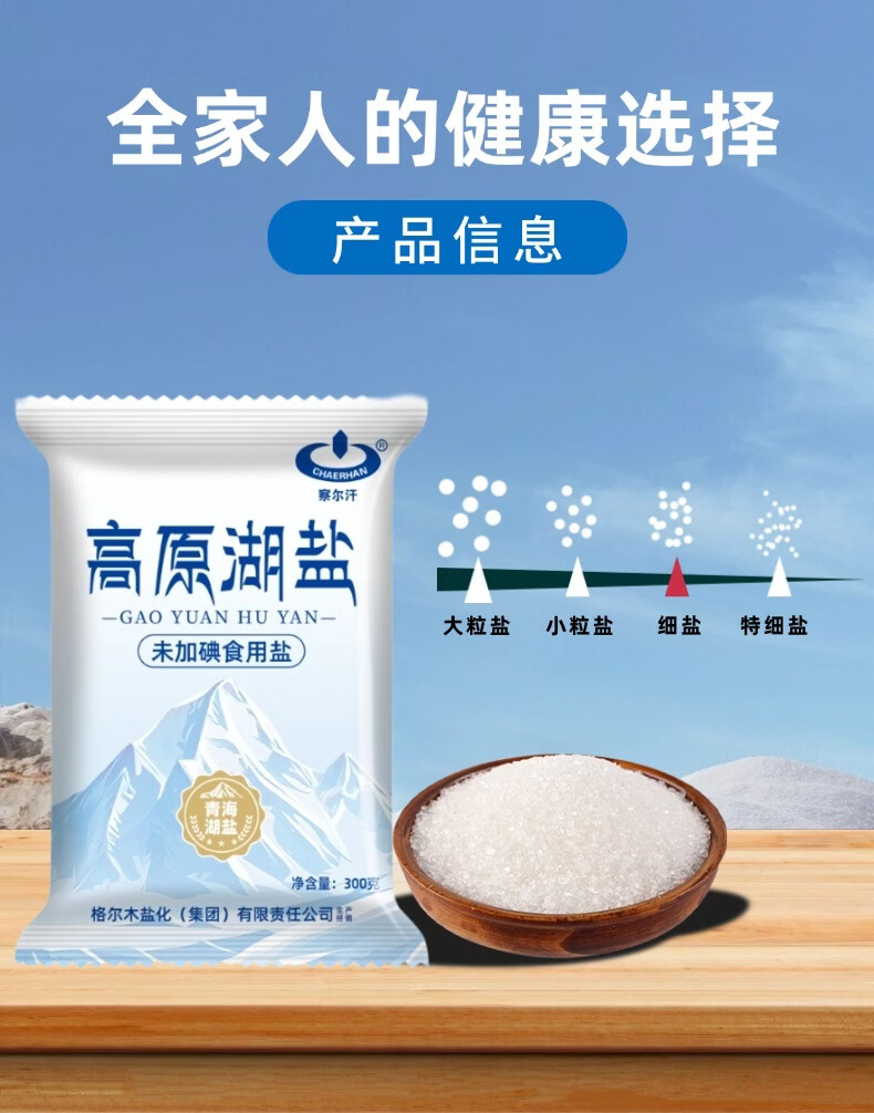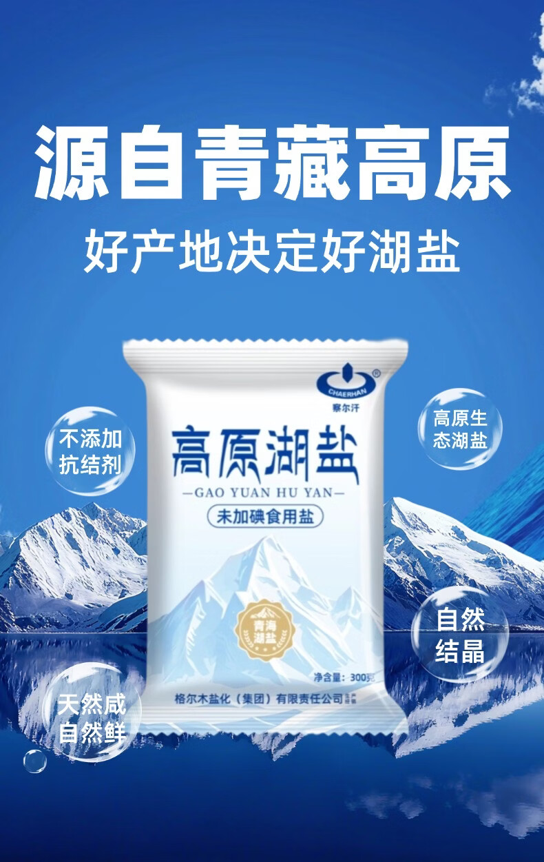 察尔汗青藏高原湖盐300g未加碘青海天然湖盐未添加抗结剂食用盐 青藏高原湖盐300gX5袋