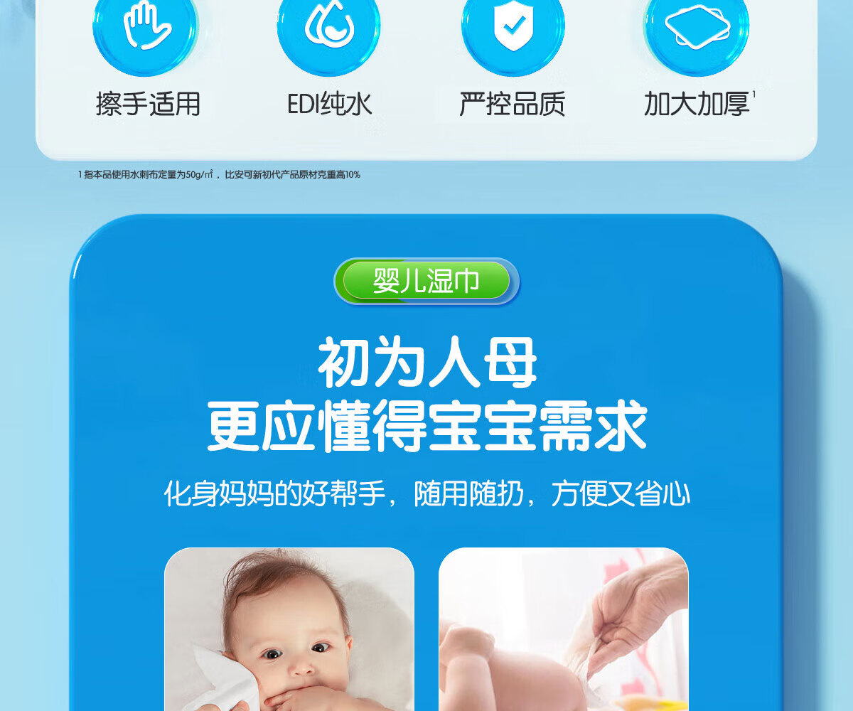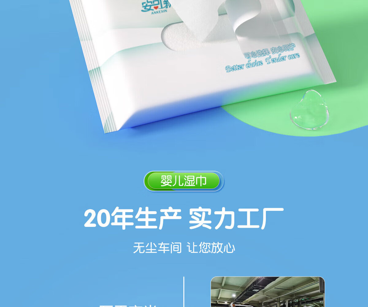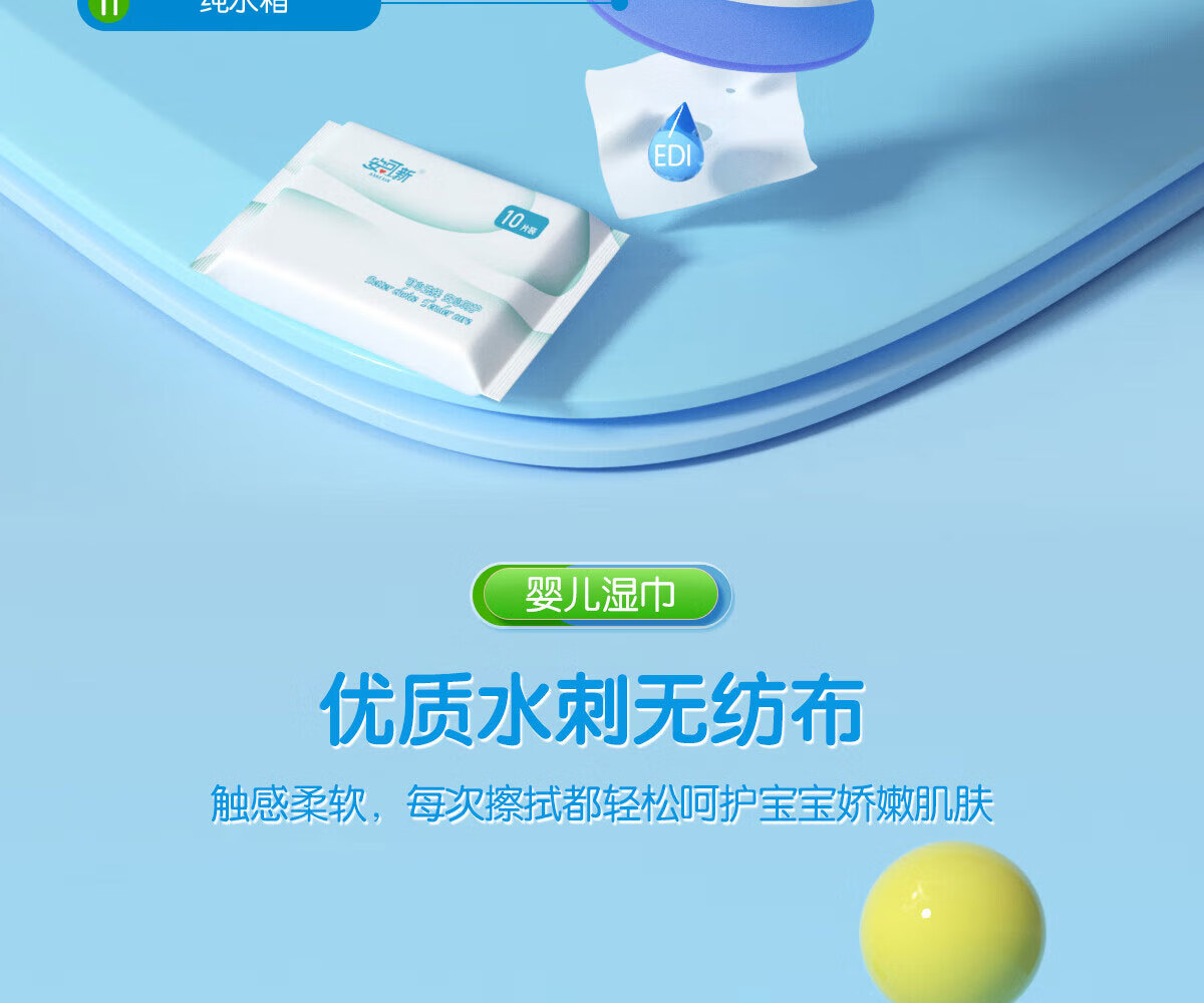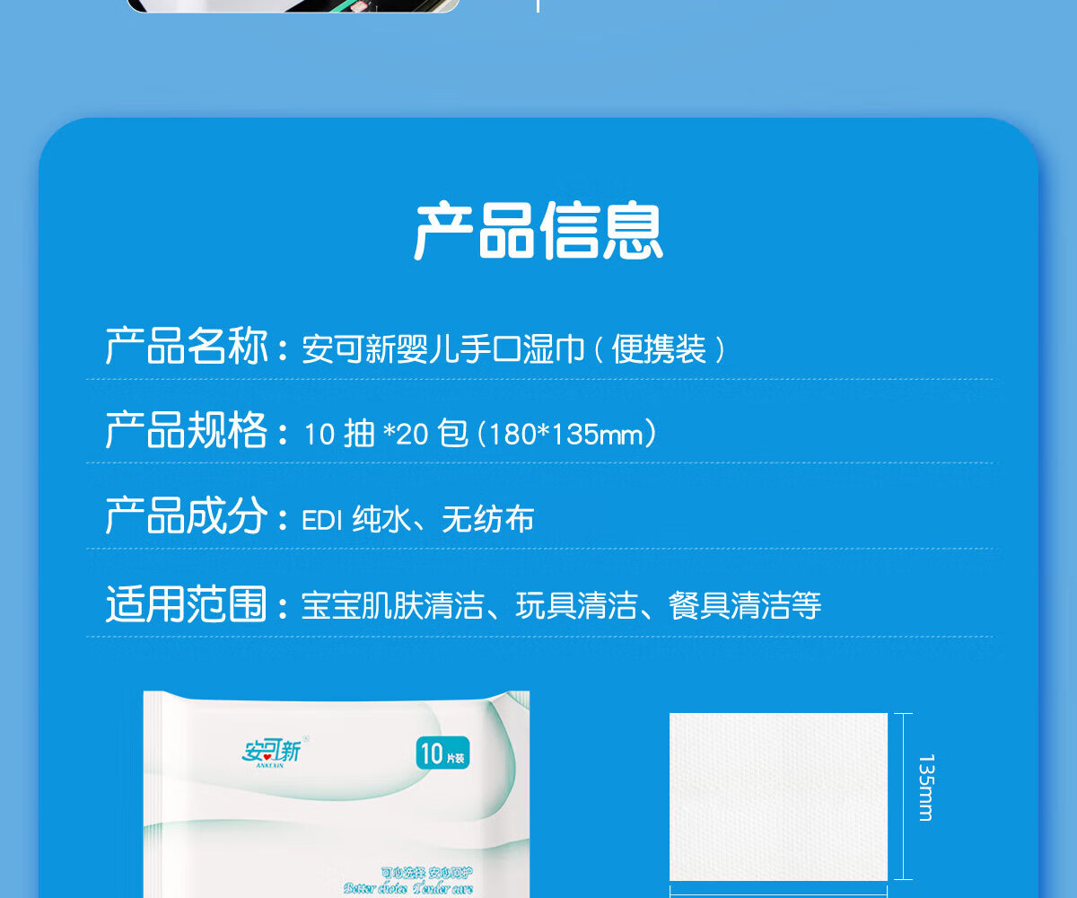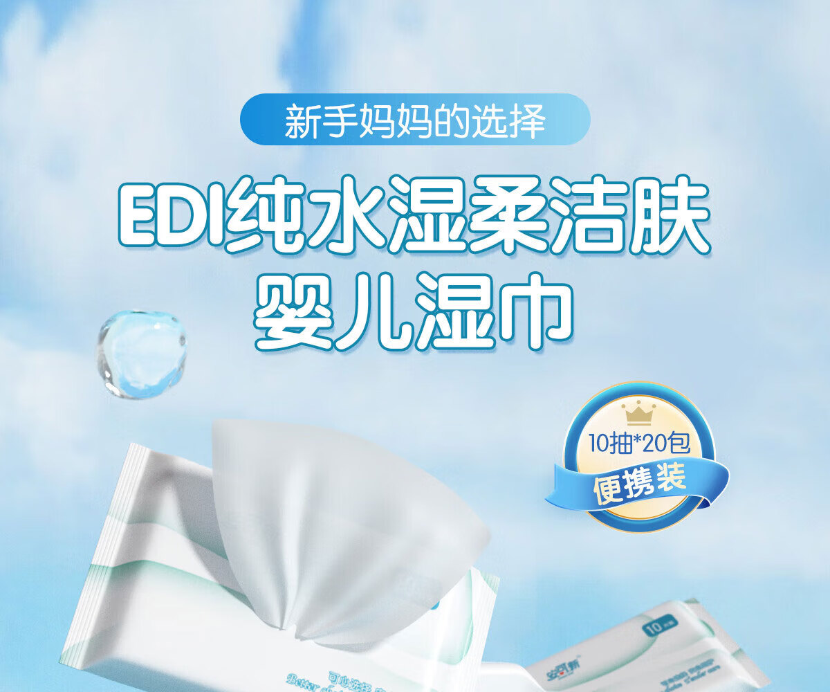 安可新婴儿湿巾手口纯水湿纸巾10片*20包宝宝擦脸小包上学出行便捷装