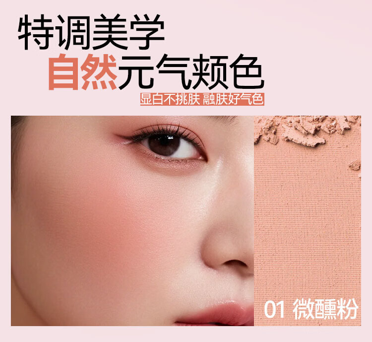 屈臣氏卞卡羽感柔雾腮红 01微醺粉 单色 6g