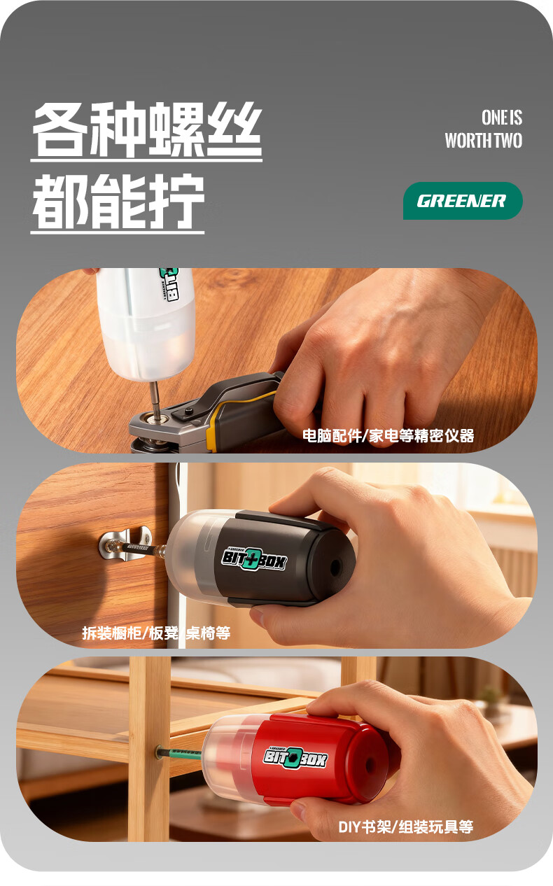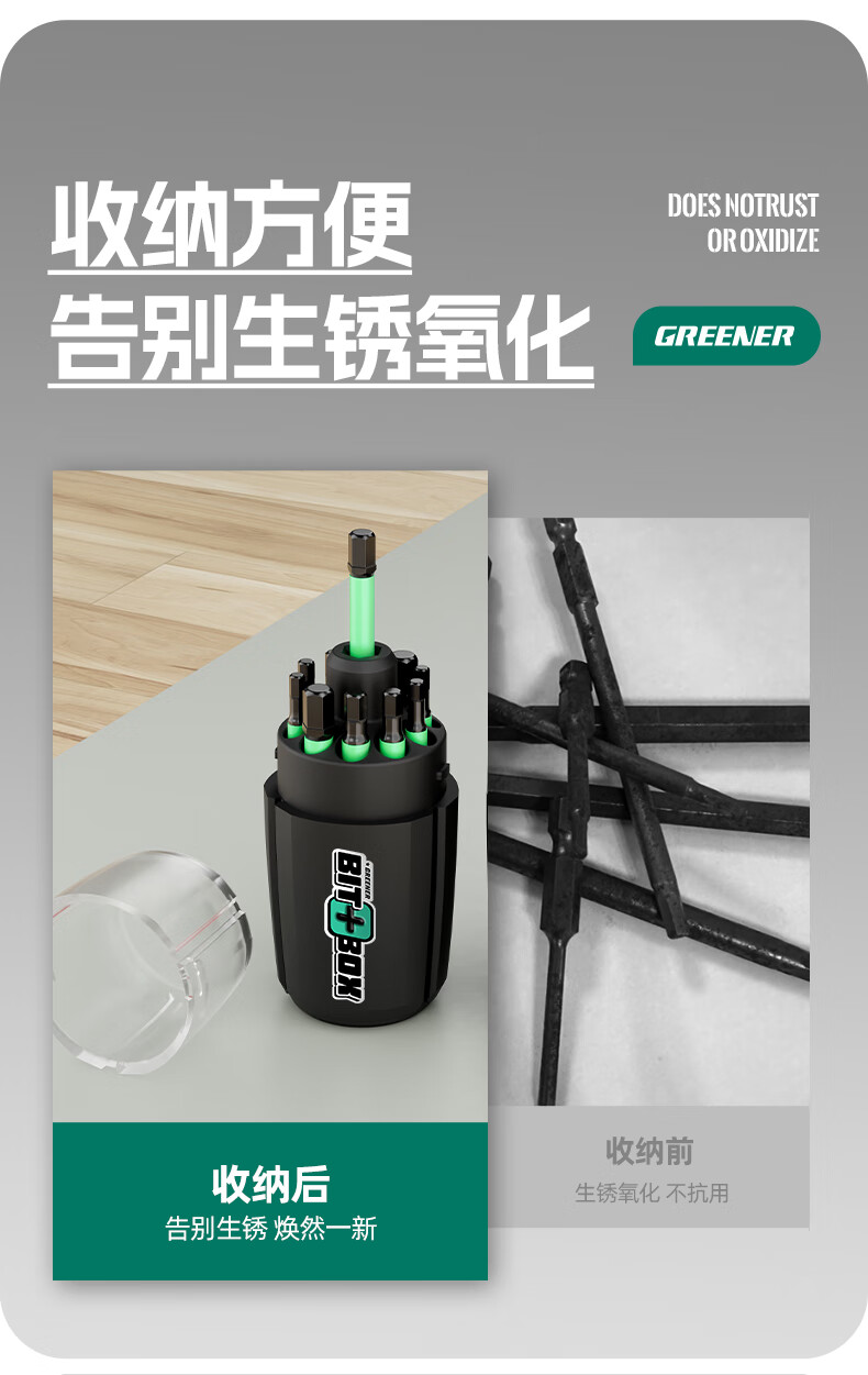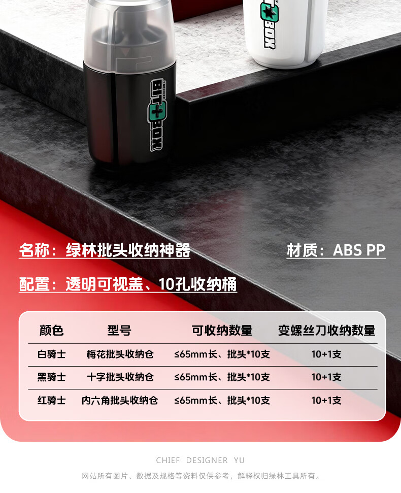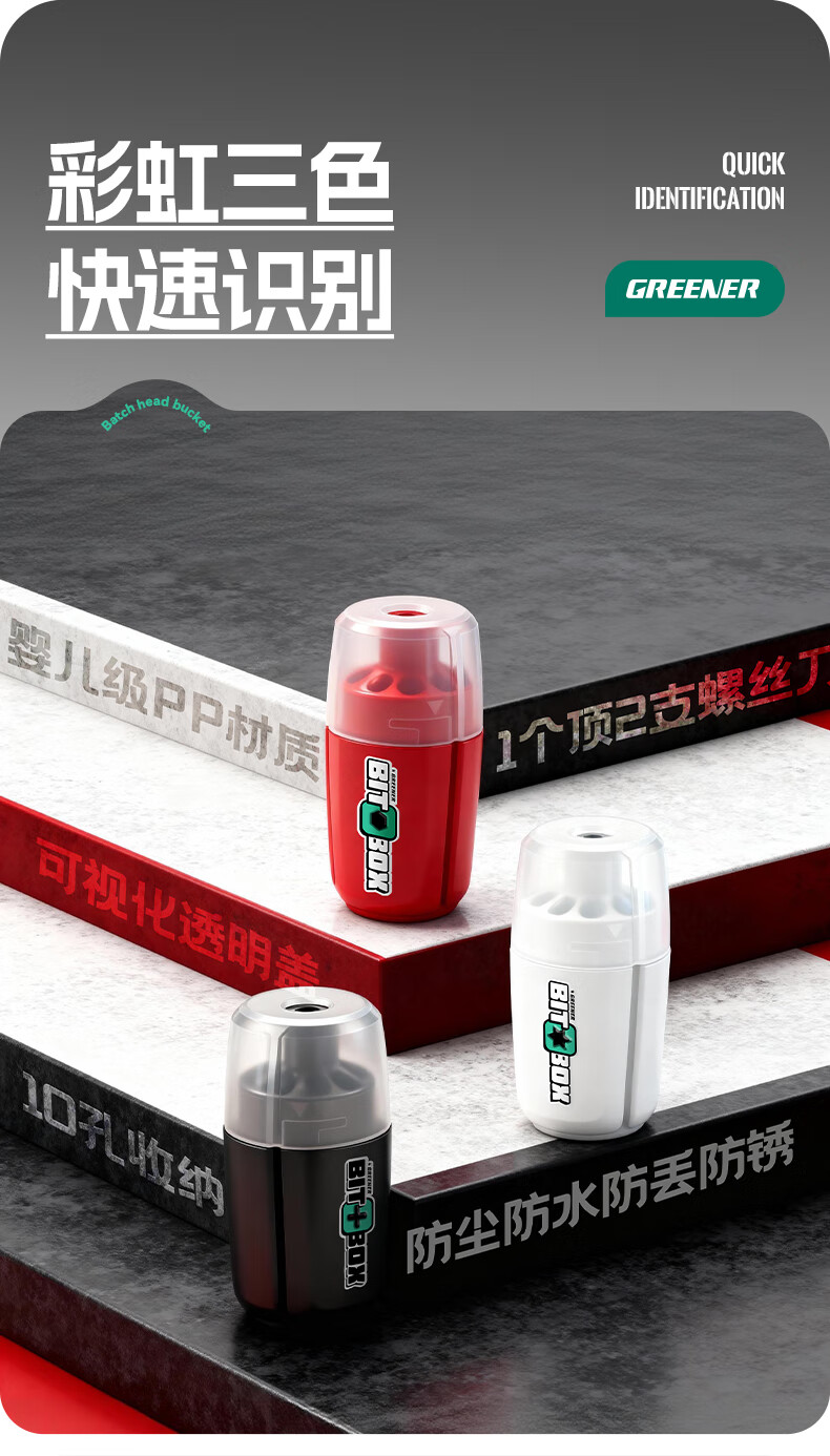 GREENER批头收纳桶彩虹三色收纳神器收纳盒可变螺丝刀十字内六角梅花 1个【黑骑士-十字批头专用】2合1桶型收纳仓