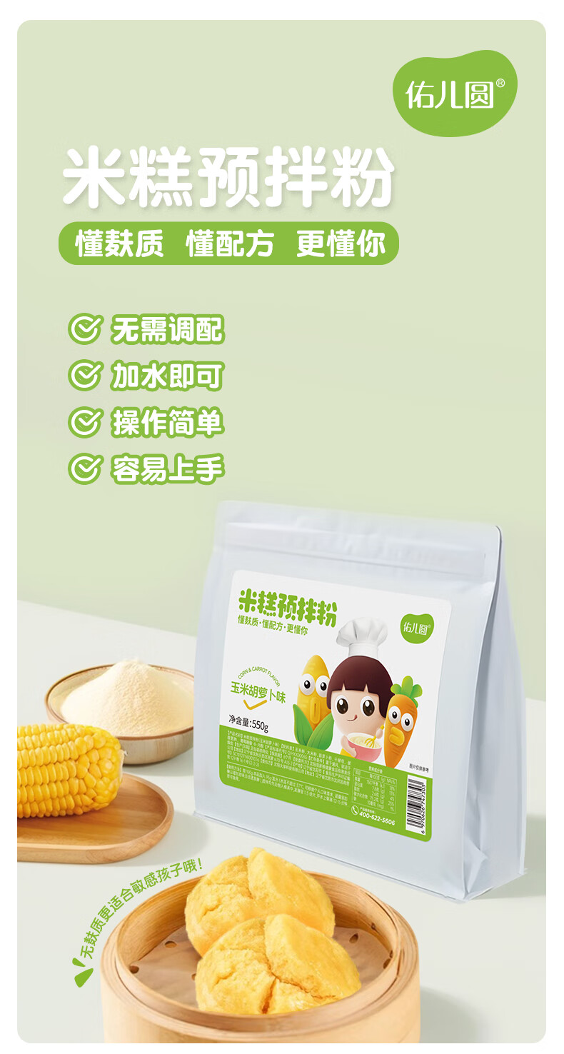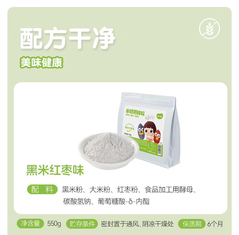 佑儿圆米糕预拌粉家用烘焙550g孩子糕点自发面粉原料 独立无麸质生产线 黑米红枣味