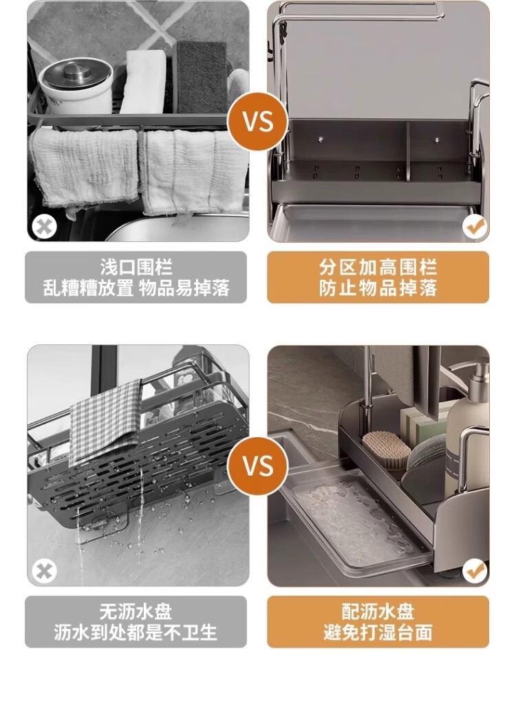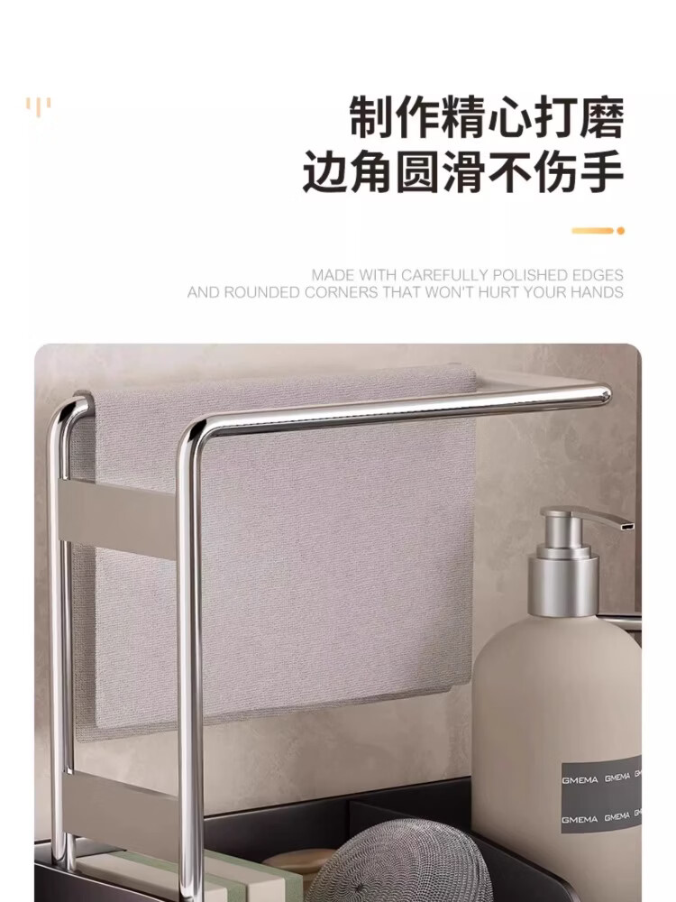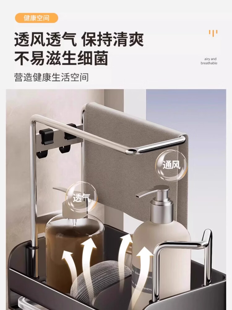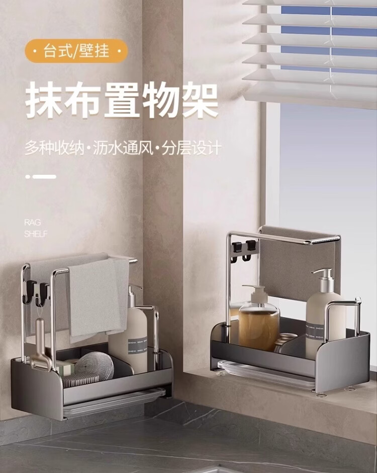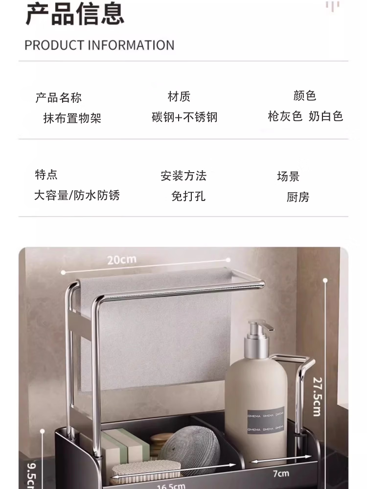 尔思家厨房水槽沥水架洗碗池上的抹布架水龙头多功能收纳架洗碗布放置架 枪灰钣金抹布架*台式