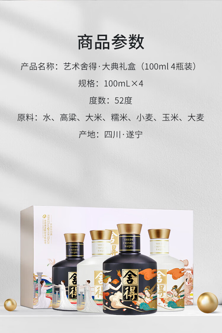 舍得大典版小酒礼盒装 浓香型白酒 52度 100mL 4瓶