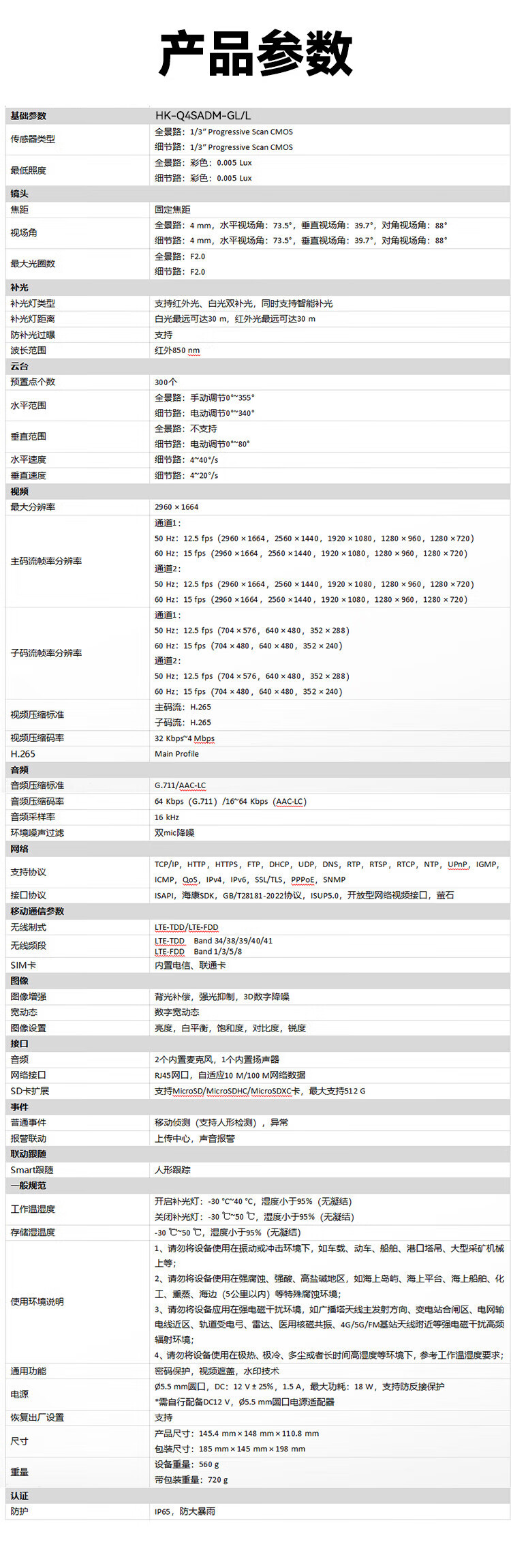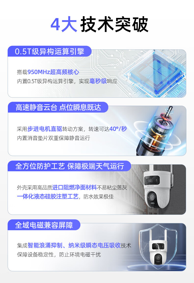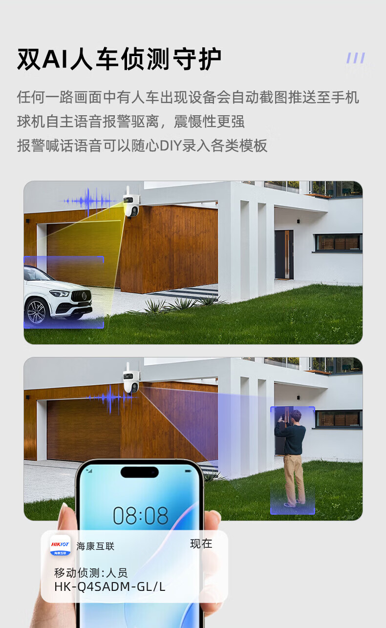 HIKVISION海康威视4g摄像头室户外终身免费充值无限流量1000万双摄农村家用监控器360度无死角夜视全景云台