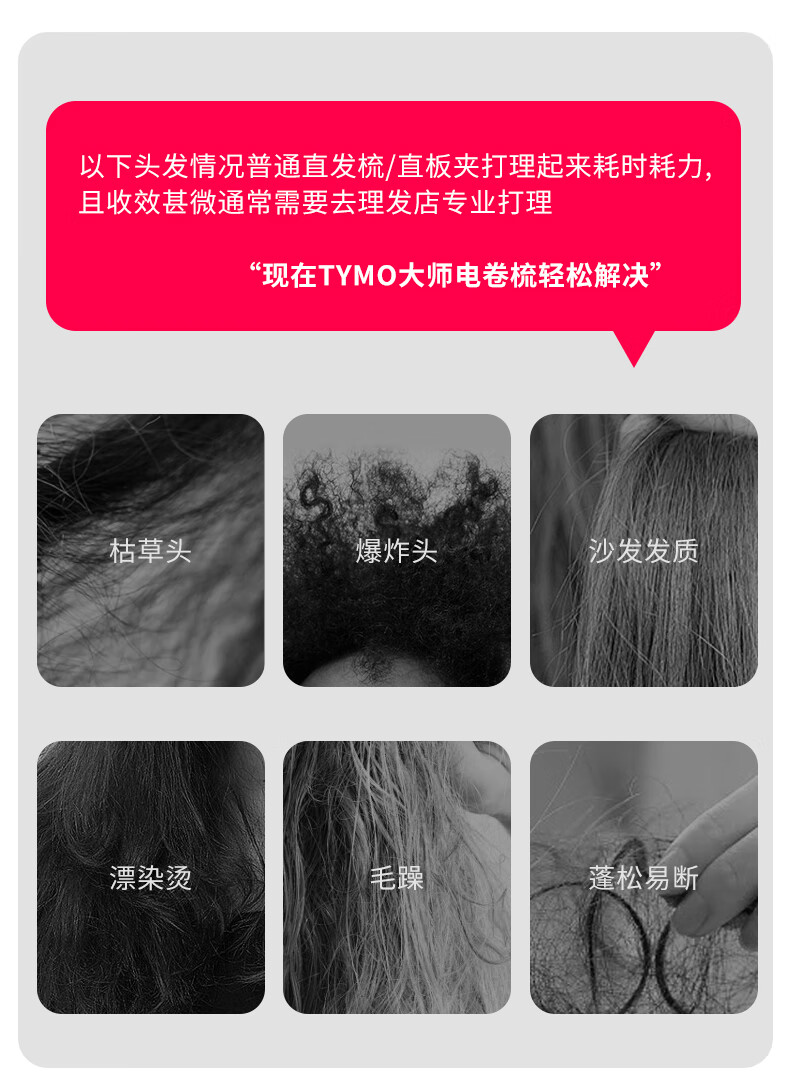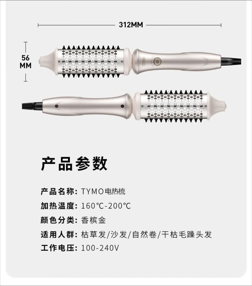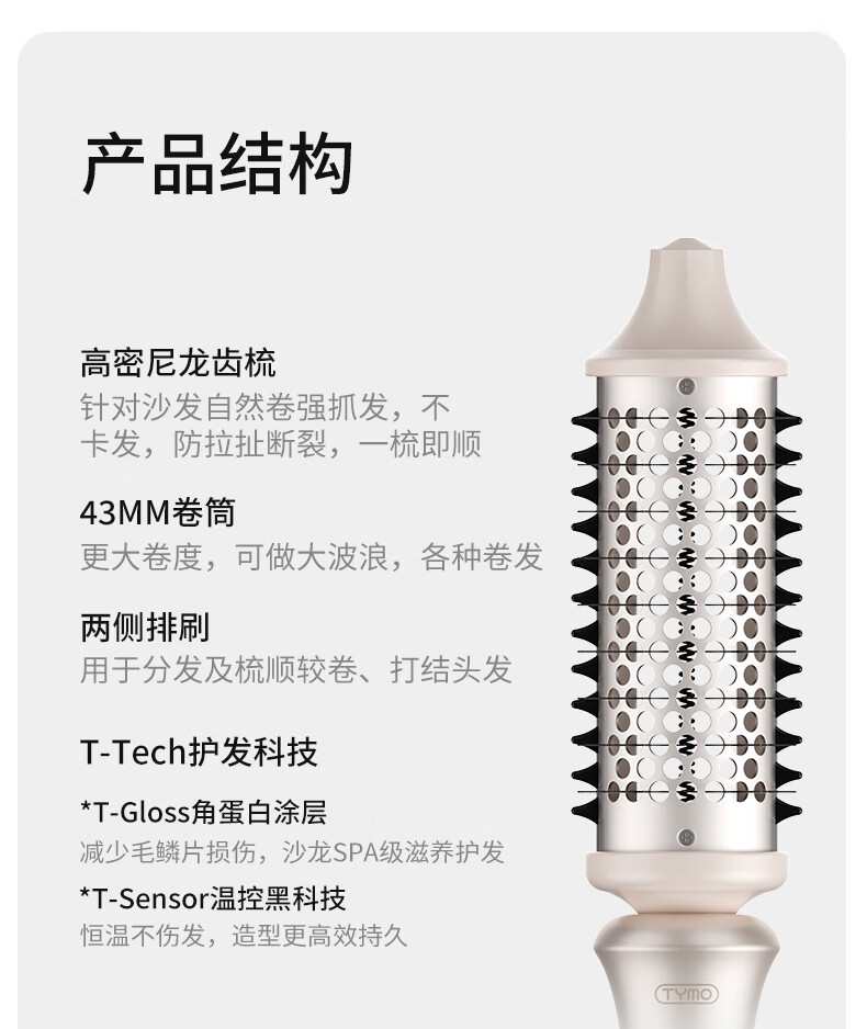 TYMO直发梳大师电卷梳43mm大波浪卷发棒柔顺光泽护发 沙发专用造型梳