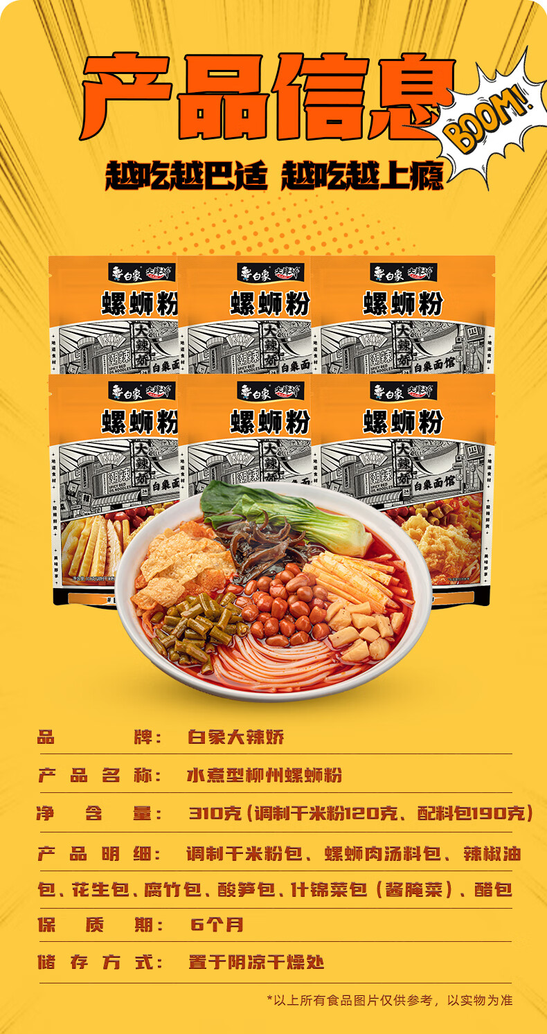 白象 螺蛳粉 广西柳州特产 方便速食米粉米线大辣娇螺蛳粉310g*4袋装