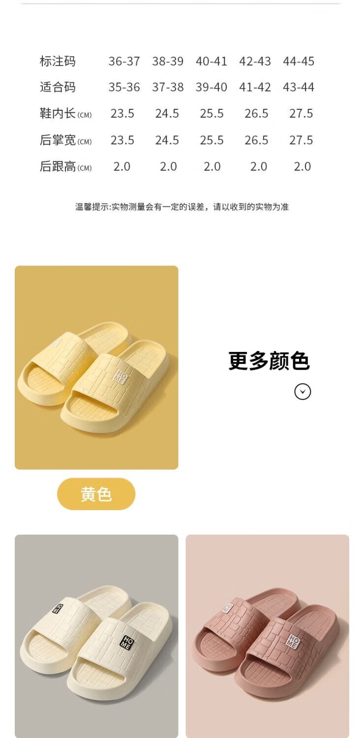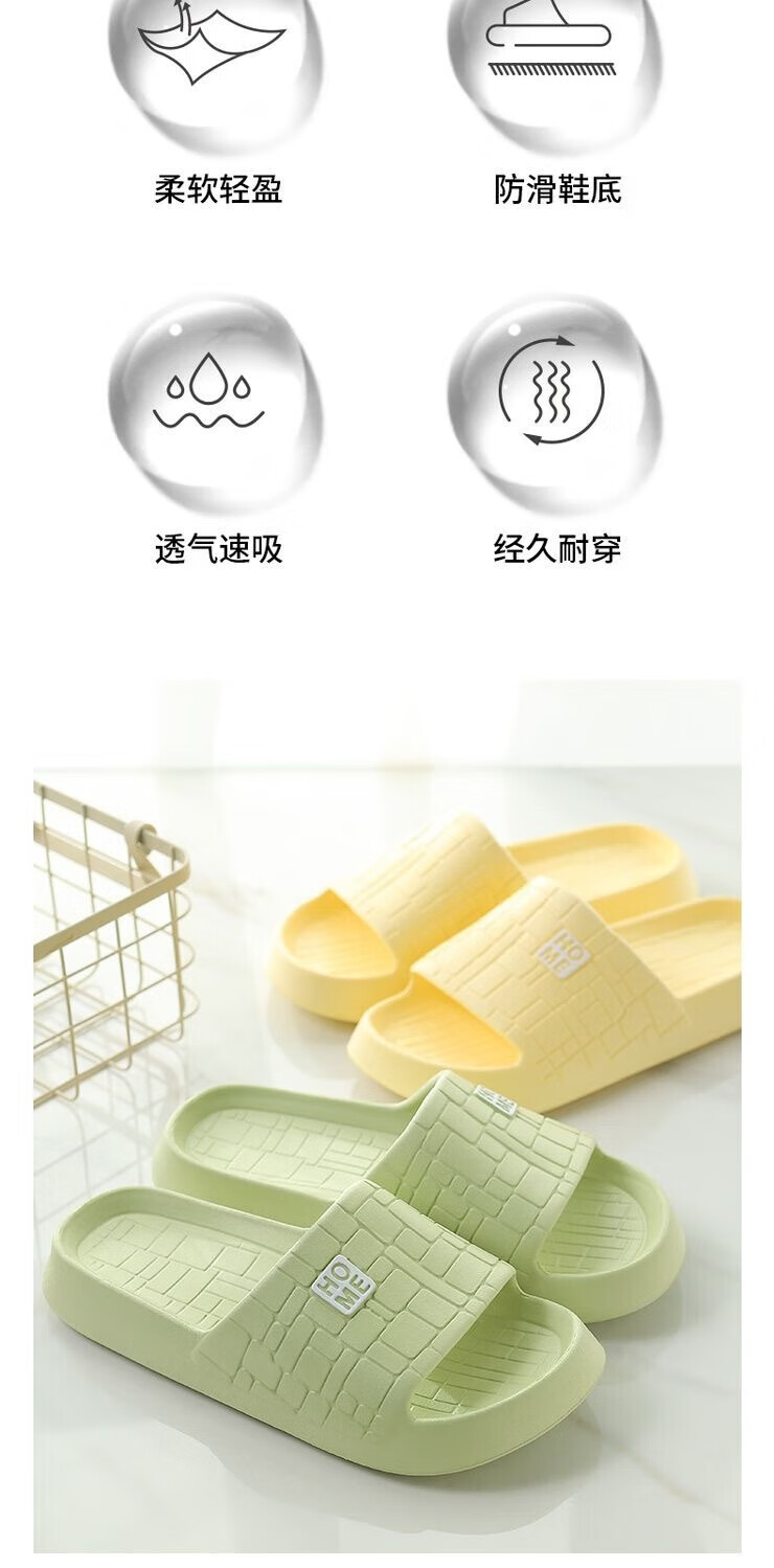 洁丽雅(grace)秋季拖鞋外穿秋天男女情侣居家用室内浴室防滑洗澡凉拖 奶油黄 40-41 【适合39-40脚】
