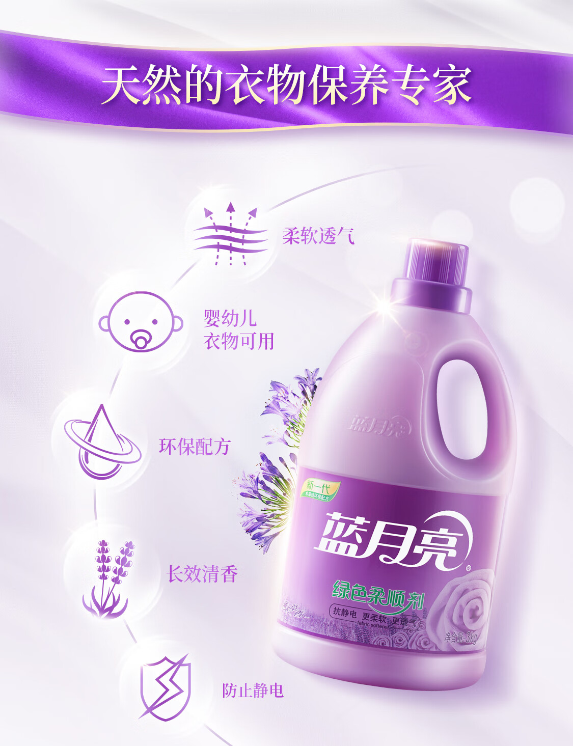 蓝月亮柔顺剂 防静电持久留香衣物护理剂 薰衣草3kg(共6斤)