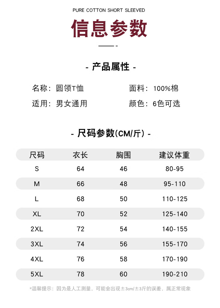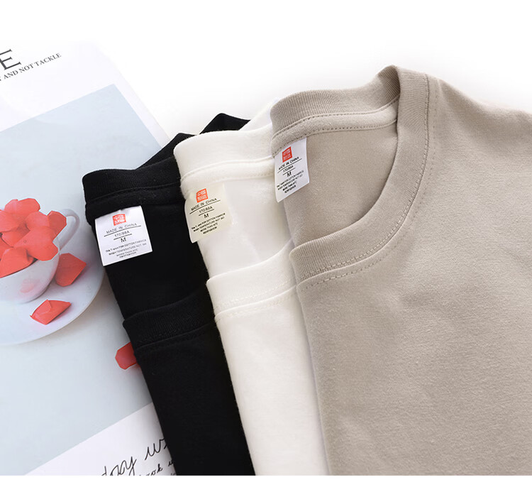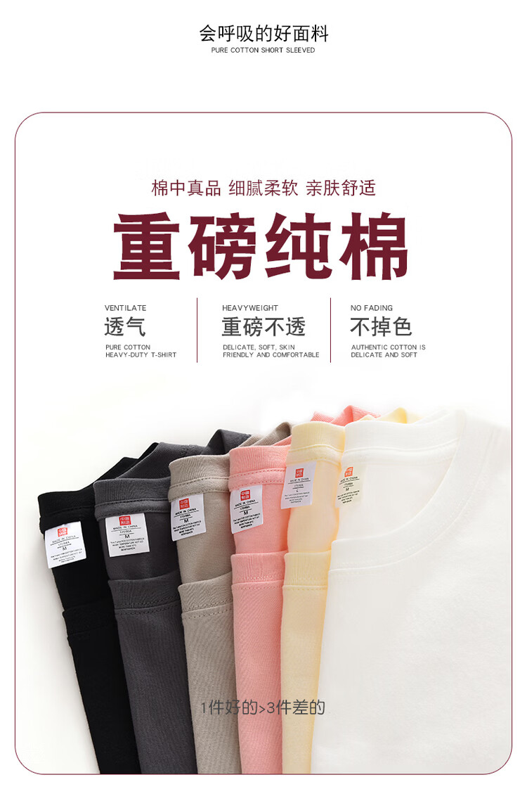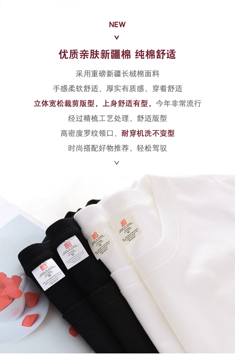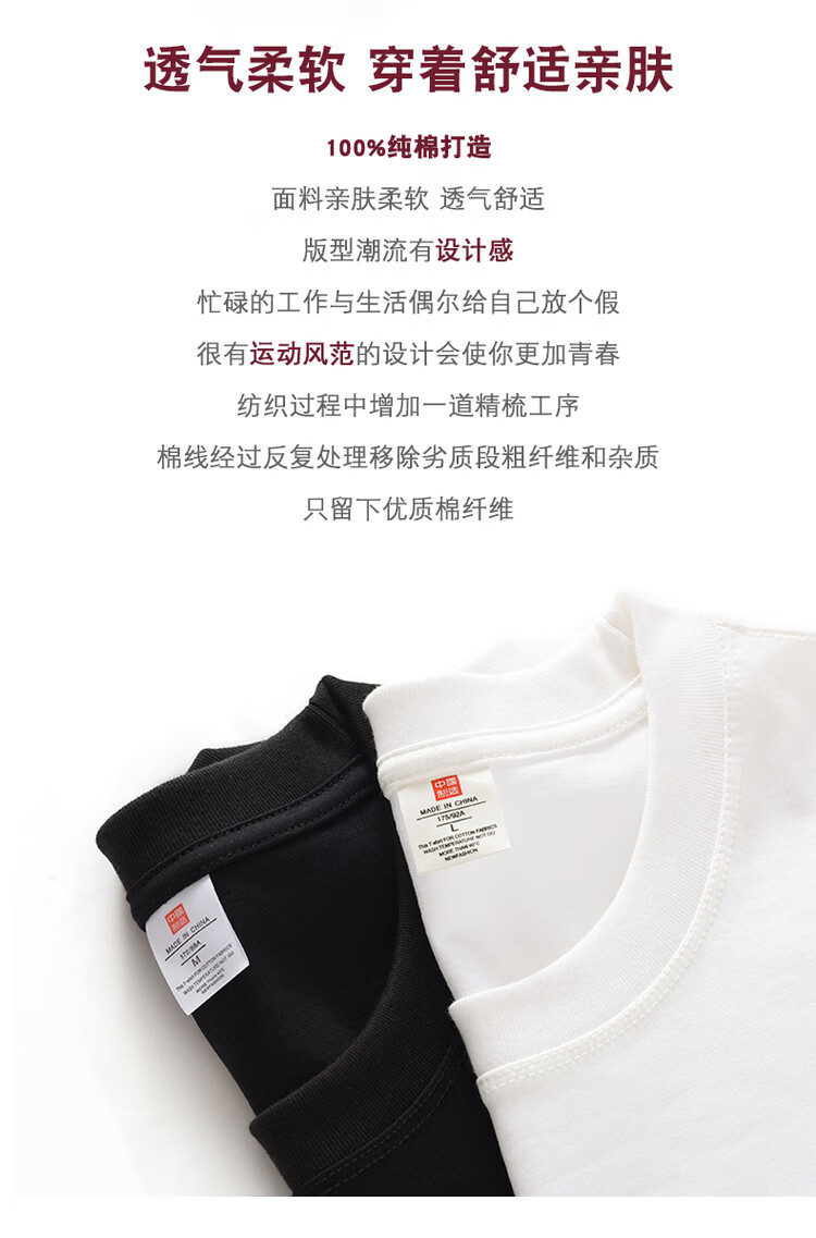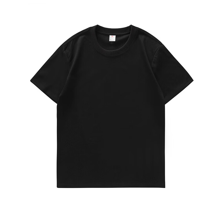 绒宇鑫200克精梳紧密全棉春秋款宽松潮牌圆领男女款t恤纯棉打底衫半袖 黑色 5XL (190-210)斤