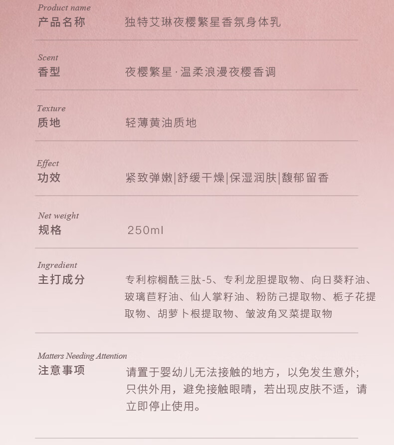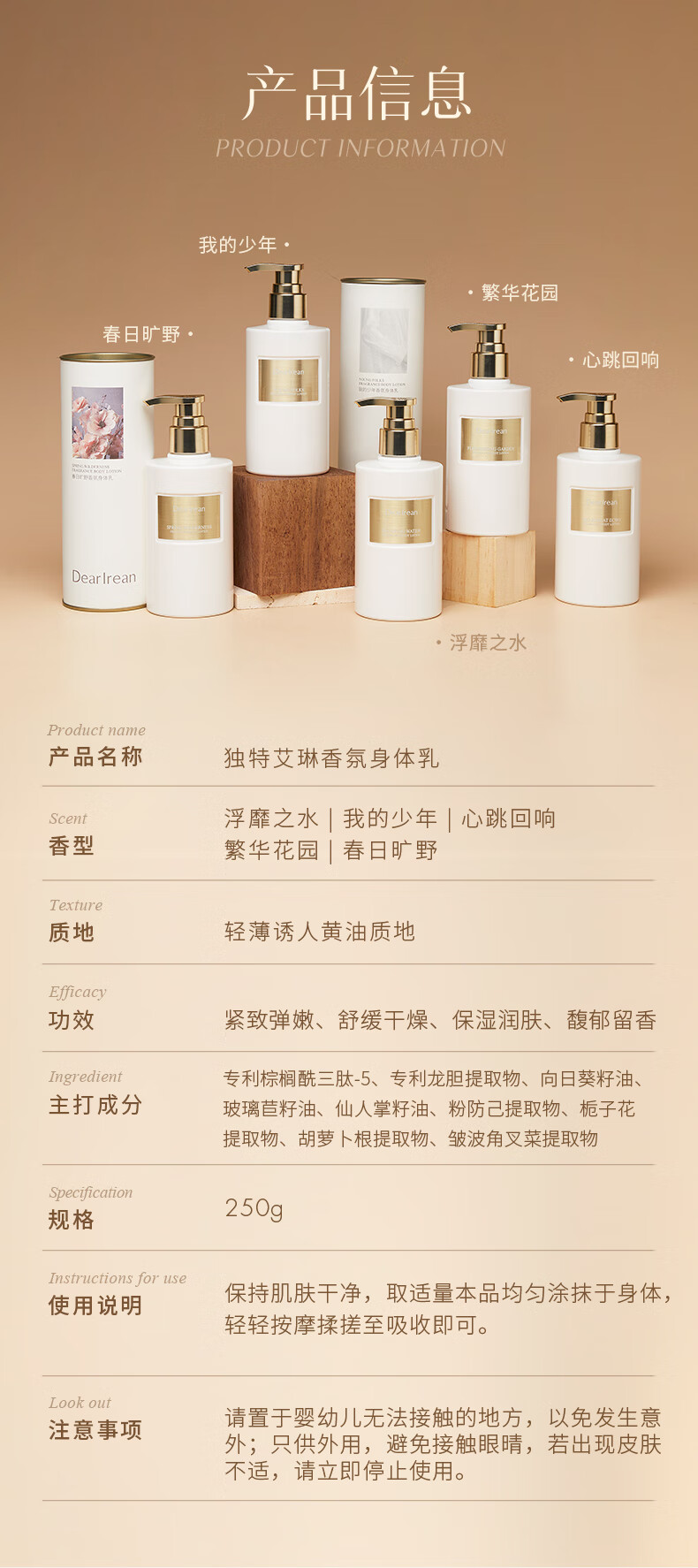 独特艾琳【明星推荐】香氛美白身体乳皮肤干燥止痒保湿补水滋润持久留香 【美白升级款】浮靡之水-明媚花香调 250ml