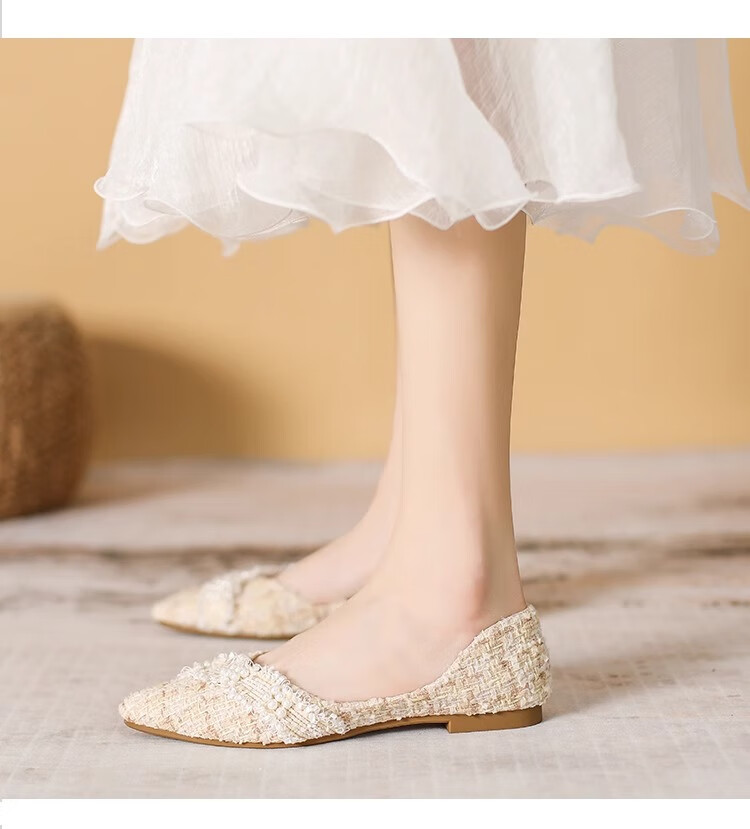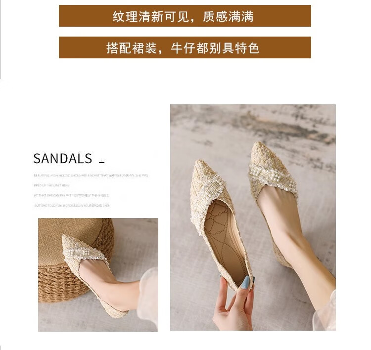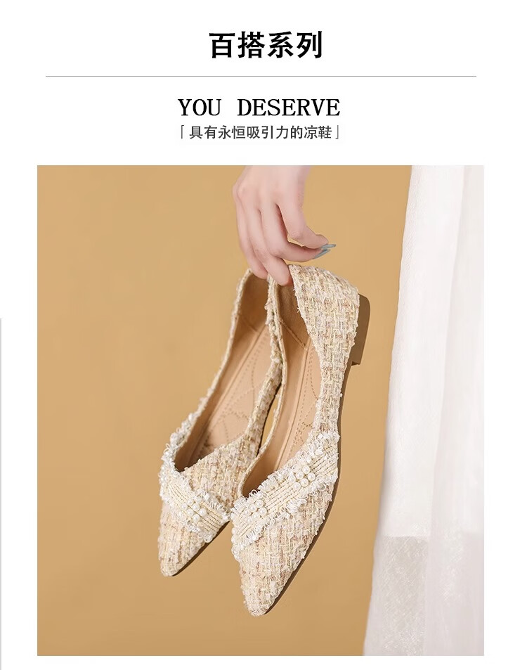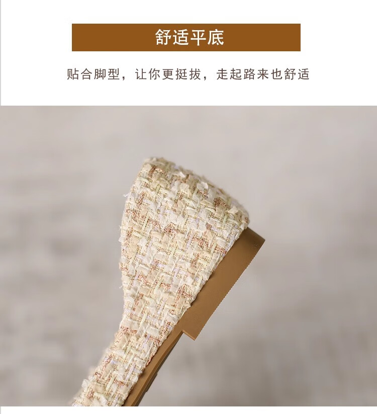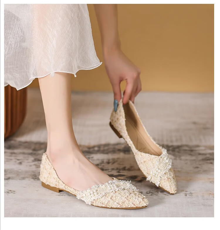 裴客2024新款仙女尖头平底温柔配裙子法式平底鞋女气质小香风软底单鞋 优雅杏色升级真皮垫 35