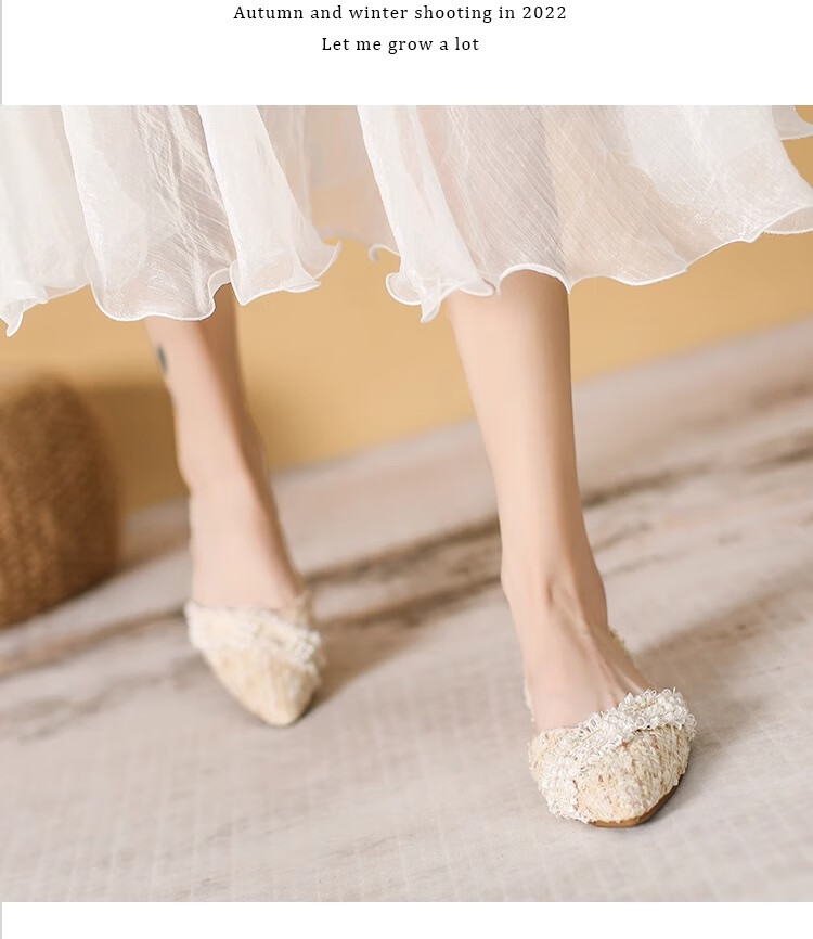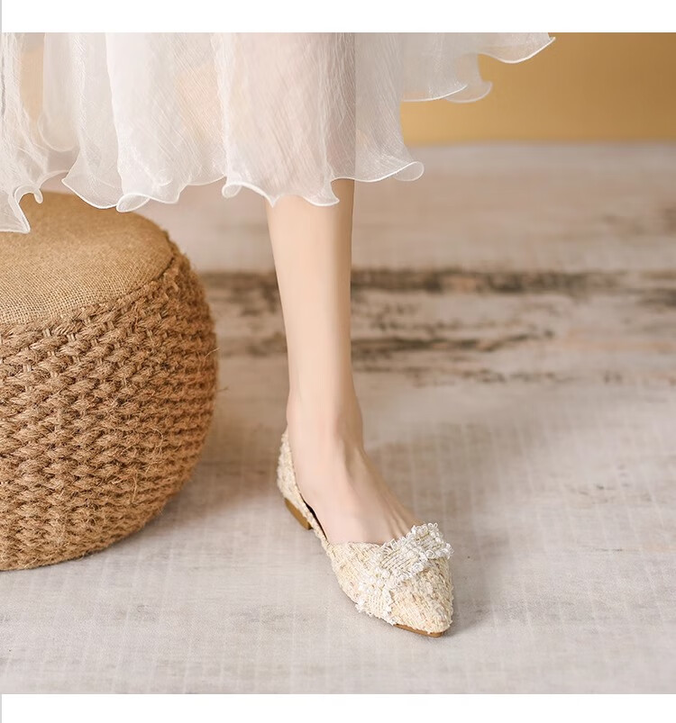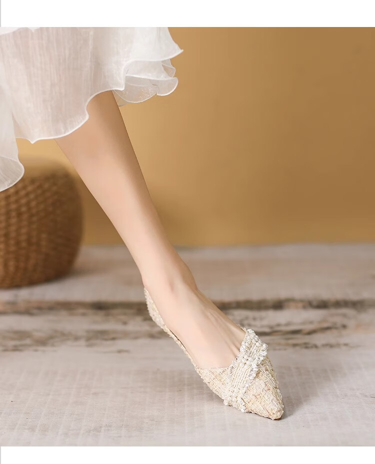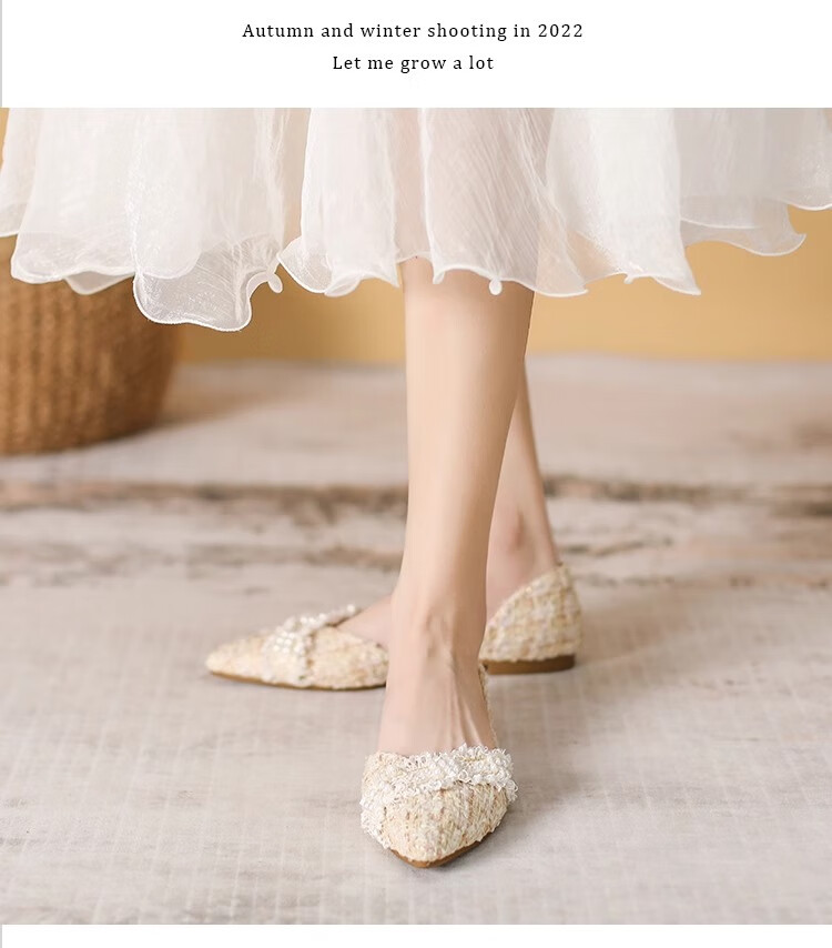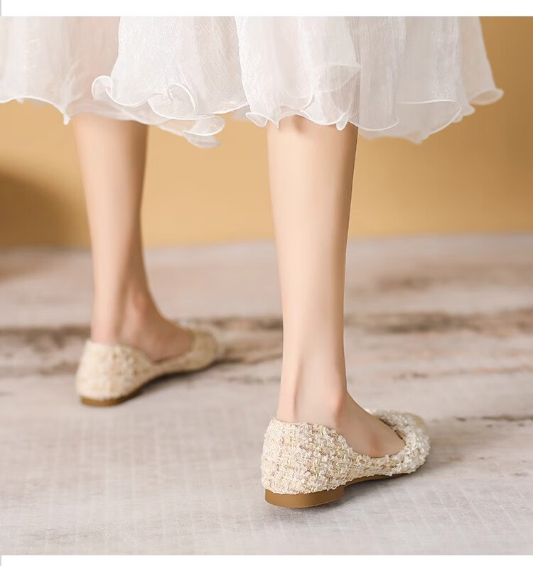 裴客2024新款仙女尖头平底温柔配裙子法式平底鞋女气质小香风软底单鞋 优雅杏色升级真皮垫 35