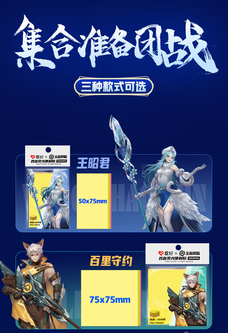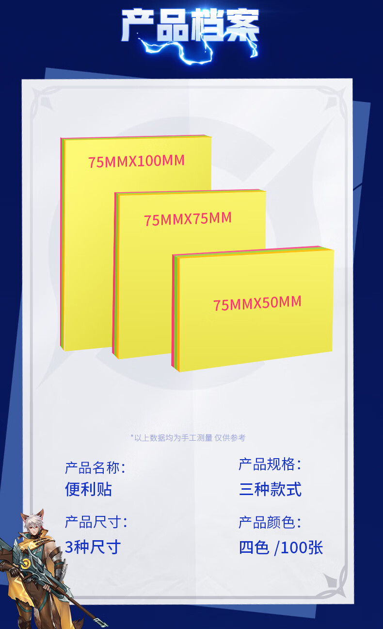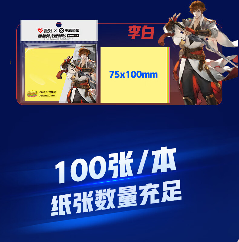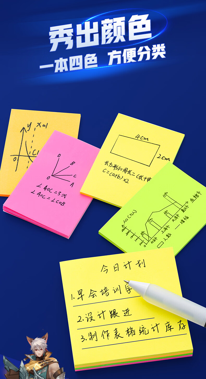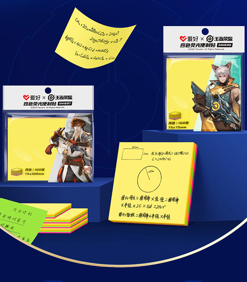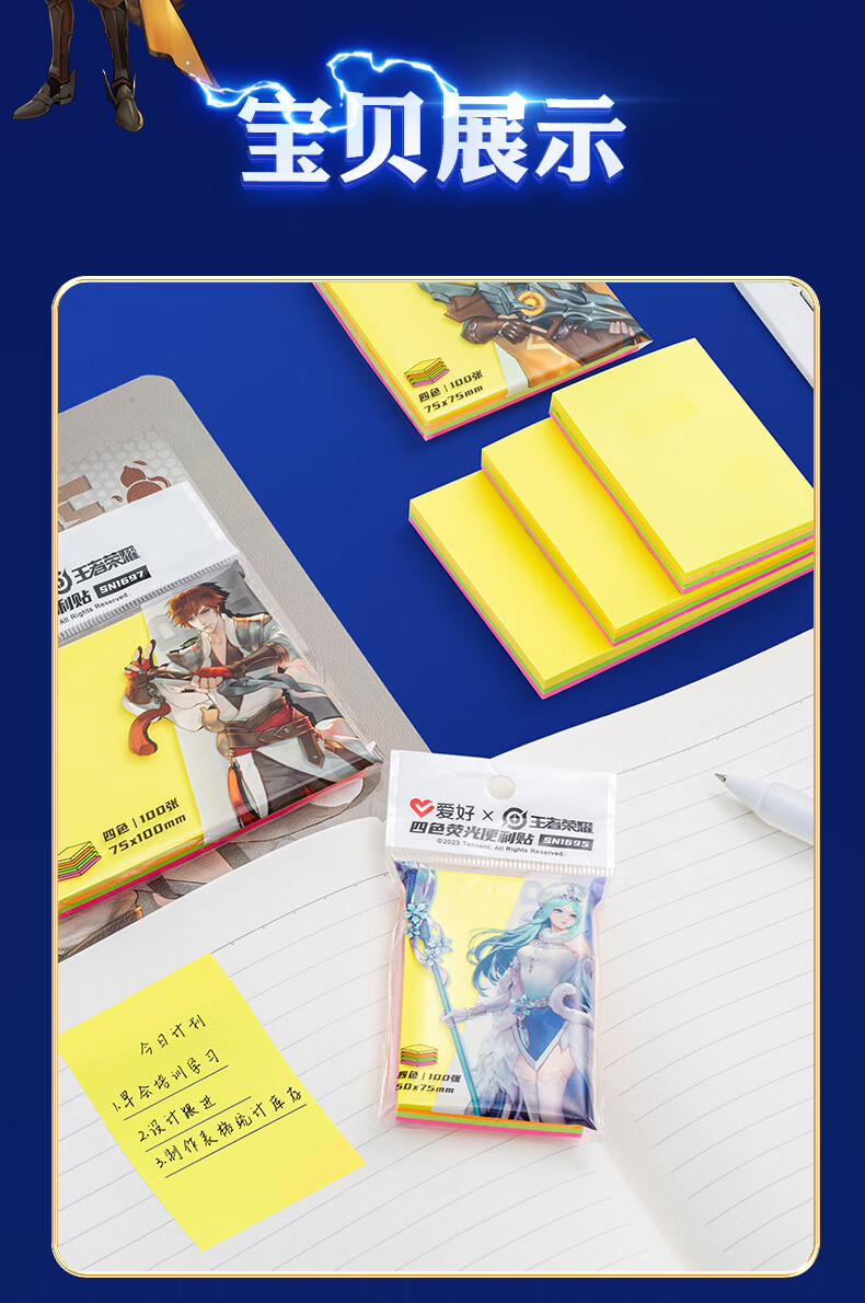 爱好(AIHAO)斗罗大陆联名四色便利贴50*70mm自粘贴纸标记贴彩色标签贴 SN1680 【50*75mm/100张】10本