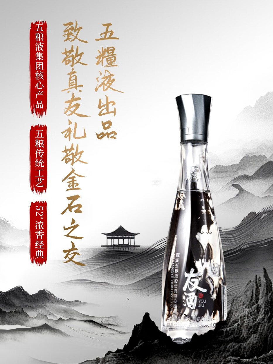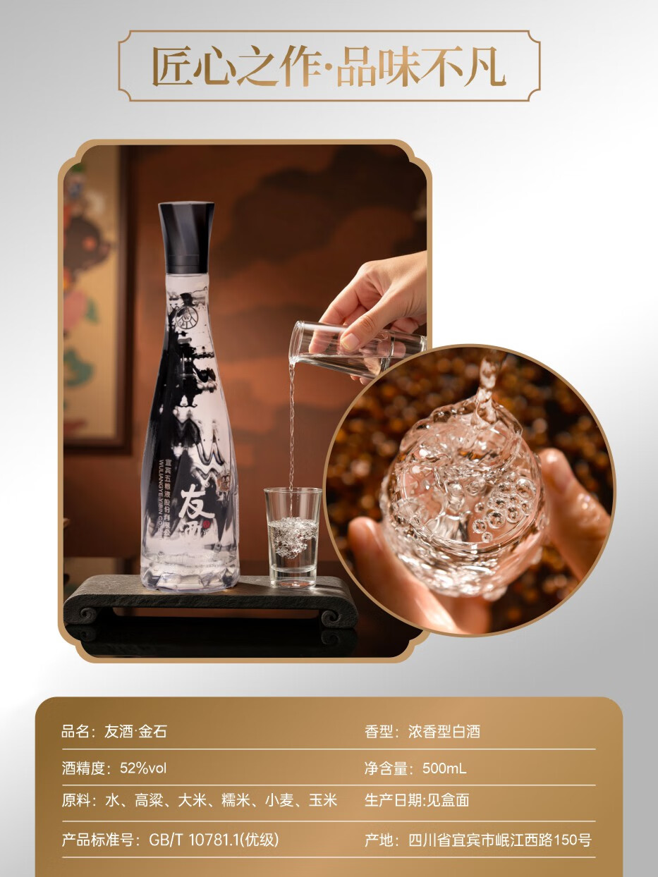 五粮浓香52度友酒金石500ml浓香型白酒 纯粮食酿造 商务宴请收藏摆柜 52度 500mL 1瓶