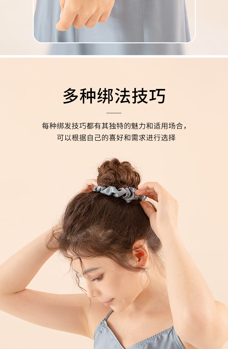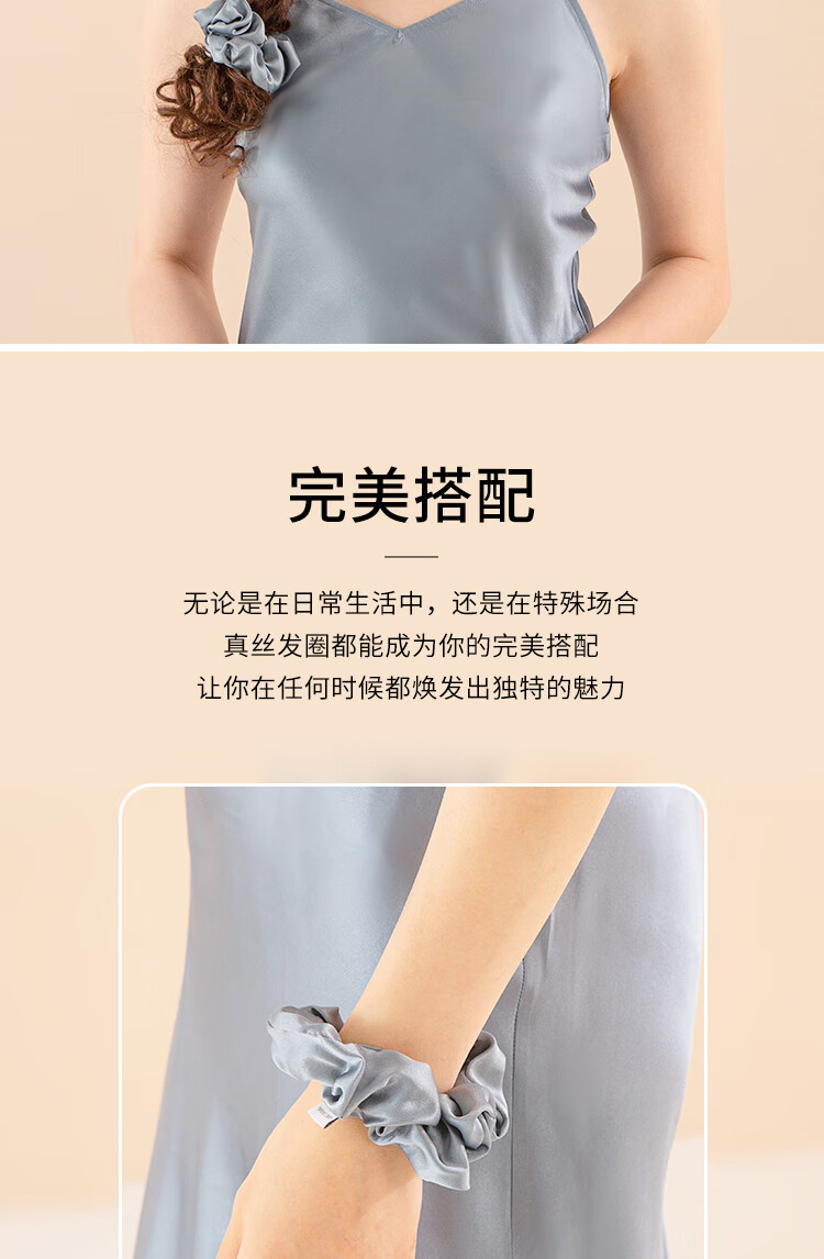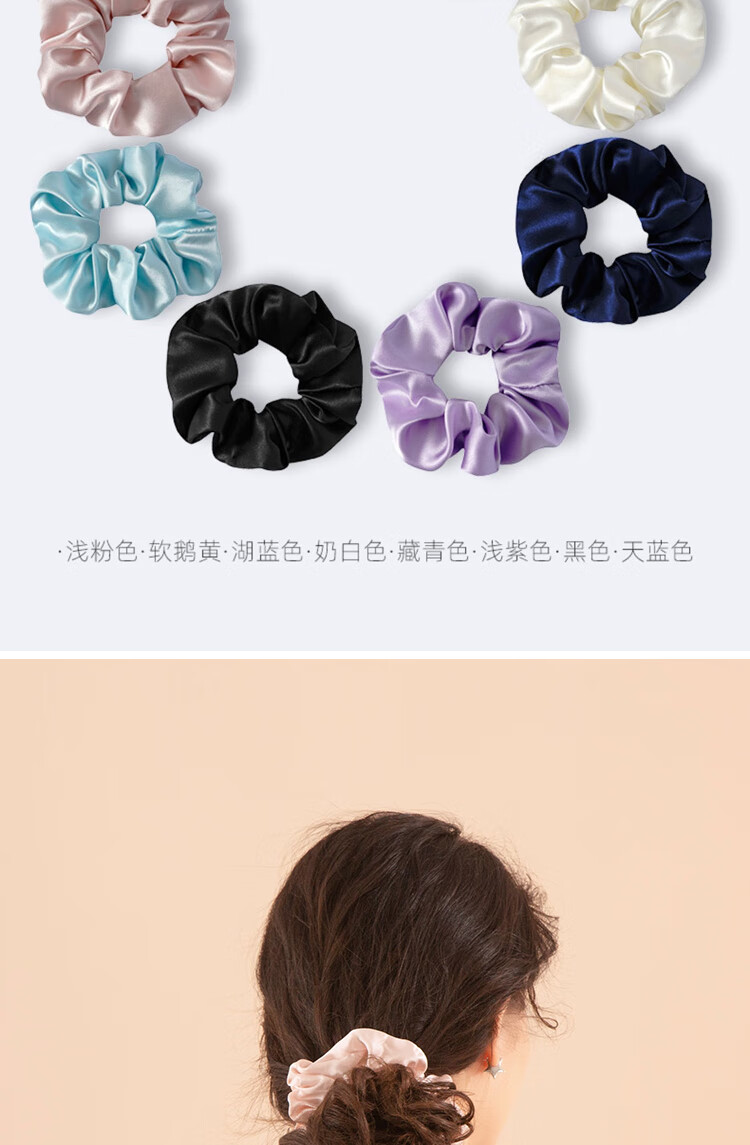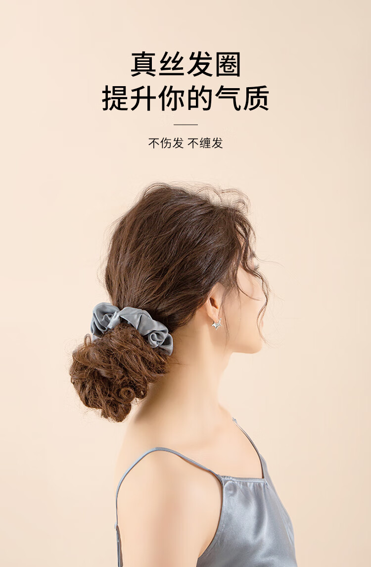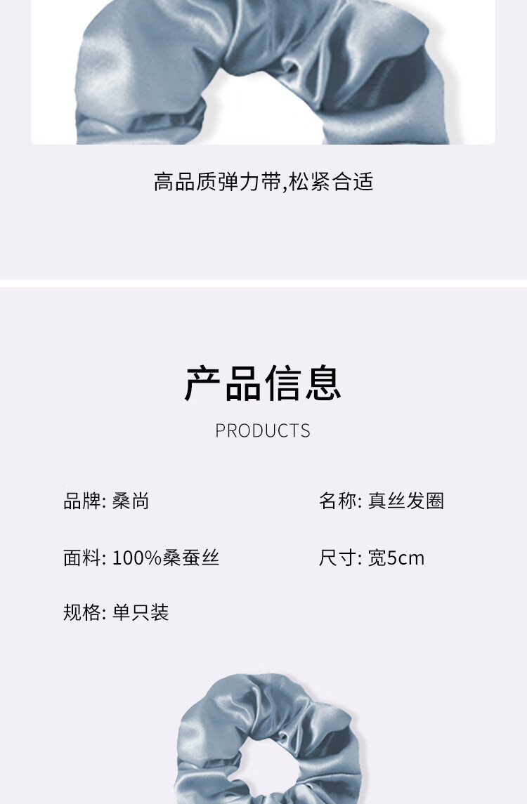 桑尚真丝发圈桑蚕丝大肠头花章小蕙轻奢皮筋头绳丝绸新年礼物送女友 【3.5cm】雾霾蓝