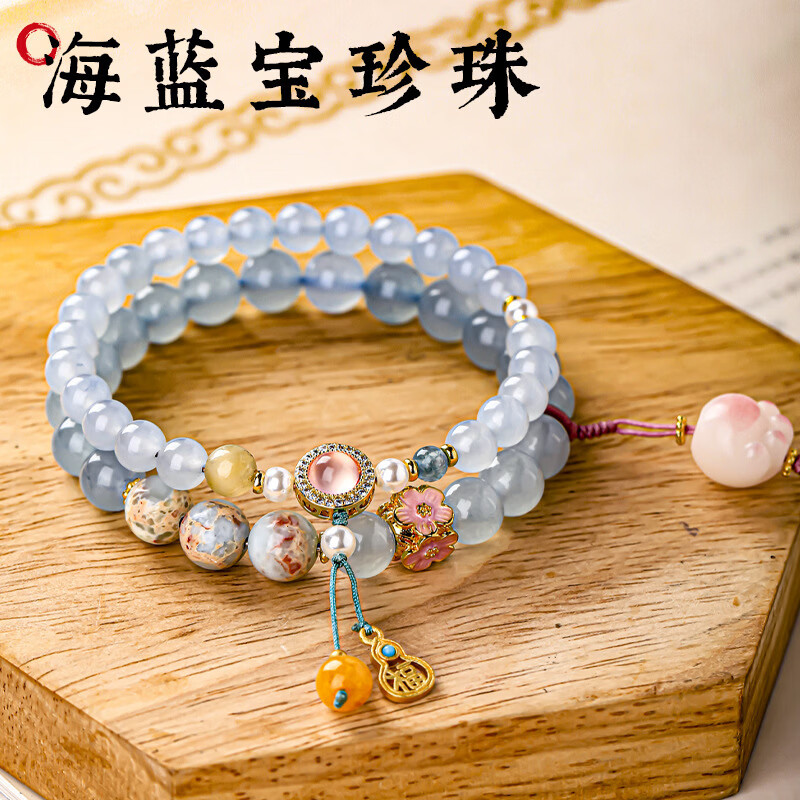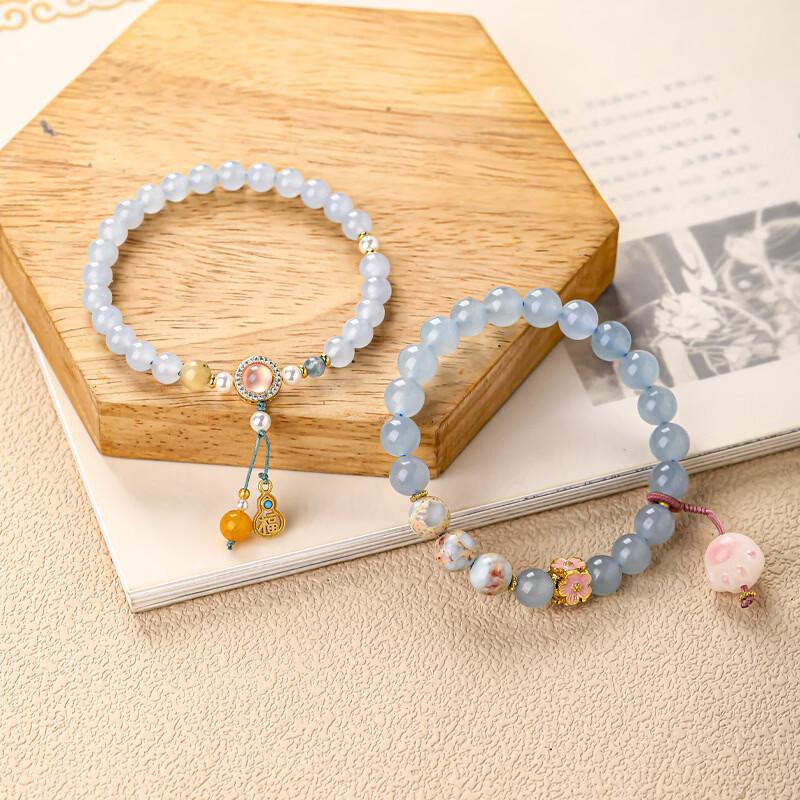 玉髓海蓝宝山茶花贝珠手串高颜值学生闺蜜猫爪手链ins寿山石手饰 玉髓海蓝宝石手串 款式二