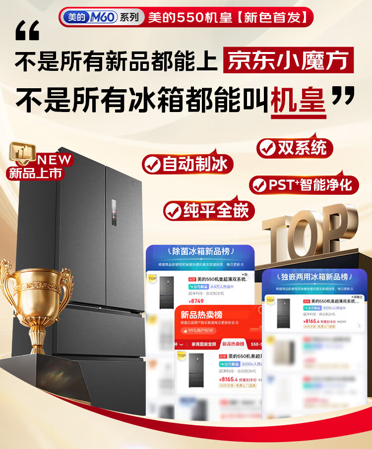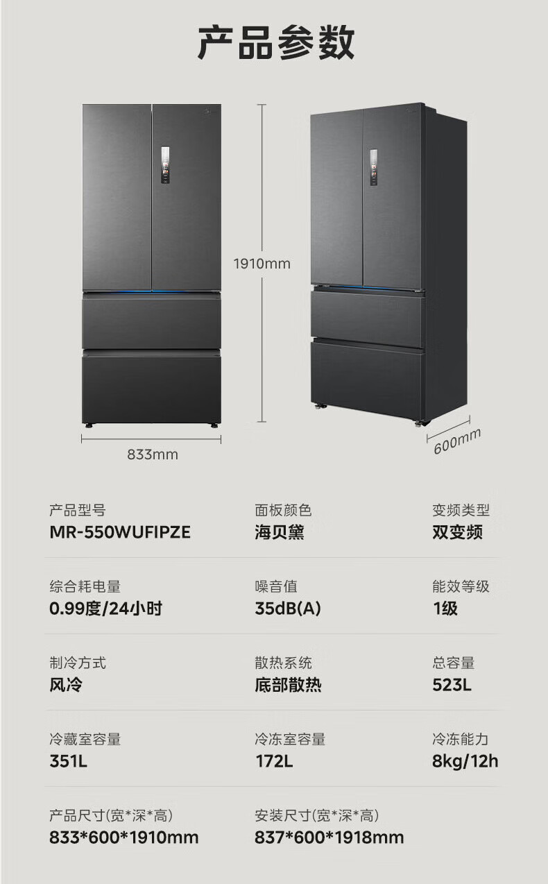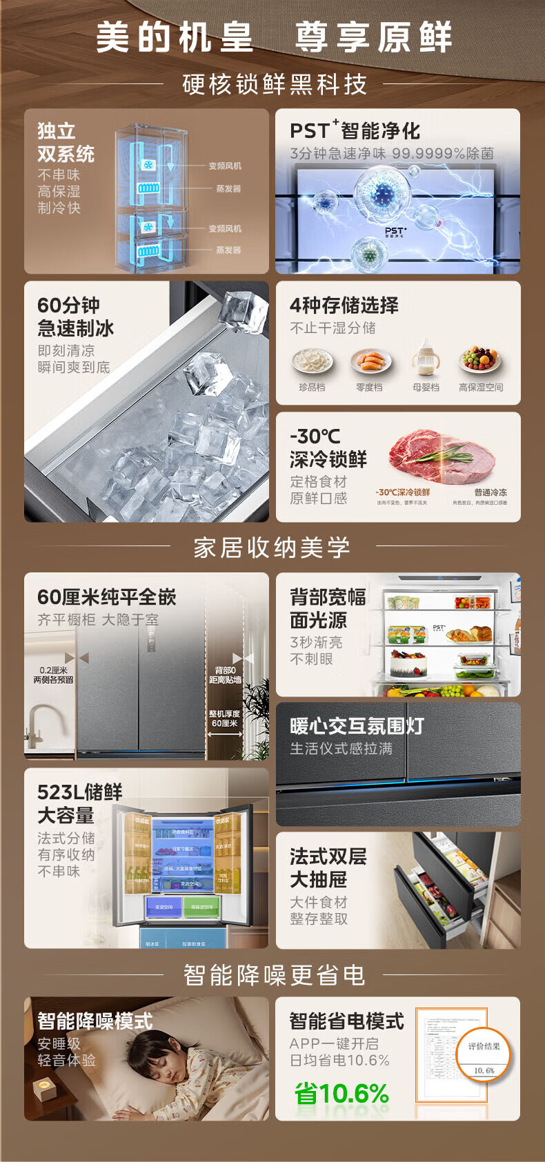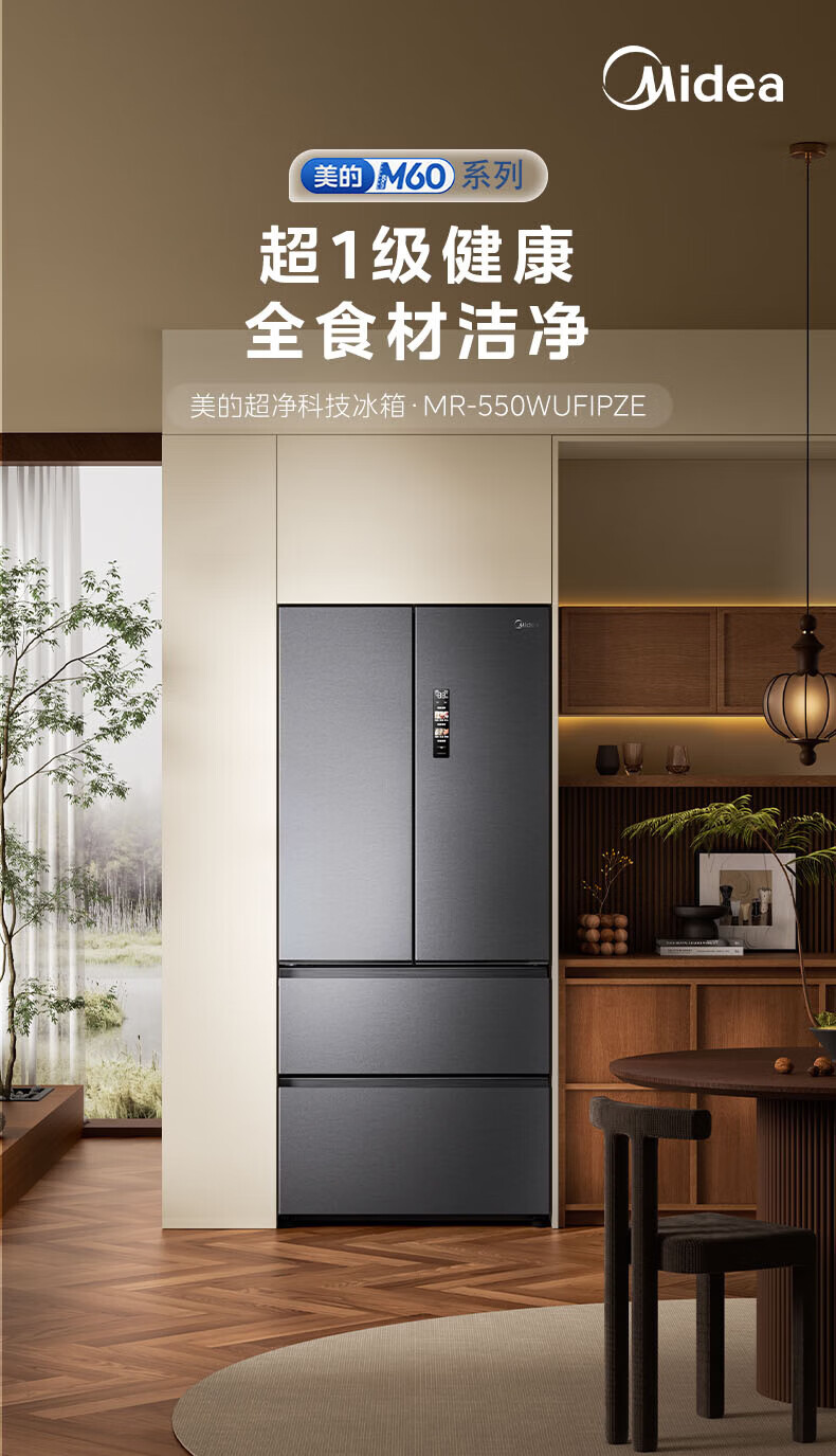 美的(Midea)冰箱M60系列 550机皇法式冰箱 多门四开门纯平全嵌双系统双循环自动制冰 一体机大容量一级能效 双系统|制冰除菌|零嵌机皇-曦云白